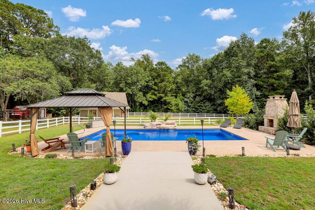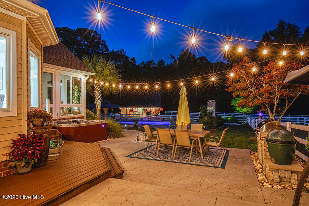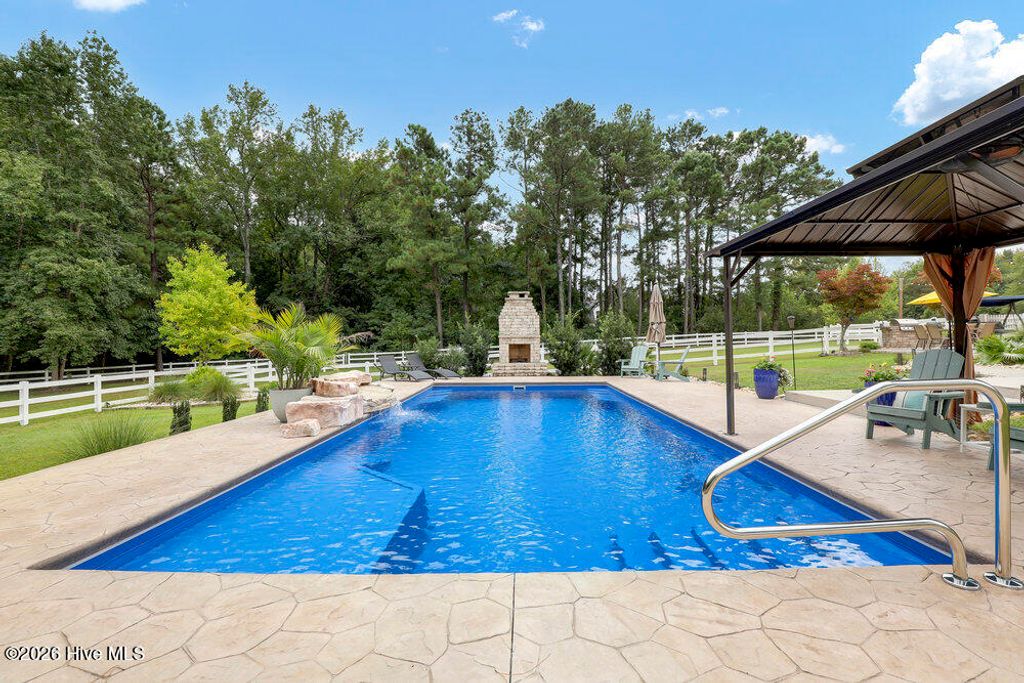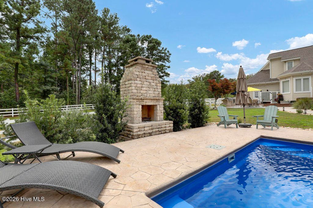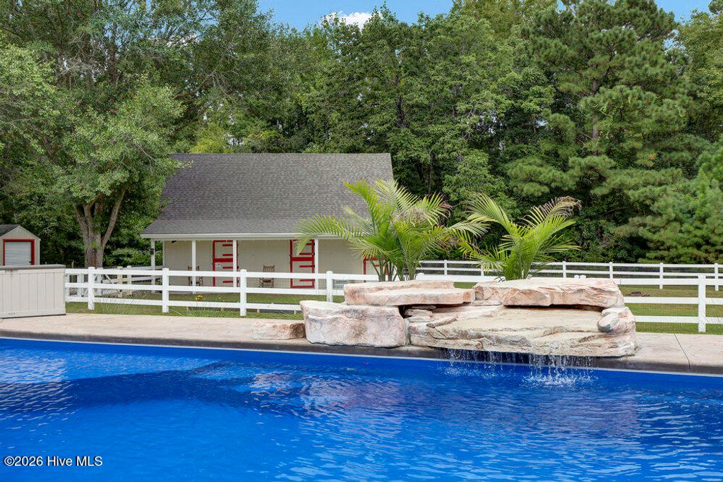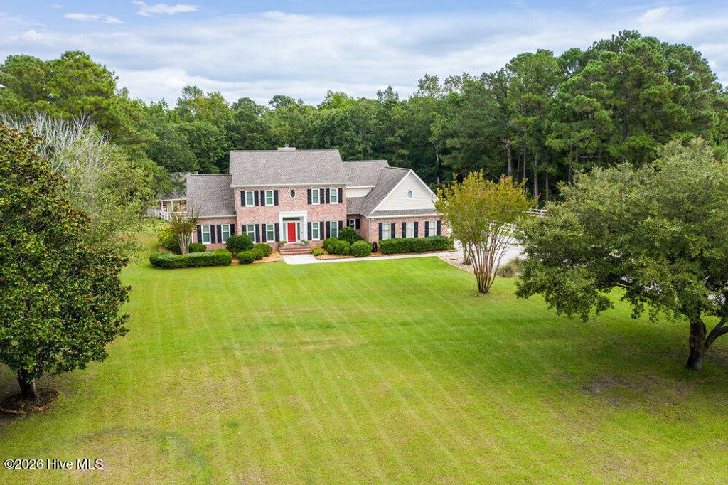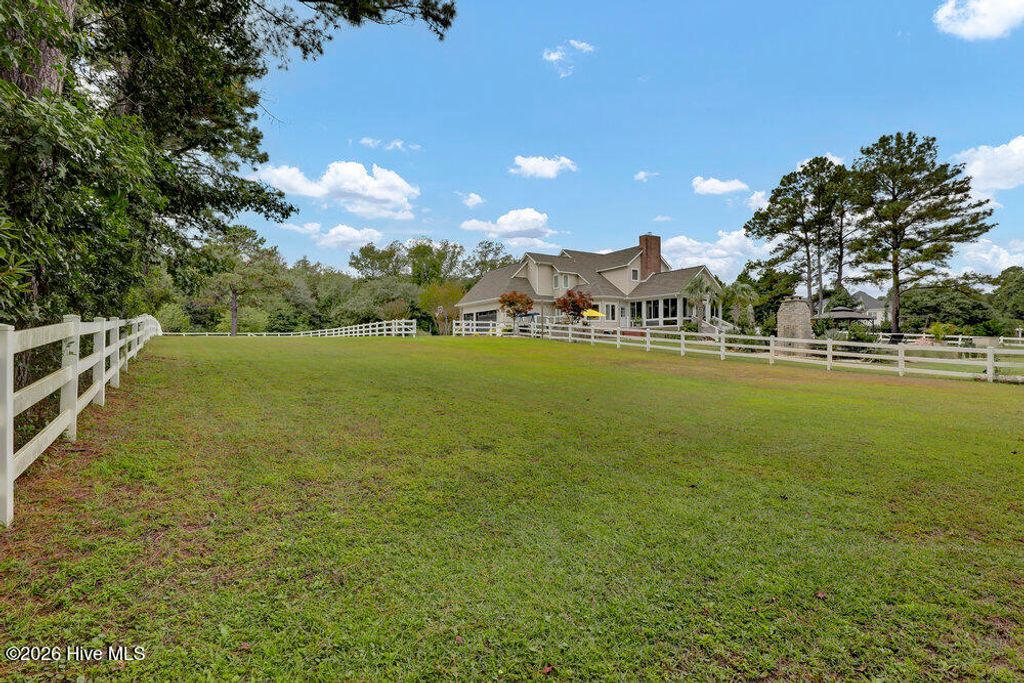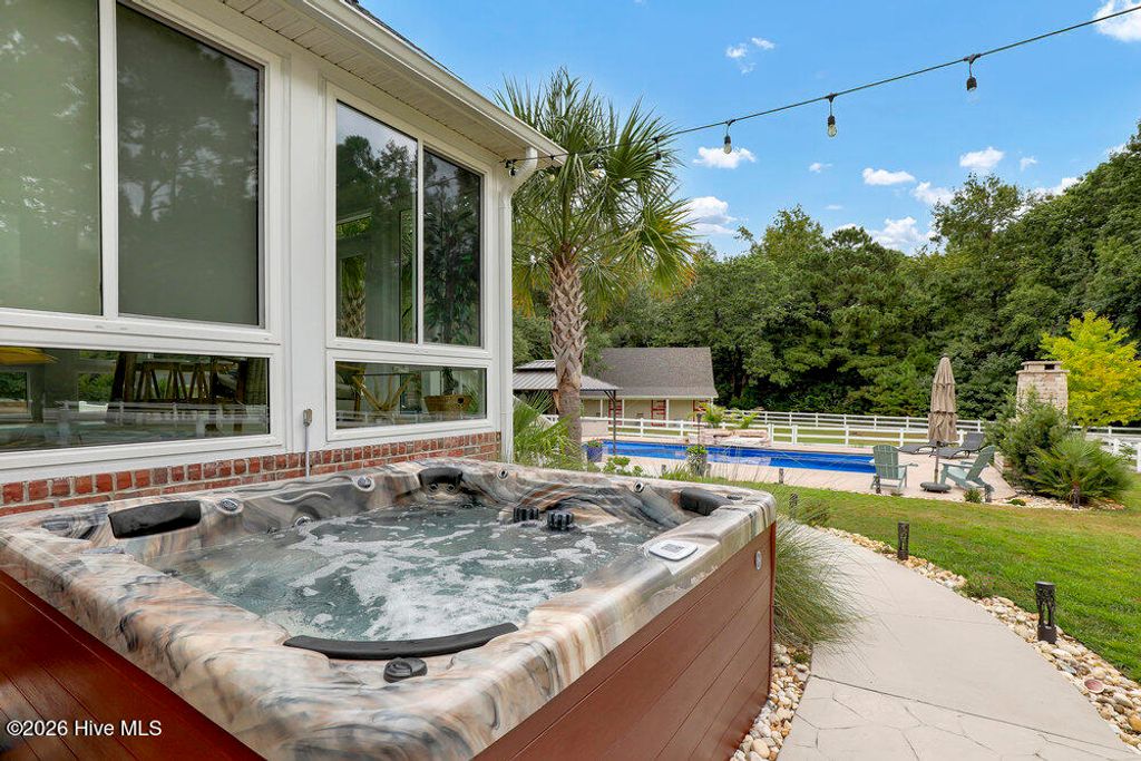 Welcome to elevated living in the coastal equestrian community of Whitebridge. Situated on an estate-sized 2+ acre property, this exceptional home offers privacy, space, and resort-style amenities. The incredible backyard oasis features a heated & cooled pool with waterfall, separate hot tub, wood-burning fireplace, expansive patio, built-in grill, outdoor shower, and landscape lighting--perfect for entertaining year-round. Equestrian-ready with a 3-stall horse barn with power, storage, and flex space upstairs, plus a powered shed. Inside this lovely brick home, you'll find a 1st floor Primary Suite with a large walk-in closet, private Home Office, and both formal and informal Living and Dining spaces. Tall ceilings and a coffered ceiling add architectural elegance. The beautifully renovated Kitchen showcases abundant cabinetry, double ovens, and Bosch appliances. The stunning Sunroom overlooks the backyard retreat. Upstairs offers 3 bedrooms, a spacious Great Room, Bonus Room, and walk-in storage. Additional features include new front windows, 3-car garage with new doors and motors, sealed crawlspace with 2 dehumidifiers, water filtration system, well for irrigation, even a convenient ''Christmas lights'' switch. Enjoy frequent wildlife sightings and community amenities including pool, tennis, pickleball, nature trails and bird sanctuary. Quick & easy access to Wilmington, hospital, restaurants, and all the conveniences you want. Located in the popular Topsail School District with low Pender County taxes.