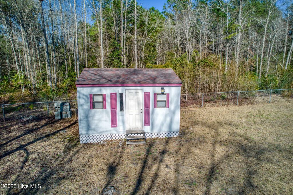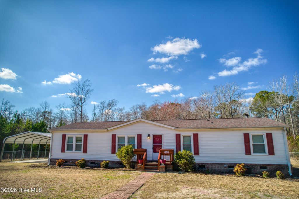 Welcome to 876 McClammy Rd. - a well maintained home nestled on over 2 acres private acres in Hampstead. Surrounded by mature trees and natural beauty, this property offers the peaceful setting so many buyers are looking for, while still being just minutes from the beaches of Topsail Island. This spacious 3-bedroom, 2-bath manufactured home sits on a permanent foundation and shows beautifully inside and out. Enjoy quiet mornings or relaxing evenings on the large back deck with covered porch overlooking the serene backyard. The fenced-in yard area provides added flexibility for pets, play, or gardening. The property also features a 22x25 detached carport with a concrete parking pad, a 13x16 outbuilding, and an 11x24 workshop complete with workbenches and shelving - ideal for hobbies, storage, or projects. Opportunities like this are rare - acreage with no HOA restrictions this close to the beach doesn't come along often. If you've been searching for privacy, space, and convenience to the coast, this property is a must-see. Owner/Seller is a licensed NC real estate broker, related to the listing agent, and owner of the listing firm. Pender County Tax Re-valuations taking place in 2026.