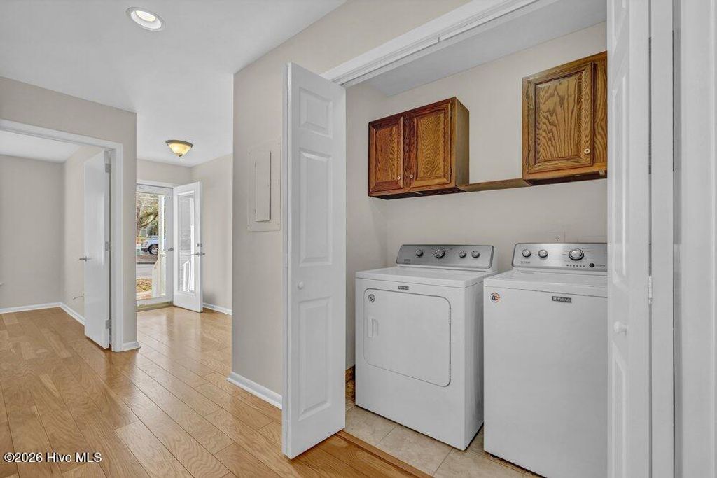 Rare move-in ready end-unit townhome just minutes from Wrightsville Beach in the desirable Lions Gate community offering easy coastal living. This inviting home blends coastal lifestyle with everyday convenience and is located near area shopping, dining, and outdoor recreation--just in time to enjoy the upcoming beach season. Fresh interior paint, hardwood floors, and an updated kitchen make this property truly turnkey. The light-filled floor plan features two bedrooms and two full baths, including a spacious and private second-level primary suite with a large walk-in closet. The main level offers a guest bedroom and full bath along with a welcoming living room with vaulted ceilings, dining area, and kitchen that opens to a secluded deck--ideal for relaxing or entertaining. Sliding glass doors and additional side windows enhance the natural light and spacious feel of this desirable end-unit layout. Major updates include a roof and HVAC replaced in 2020 and 2024 new dehumidifier in crawlspace that is encapsulated. All appliances convey including washer and dryer. Lions Gate amenities include a community pool, tennis and pickleball courts, and clubhouse. The HOA currently allows short-term rentals, although many homes are owner occupied or long-term rentals, making this an excellent primary residence, second home, or income-producing investment property. Convenient to Wrightsville Beach, Mayfaire Town Center, and area dining, this home offers the opportunity to enjoy Wrightsville Beach living without the Wrightsville Beach price. Enjoy easy coastal living in one of the area's most convenient and coveted locations, a wonderful opportunity to experience the Wrightsville Beach lifestyle.