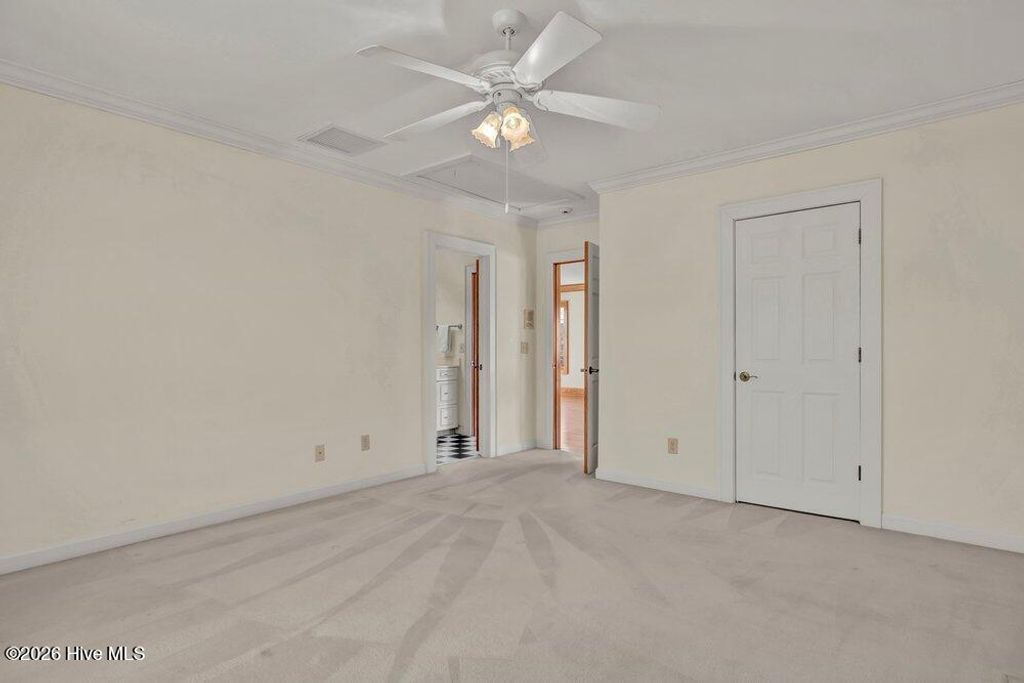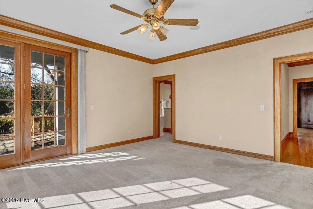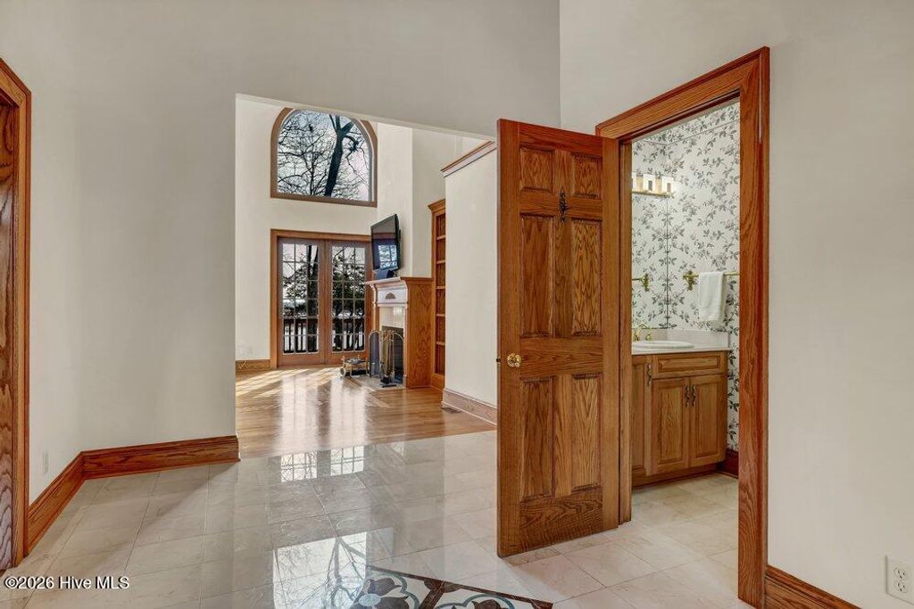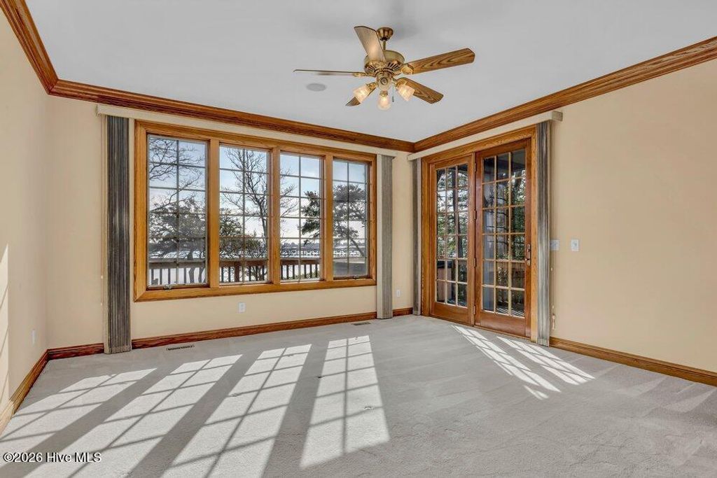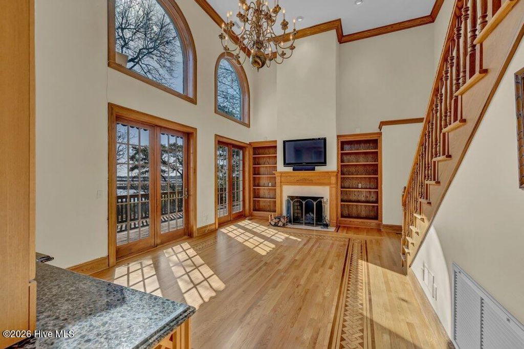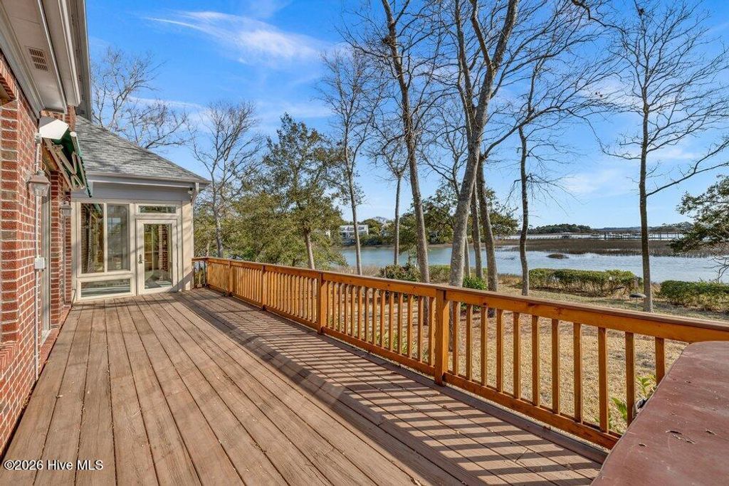 Perched on a peninsula with breathtaking Intracoastal Waterway views, this beautifully maintained waterfront home in coveted Avenel near Figure 8 Island offers an exceptional coastal lifestyle. Lovingly cared for by its original owner, the property includes a 24' boatslip with 10,000-lb lift just steps away for easy days on the water - whether boating, kayaking or paddleboarding. The thoughtfully designed interior features hardwood floors with intricate borders on the first level, elegant crown molding, solid oak doors, and Andersen windows and doors. The two-story Great Room showcases a wood-burning fireplace with gas starter, built-ins, wet bar with mini fridge, and abundant natural light. The Kitchen offers white oak cabinetry, pantry, and abundant cabinet & storage. A Study on the main level includes a gas log fireplace, coffered ceiling, built-in shelving, even a hidden compartment for valuables and a safe. The 1st floor Primary Suite features 2 walk-in closets, jetted tub, and separate shower. Upstairs offers 2 bedrooms, 2 full baths, and a large loft with built-ins that could easily convert to another bedroom or flex space. Enjoy stunning sunrises & sensational water views year-round from the sun porch with hurricane-rated windows, plus a back deck with hot tub. Additional features include 22kW generator, water filtration system, central vacuum, hurricane shutters, Fortified roof (Sept 2024), plus an 872 sf walk-in crawlspace with dehumidifiers. Tucked away for privacy in the Porters Neck area, yet close to restaurants, shopping, medical, even Historic Downtown Wilmington is only minutes away via the new bypass.