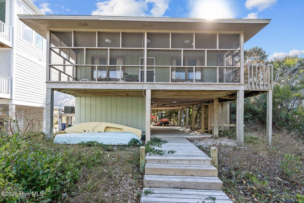 Rare opportunity to own an extraordinary 0.67-acre soundfront property on Topsail Island offering endless potential and breathtaking views of the Intracoastal Waterway. Perched on a natural knoll overlooking the ICW, this unique homesite captures sweeping water views and spectacular coastal sunsets, creating an incredible setting for a future dream home. The existing 3-bedroom, 2-bath home was built in 1984 and offers the option to renovate or use the property as a prime rebuild opportunity on one of the largest lots in the area. A private dock extends to deep water on the Intracoastal Waterway, with ample depth for boating and the potential to easily add a boat lift, making it ideal for boating and fishing enthusiasts. Adding to the appeal, the property includes a deeded beach access easement, providing convenient access to the pristine beaches of Topsail Island just moments away. Soil testing and survey work have already been completed, offering valuable information for future improvements or new construction. With its rare oversized lot, elevated position, incredible ICW views, and dual access to both sound and ocean, this property presents a truly exceptional opportunity to renovate, build, or create a remarkable waterfront retreat.