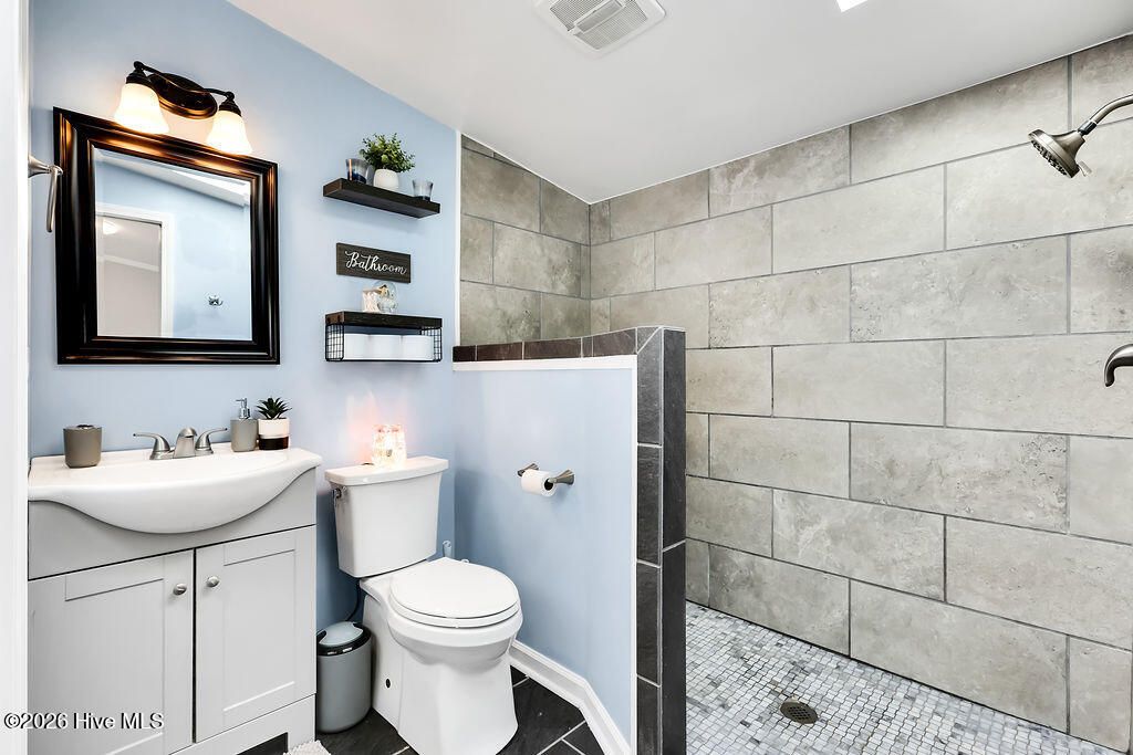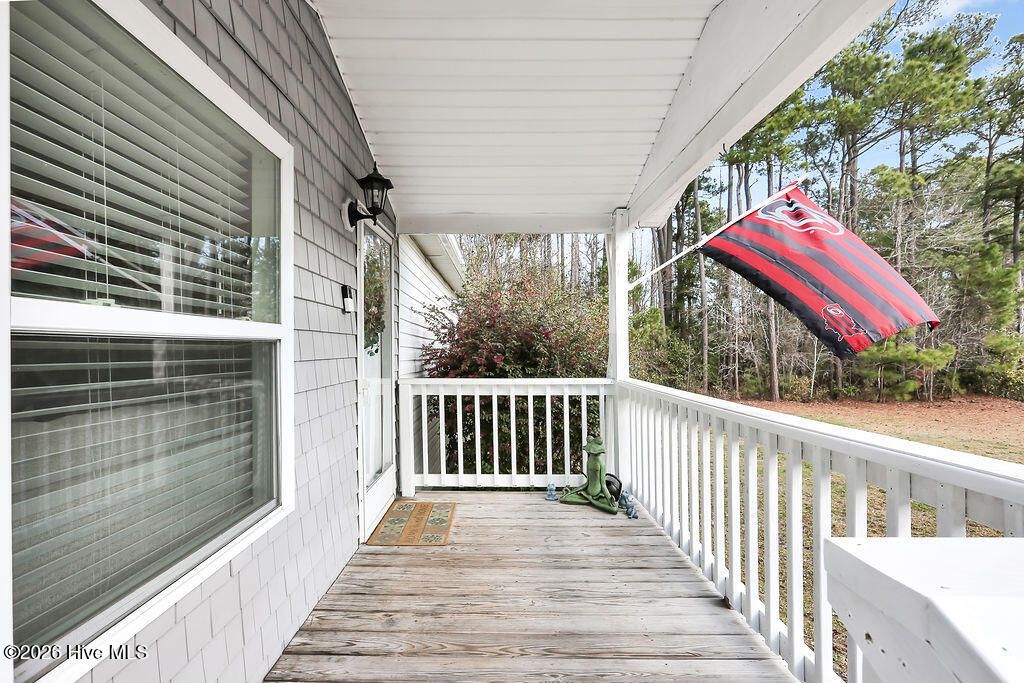 Looking for an affordable place to call home in one of Eastern North Carolina's most desired areas? This is it - 132 Holiday Drive in Hampstead, NC. This beautifully updated home offers over 1,400 square feet of living space with 3 bedrooms & 2 bathrooms situated on 1.95 acres, providing the perfect blend of comfort, space, and privacy. The covered front porch welcomes you into the home, where you are greeted by a large living room that is open to the dining area & den. The updated kitchen features white cabinetry, quartz countertops, and a full stainless steel appliance package, making it both stylish and functional. There is a spacious den off the kitchen that has a gas log fireplace & a door that leads to the screened in back porch & fenced yard, which are great spots for entertaining or relaxing after a long day. The primary bedroom has his & her closets and a large ensuite bathroom with a soaking tub and separate walk in shower. Across the home there are 2 guest bedrooms and a shared hall bathroom with built in storage & a large walk in tile shower. Step outside to enjoy the 12x12 screened-in porch, which leads to a patio and lush fenced in backyard surrounded by trees--perfect for relaxing, entertaining, or unwinding after a day at the beach. The fire pit area creates an ideal setting for evenings with family and friends. The updated storage shed (10x12) w/over head shelving and ample room for tools, toys and beach gear provide space for all your outside necessities! Additional updates include carpet replaced in 2025, crawlspace encapsulation & dehumidifier in Nov 2025, fresh paint throughout the home 2026, HVAC was replaced in 2019 but all the duct work & air vent boots were redone in 2025. Ideally located less than 30 minutes from Topsail Island and Wrightsville Beaches, Wilmington & the airport are a short drive. Plus local shopping, dining, and schools are all just a short drive away. With nearly 2 acres there is plenty of space to spread out. This property offers the perfect opportunity to enjoy coastal living with room to breathe.