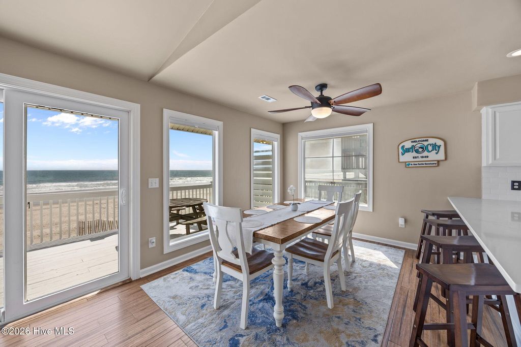 Prime Oceanfront Short-Term Rental Gem - SOL SEAker - Direct Beach Access & Breathtaking Views! Discover endless coastal bliss at this exceptional oceanfront retreat in the heart of Surf City, NC! Nestled on an extra-wide lot with 70+ feet of unobstructed Atlantic frontage, this one-of-a-kind reverse-floor-plan ranch-style home delivers stunning sunrise views, dolphin sightings, and direct private beach access just steps from your door. Located only 1.4 miles south of the iconic Surf City high-rise bridge, you're minutes from the pier, shops, restaurants, public park, and attractions like the Karen Beasley Sea Turtle Hospital. Boasting approximately 2,217 sq ft of living space, 4 spacious bedrooms, and 4 bathrooms, this home comfortably sleeps up to 14 guests with generous bedding (multiple queen beds plus twins/bunks). The bright, open-concept main level features vaulted ceilings, oversized windows flooding the space with natural light, and panoramic ocean views from the living area with electric fireplace, recliners, and smart TVs--perfect for unwinding after beach days. The fully updated farmhouse-style kitchen shines with new quartz countertops, fresh subway tile backsplash, stainless appliances, ample prep space, and bar seating for casual meals. Step outside to the expansive oceanfront deck--now enhanced with a brand-new hot tub for ultimate relaxation, freshly enameled deck floors offering a durable, slip-resistant finish ideal for sandy feet, and brand new dual 9' privacy screens on the back deck for secluded lounging. Covered areas, ample deck furniture, and an outdoor picnic table make al fresco dining and sunset watching effortless, with an outdoor shower for post-beach rinses. For added entertainment, the ground level includes a converted garage transformed into a spacious game room--ideal for friendly competition and rainy-day fun. Guests enjoy a full-size ping pong table, a regulation foosball table in the adjacent sitting area with pub table seating, plus plenty of room to relax and play. This bonus space ties perfectly into the lower level's bonus sitting area, providing easy access to parking and the final full bathroom. Additional highlights include multiple flat-screen/smart TVs, high-speed Wi-Fi, keyless entry, washer/dryer, and parking for 9-10 vehicles--ideal for multi-family or group getaways. Recent upgrades ensure modern comfort while preserving the classic beach ranch charm. This proven performer is turn-key ready for short-term rental success--bookings thrive thanks to the unbeatable location, views, amenities, and thoughtful enhancements. Your guests will create memories that last a lifetime! As if that is not enough, the sellers are offering a 1 year home warranty to any buyer! Check out this list of updates: Kitchen remodel '26, Kitchen appliances '26, New hot tub '26, New deck paint '26, Deck privacy screens '26, New shake siding '25, New hurricane rated roof '25, New A/C downstairs '25, New A/C fencing '25, New A/C upstairs '24, New A/C ductwork '24, New garage doors/motors/tracks '24, Garage floor epoxy '24, Garage paint '24, New patio furniture '24, New LR furniture '24, New washer/ dryer '23, New fireplace '22, Hurricane shutters '22, Complete remodel '21. (Video tour available showcasing the inviting layout, oceanfront deck vibes, coastal elegance, and fun game room setup.)