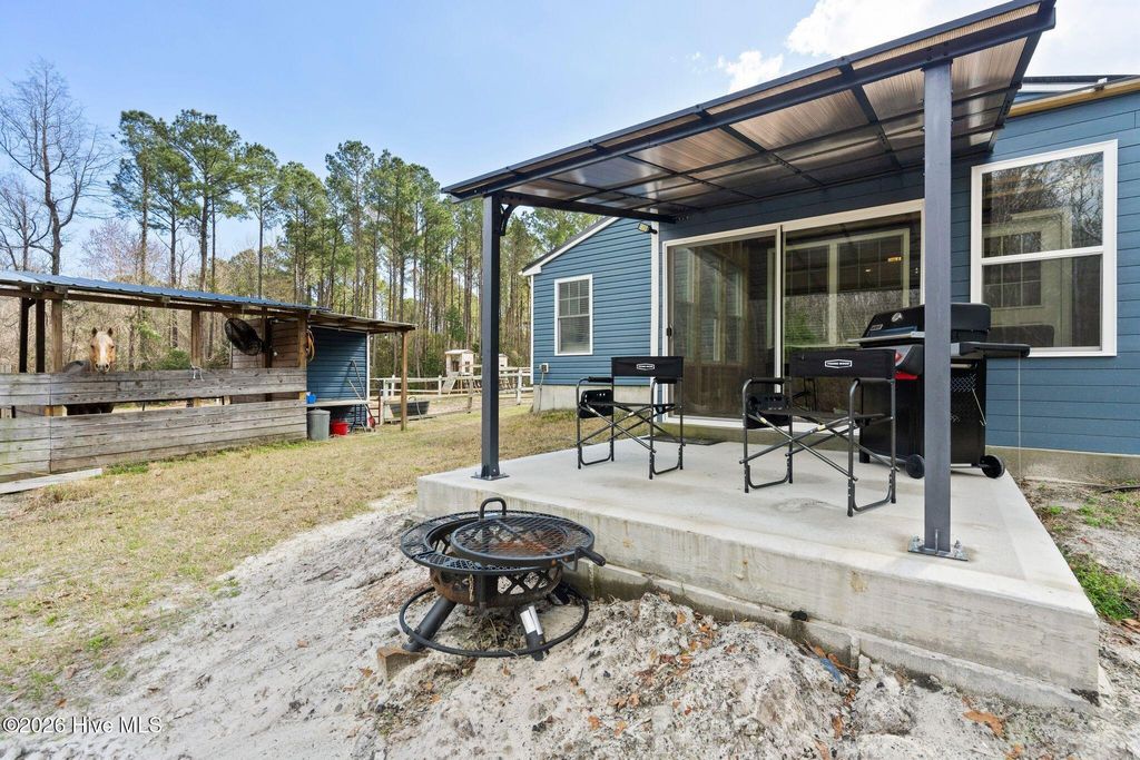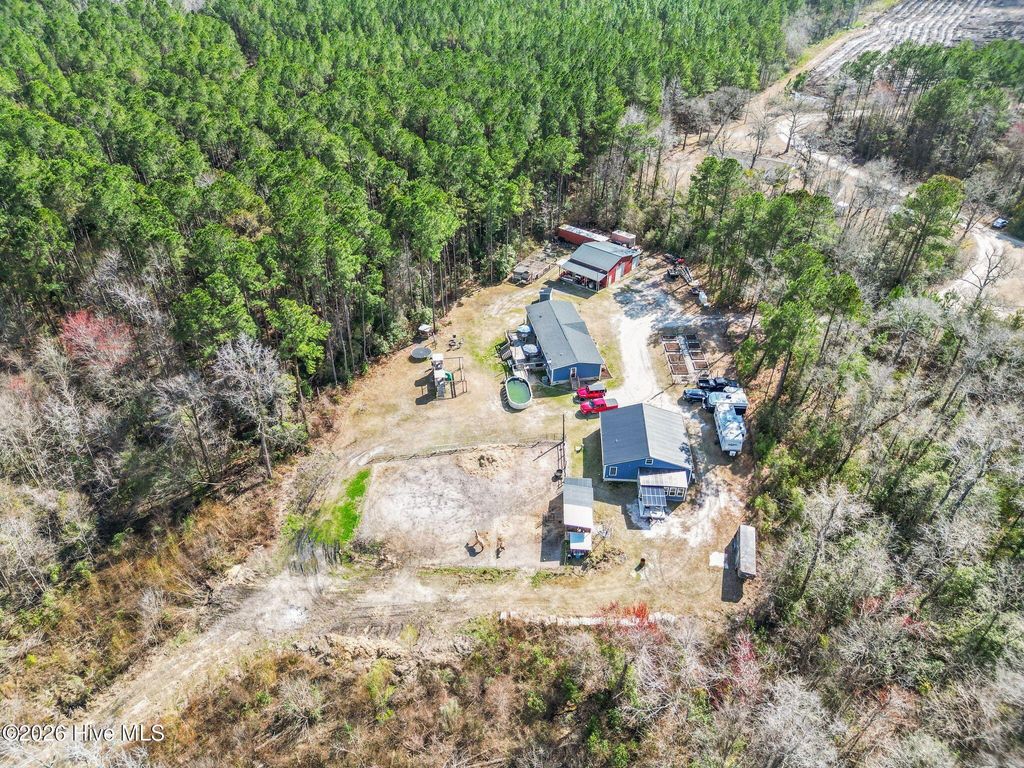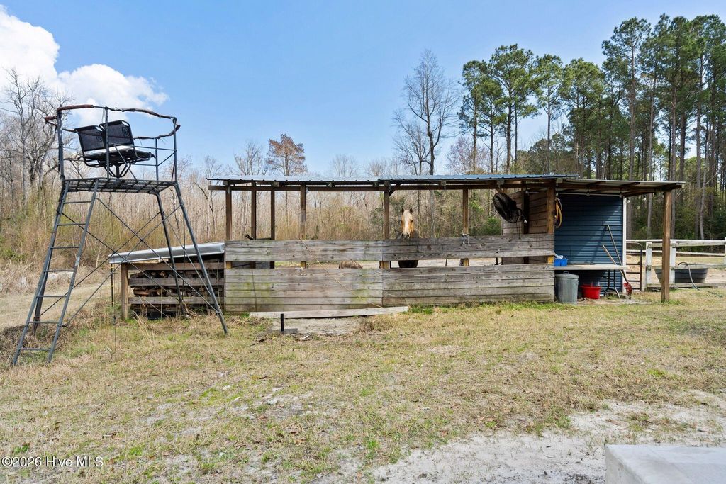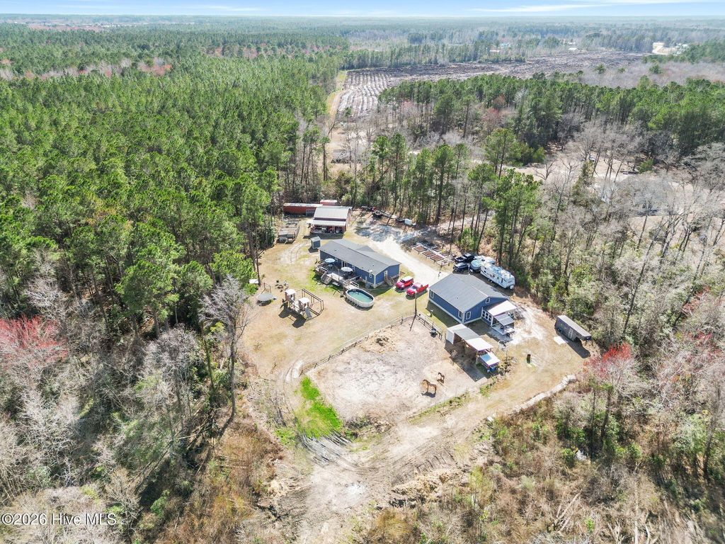 Rare opportunity to own a private and versatile 2.85-acre estate with two homes and no HOA on a dead-end street surrounded by game lands and timber company property, offering exceptional privacy, natural beauty, and the freedom to truly enjoy country living! This property provides flexibility for a variety of lifestyles from multi-generational living, hobby farming, income producing, etc. As you arrive, you are welcomed by a gated entrance with remote access, setting the tone for the privacy and security this property provides. The land itself offers a wonderful blend of open areas and natural surroundings, creating a peaceful setting while still being conveniently located near Wilmington, Hampstead, and the beaches of Topsail Island. One of the most unique features of this property is the presence of TWO separate residences. The primary residence is a spacious 3-bedroom, 2-bath doublewide manufactured home designed with comfortable living in mind. The home features a welcoming layout with ample natural light and a split floorplan. Many upgrades to this home and a bonus family room currently used as a homeschool space, which could easily serve as a second living area, office, hobby room, or playroom depending on your needs. The back deck spanning most of the home is perfect for fun and entertaining. The second residence is a charming stick-built 2-bedroom, 1-bath home that has been thoughtfully designed to be handicap accessible, making it an excellent option for aging family members, guests, or anyone seeking single-level accessibility. This home includes a golf cart garage, a bright and relaxing Florida room, and a covered porch that invites you to sit back and enjoy the quiet surroundings. It is also wired for a generator, providing added peace of mind. For those who enjoy working on projects, vehicles, or equipment, the property includes an impressive barn/workshop with electricity, heating, and cooling- creating a comfortable space for year-round use. A steel beam spans the interior, making it ideal for lifting Jeep tops, engines, or other heavy equipment. The barn also features an attached carport and separate workshop area, providing plenty of space for tools, equipment, or recreational vehicles. The property is well-equipped to support a variety of outdoor activities and homestead-style living. Existing features include two 12 x 12 horse stalls with a tack room and corral, making it suitable for equestrian enthusiasts or small livestock. A chicken coop is already in place for those interested in fresh eggs and sustainable living. Amenities continue with raised garden beds ready for planting, a private shooting range, a play set, and a pool that offers a refreshing place to relax during the warm coastal Carolina summers. The infrastructure supporting the property includes three separate electric meters, along with shared well and septic systems, providing efficiency and flexibility for the multiple structures on site. Properties like this are increasingly difficult to find--offering acreage, privacy, multiple dwellings, and functional accessory buildings while still being conveniently located near shopping, dining, and coastal attractions. 460 Oakey Point Road presents a unique opportunity to create your own private retreat, family compound, or mini homestead in one of Hampstead's most peaceful settings. With room to live, work, play, and grow, this special property invites you to experience the freedom and possibilities that come with owning your own piece of coastal Carolina countryside. Ask your Real Estate Expert for more information in Agent documents.