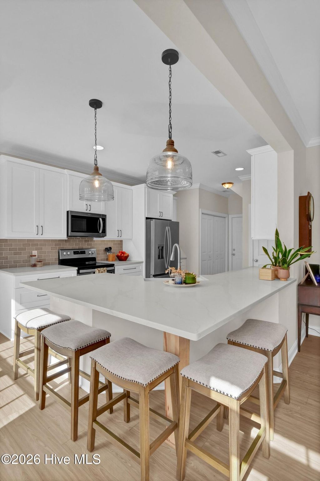 Luxury brick townhome in the sought-after community of Holly Glen featuring a brand-new kitchen renovation and new flooring throughout the downstairs. Updated light fixtures, incredible natural light, a cozy fireplace, and a convenient powder room on the main level make this open floor plan feel especially inviting. With a two-car garage, 3 bedrooms, a dedicated office or flex space, and 2 full baths, this 2,467 square foot home lives large. Thoughtful upgrades include a tankless water heater and a whole-house generator powered by natural gas, providing comfort and peace of mind year-round. Step outside to a private patio overlooking a fenced backyard, maintained by the HOA, with peaceful views of the wooded conservation area. Enjoy the convenience of Holly Tree Elementary just across the street, the YWCA only .14 miles away, and the soon-to-open Club at Midtown, one of Wilmington's most exciting new recreation facilities. This prime midtown location offers quick access to Wrightsville Beach, downtown Wilmington, and UNCW. Located in the Holly Tree, Roland-Grise, and Hoggard school districts. HOA dues cover lawn maintenance and exterior maintenance, making this an easy, low-maintenance option for homeowners, investors, or second-home buyers.