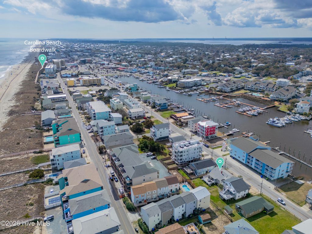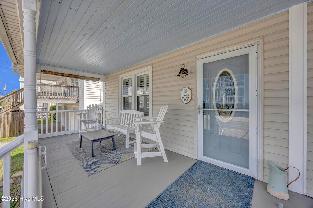 You can stop looking--this is the one! This 3-bedroom, 3 full-bath quintessential beach cottage is a rare find. It showcases the perfect combination of modern upgrades/amenities while retaining its historic beach cottage charm. ''The Croom Cottage'' is a historically recognized property, located in the 500 block of Canal Drive, close to the Carolina Beach Boardwalk and downtown restaurants and amenities, and only one block from 2 public beach accesses! This beach cottage has been lovingly maintained and boasts many impressive upgrades/features including a new (2023) fortified architectural shingle roof; steel beams, piers and pier stabilizers added under the home to support/upgrade the foundation (2024); a new condensate pump and sump pump installed in the crawlspace (2024); and reflective foil radiant barrier and blown fiberglass insulation added in the attic (2022). Stunning historic pine flooring and plantation shutters add to the charming ambiance of this home. The beautifully updated kitchen boasts stainless steel appliances, granite countertops, custom cabinetry (incl. a coffee/wine bar area), a pantry/laundry closet, and a bay-window dining area. The living room provides plenty of space to spread out and flows out to the full-width covered front porch, where you can relax with an evening cocktail and enjoy a beautiful sunset over the canal. Out back is a large deck with abundant entertaining space, including a built-in bar area. Two large guest bedrooms (one with an en-suite bath and walk-in closet) and a full guest bath complete the downstairs. Upstairs is a wonderful surprise: a private Master Suite with a fabulous en-suite bath with custom tile shower and dual-sink vanity--the perfect place to relax and unwind after a day at the beach. Being sold fully furnished, this classic cottage would make a perfect full-time beach home, 2nd home/beach getaway, or investment/rental. Start building your beach memories today.
