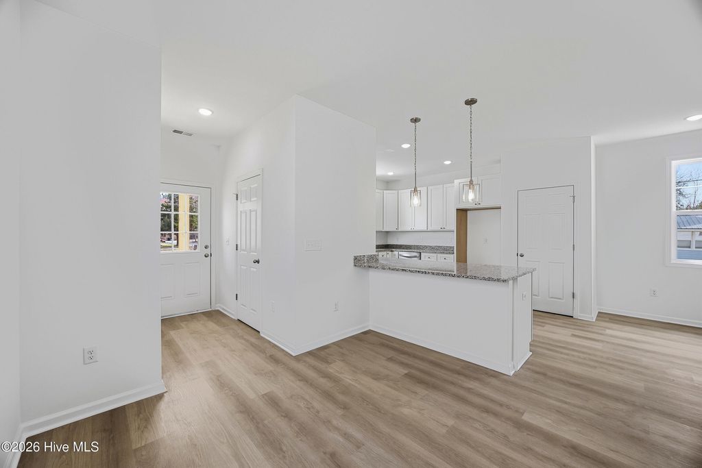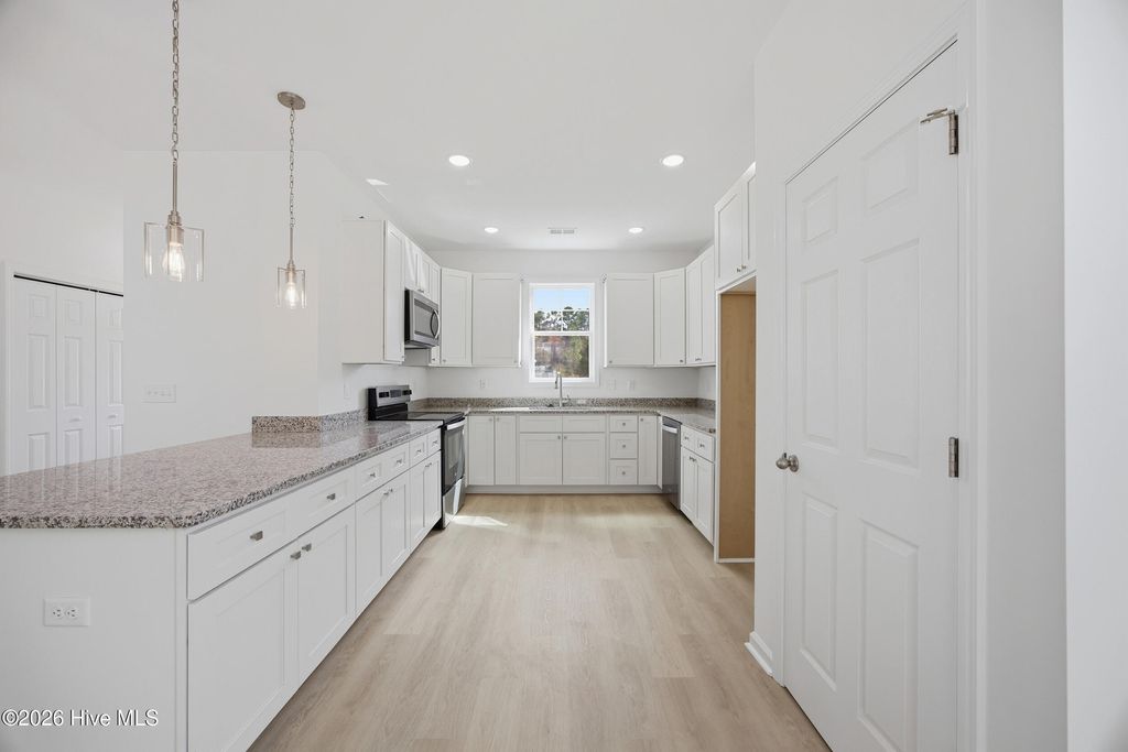 Welcome to low-maintenance, modern living in the growing town of Burgaw! Situated on a desirable corner homesite, this brand new 3-bedroom, 2.5-bath home offers a fantastic opportunity for first-time buyers or investors looking for value in an up-and-coming area with no HOA restrictions or additional HOA costs. Inside, durable luxury vinyl plank flooring flows throughout the home, combining style with easy upkeep. The contemporary kitchen features white cabinetry, granite countertops, generous storage, a pantry, and an additional storage area perfect for bulk items, small appliances, or extra kitchen essentials. The open-concept design creates a bright and inviting space that works well for both daily living and entertaining, while a convenient first-floor powder room adds practicality for guests. Upstairs, all three bedrooms are thoughtfully positioned along with a centrally located laundry room to simplify everyday routines. The spacious primary suite offers a comfortable retreat, while the secondary bedrooms provide flexible space for guests, a home office, or hobbies. Outside, enjoy a generously sized backyard with plenty of space for gatherings, grilling, pets, or simply unwinding at the end of the day. The corner homesite allows for additional outdoor flexibility and curb appeal. Whether you imagine garden beds, a fire pit, play area, or outdoor lounge space, the yard offers a blank canvas ready for your vision. Location is key, and this home delivers. Situated in the heart of Burgaw near Pender Memorial Park and just minutes from the charming Burgaw Town Square--home to local shops, restaurants, and year-round community events--you'll enjoy the perfect blend of small-town charm and growing amenities. Plus, you're just a short drive to Wilmington and Wrightsville Beach for beaches, shopping, and additional dining options. Don't miss your chance to own new construction in one of southeastern North Carolina's rising communities--schedule your showing today! For information about our preferred lender and the incentives you may qualify for, please ask your agent to review the agent remarks for additional details. Select images have been virtually staged to illustrate the potential use and layout of the space.