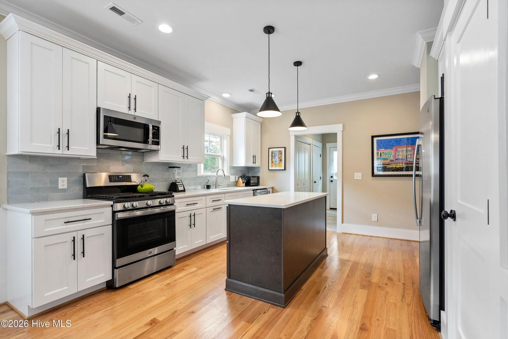Welcome to this charming neighborhood. Southern charm intersects downtown living with a newer built property. The large front porch invites you to enjoy all this neighborhood has to offer with the Cargo district only steps away and historical downtown an easy walk west. This fabulous property offers a rare and valuable bonus, an additional 5,000 sf lot listed separately for sale. Exceptional value and boundless opportunity exist for this rare find. Extra lots are scare in the heart of Wilmington! (lot must be purchased with home.) Please see MLS #100559931 for lot information. Natural light fills this open living space that is perfect for gatherings with friends and family. Featuring 3 bedrooms and 2 bathrooms, 9 foot ceilings, oak flooring and tile floors in bathrooms and mudroom. Kitchen is equipped with GE stainless steel appliances, including gas stove, island, pantry, beautiful quartz countertops and built-in walnut desk and shelving! Mudroom includes washer/dryer along with tankless Rinnai gas water heater for efficiency and comfort. Large closets in each bedroom and walk-in closet in primary suite. Primary bathroom features gorgeous granite countertop, large tile shower with frameless glass door and linen closet, adding both luxury and practicality to everyday living. Come make this your home!