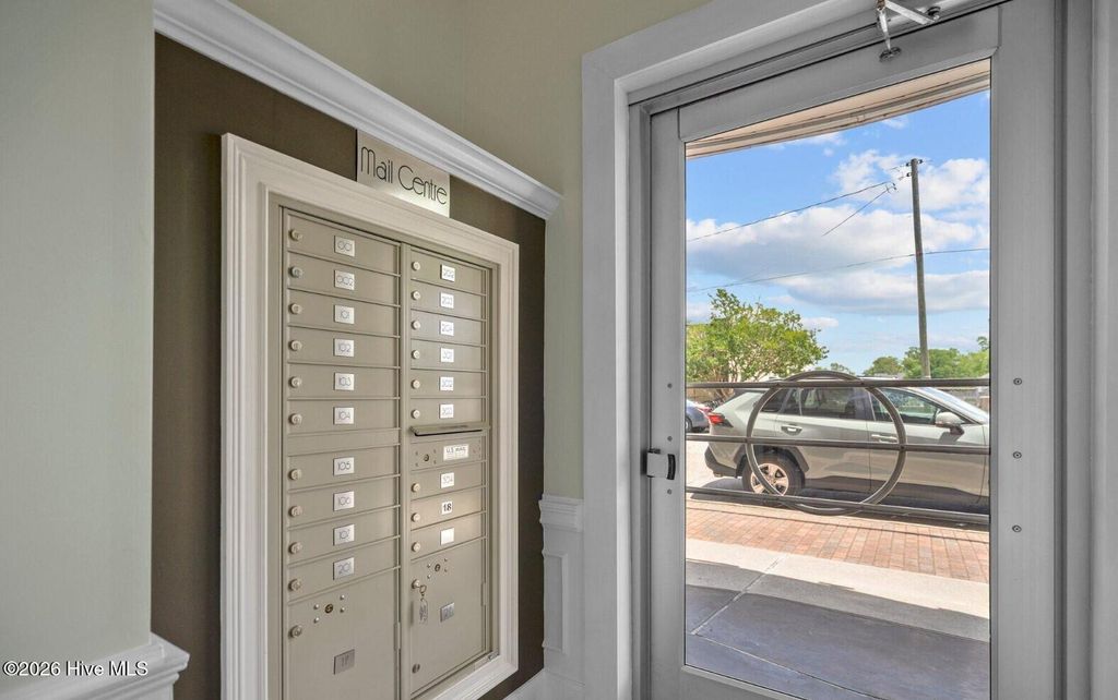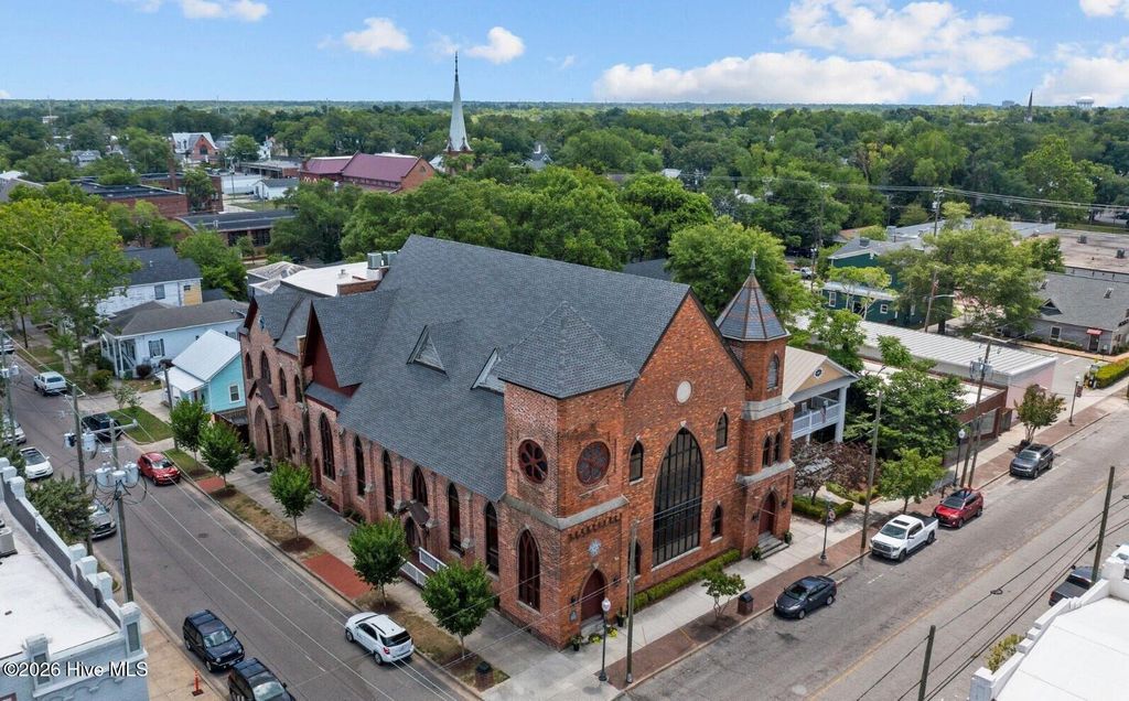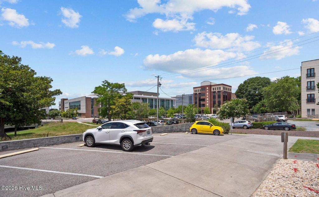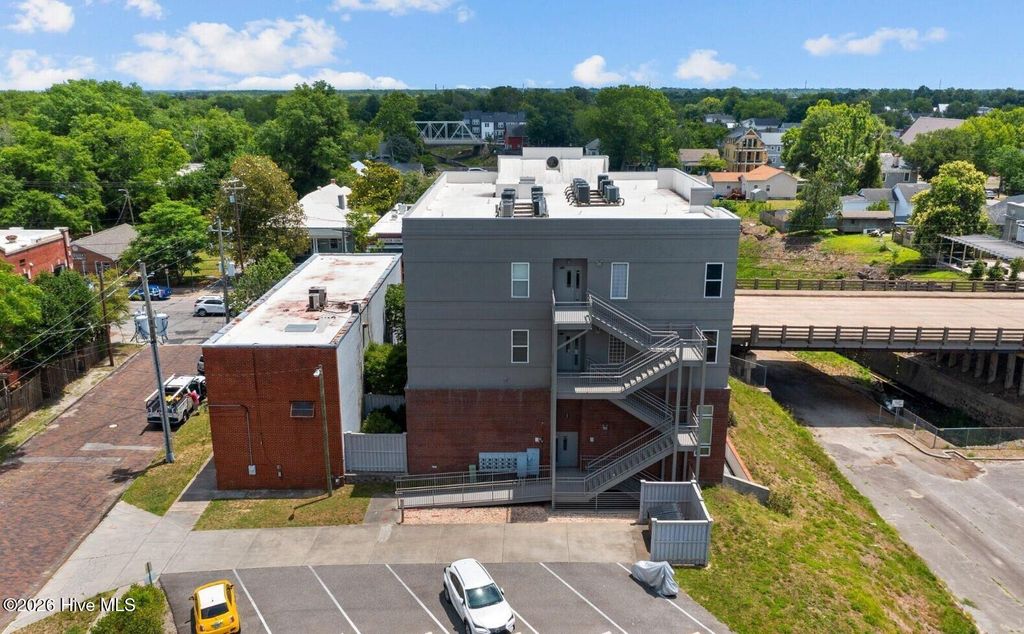 Welcome to The Weldon, a distinctive Art Deco-inspired residence in the heart of downtown Wilmington's vibrant Brooklyn Arts Social District. This stylish 2nd-floor 1-bedroom, 1-bath condo with dedicated office offers approximately 710 SF of efficient urban living with a highly walkable lifestyle. Recently approved by Wilmington's City Council, the Social District spans 10 downtown blocks where residents and visitors can walk the neighborhood with beverages while enjoying the area's breweries, dining, galleries, and live entertainment. Enjoy views of the historic canal corridor and the iconic One Tree Hill bridge from your windows. The corridor is part of ''The Downtown Trail'', a multi-use greenway connecting into Wilmington's expanding trail system and the city's marathon course. Your home features a bright open living, dining, and kitchen layout with waterproof LVP flooring, oversized windows, and built-in bookcases. The granite kitchen with island workspace creates an easy flow for everyday living and entertaining. A dedicated office with built-in desk and signature porthole window provides an inspiring work-from-home space. Your bedroom includes a walk-in closet and convenient access to the full bath with walk-in shower. A nook houses your washer and dryer and all appliances convey. Major systems are updated with a new A/C unit in 2023 and water heater and reverse osmosis system in 2020. Secure building with controlled entry, elevator, maintained common areas, and private storage. Low property taxes at just $905 per year. Moments from Flytrap Brewing, The Wilson Center, Live Oak Bank Pavilion, and the downtown Riverwalk.