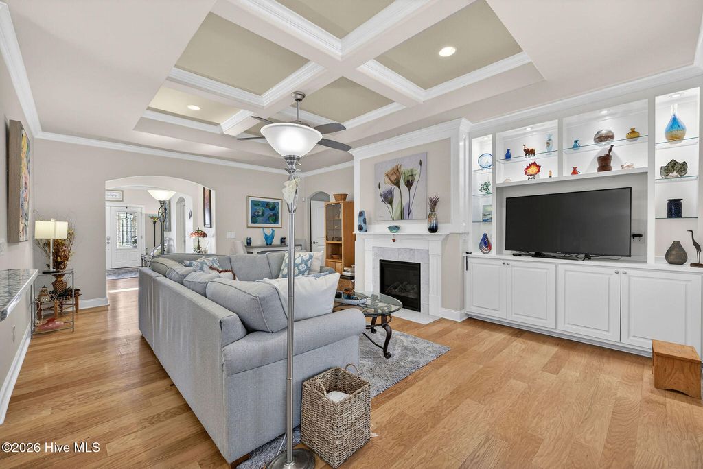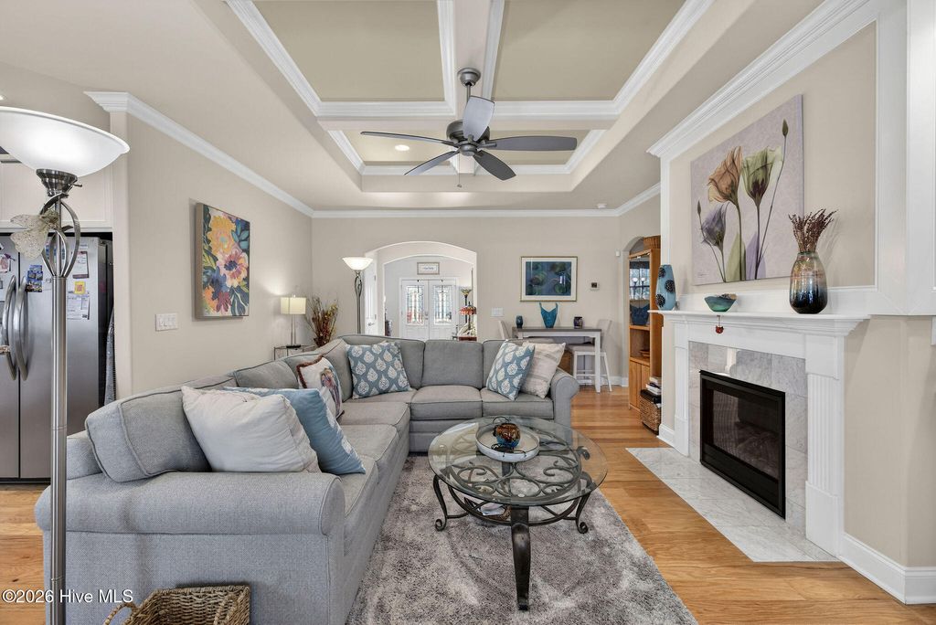 Welcome to the Beach Boca II Garden floor plan in the gated riverfront community of River Bluffs. This 3 bedroom, 2 bathroom home offers comfortable one-level living with an unfinished room over the two-car garage (FROG), providing excellent potential for future expansion, a home office, guest space, or additional storage. The home features an open and inviting layout with a natural gas fireplace in the living room and a kitchen equipped with a natural gas stove, perfect for everyday living and entertaining. The primary suite includes walk-in closets and a walk-in shower, while two additional bedrooms provide additional space.. Enjoy outdoor living on the large front porch or relax on the screened rear patio. Ideal for those seeking a low-maintenance lifestyle, the HOA covers exterior maintenance. River Bluffs offers exceptional amenities including a community marina, kayak launch, riverwalk, pool, fitness center, pickleball and tennis courts, trails, dog park, and The Riverside Kitchen & Bar. Conveniently located just minutes from Historic Downtown Wilmington and I-40.
