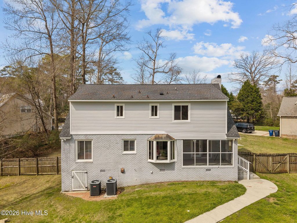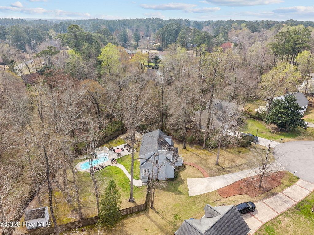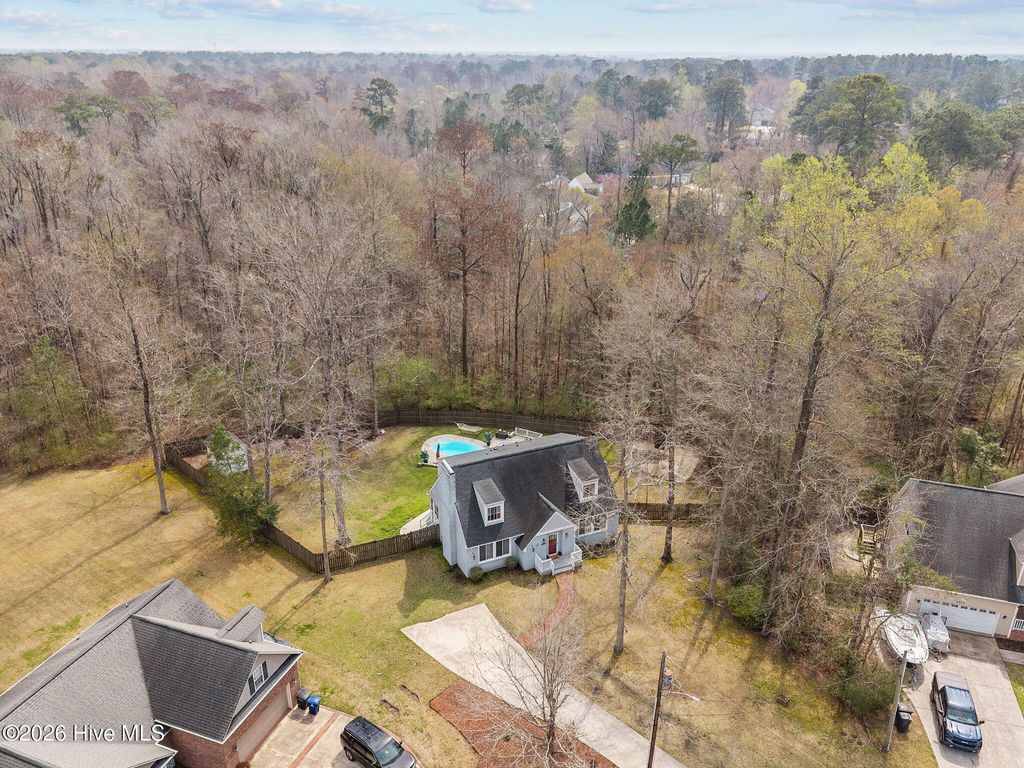 Tucked away on a quiet cul-de-sac in the highly desirable Country Club subdivision, this charming Cape Cod-style home offers 3 bedrooms and 2.5 baths and sits on a spacious .51-acre lot. Inside, you'll find fresh interior paint and new LVP flooring throughout the downstairs, creating a bright and welcoming feel. The home is filled with timeless character and charm, highlighted by a cozy fireplace that adds warmth and comfort to the main living space. Step outside to enjoy your own private backyard retreat. The screened-in porch overlooks a fenced backyard featuring an inground pool with a new pool pump, perfect for relaxing or entertaining on warm days. A storage shed provides extra space for tools and outdoor equipment. With its cul-de-sac location, generous lot, classic Cape Cod appeal, and thoughtful updates, this home offers the perfect blend of comfort, charm, and outdoor living in one of the area's most desirable neighborhoods. Close to shopping, restaurants & military bases this one won't last long. Schedule your tour today!