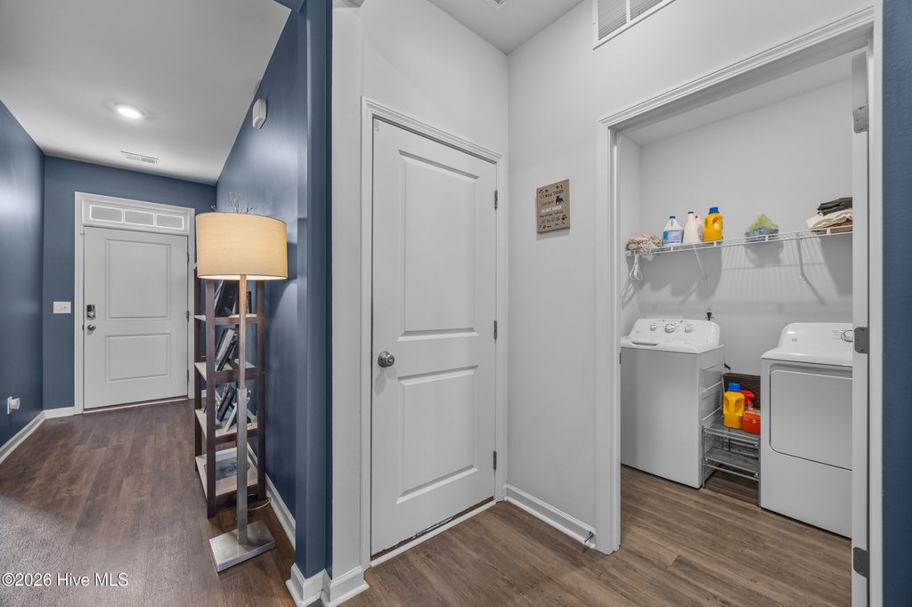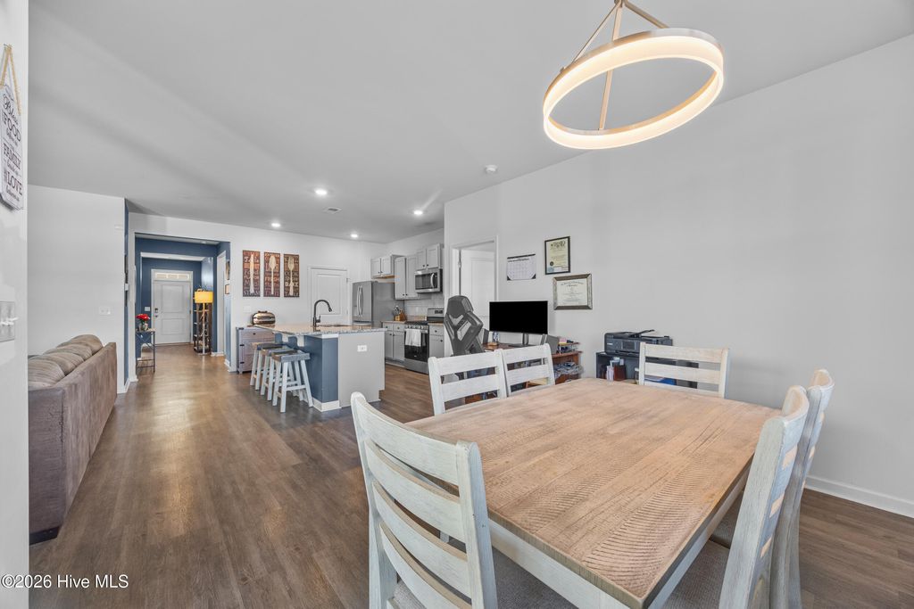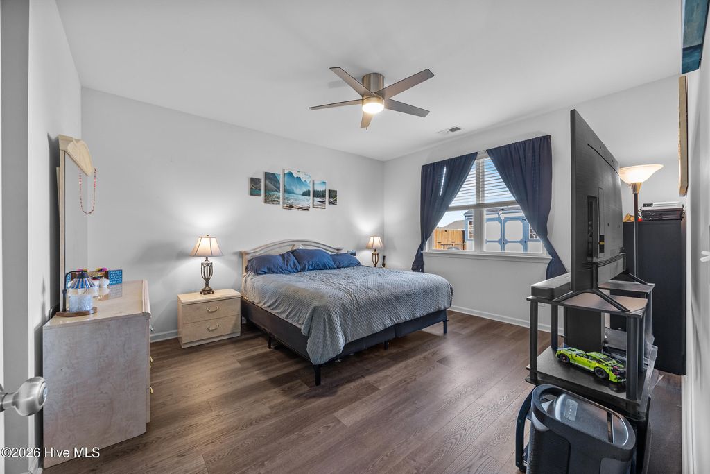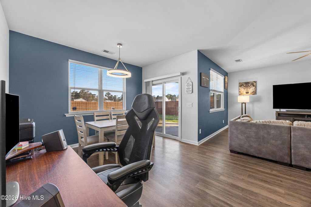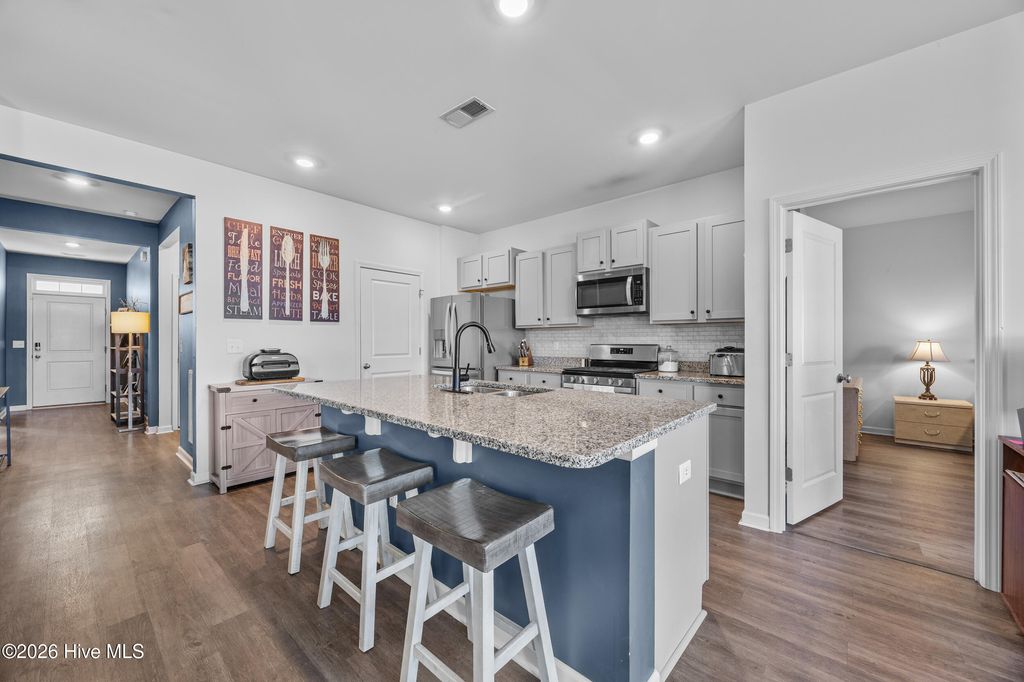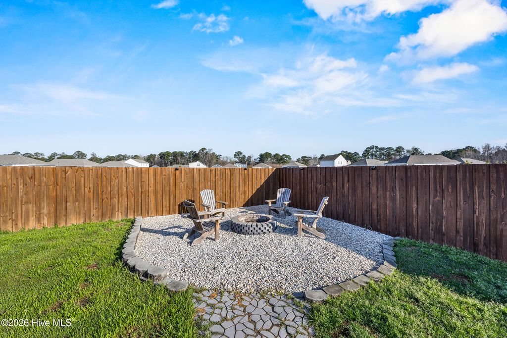 This bright and modern home offers comfortable living, a functional open floor plan, and an inviting outdoor oasis --all in a convenient location in Wilmington. The spacious kitchen features a large granite center island and flows seamlessly into the family room, creating the perfect layout for everyday living and entertaining. Natural light fills the home, enhancing the open and airy feel throughout. The primary suite provides a comfortable retreat with a generous walk-in closet and a large private bathroom. Step outside to enjoy the fully fenced backyard designed for relaxing and gathering. The outdoor space features a patio, a raised platform deck with shed, and a fire pit area--perfect for evenings with friends or quiet nights under the stars. Just beyond the fence is an open shared grassy area that adds extra breathing room and a sense of openness. Conveniently located near Wilmington International Airport, this home is also a short drive to area beaches and the vibrant shops, restaurants, and riverwalk of historic downtown Wilmington. If you're looking for modern comfort, bright living spaces, and a backyard ready for entertaining, this home is ready to welcome you.