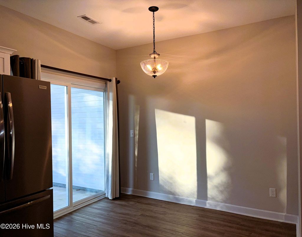 Welcome to The Hammocks at Port Swansboro, a charming townhome community just down the road from the historic Swansboro waterfront. You will love the spacious, open-concept living areas in this two-bedroom, 2 ½-bath home. Interior features include LVP flooring downstairs, custom blinds, bronze hardware and lighting fixtures, and a kitchen with granite countertops, white cabinets, a pantry, and stainless-steel appliances. Upstairs, you'll find two large bedrooms with ensuite bathrooms and walk-in closets. For added convenience, the laundry closet is also upstairs. With additional closet space both upstairs and down, there's a place for everything. The covered back patio and partially fenced yard are perfect spots to relax and enjoy the wooded scenery on these cool spring nights. Amenities for this lovely townhome complex include a community swimming pool and clubhouse. Come enjoy the coastal life in Swansboro!