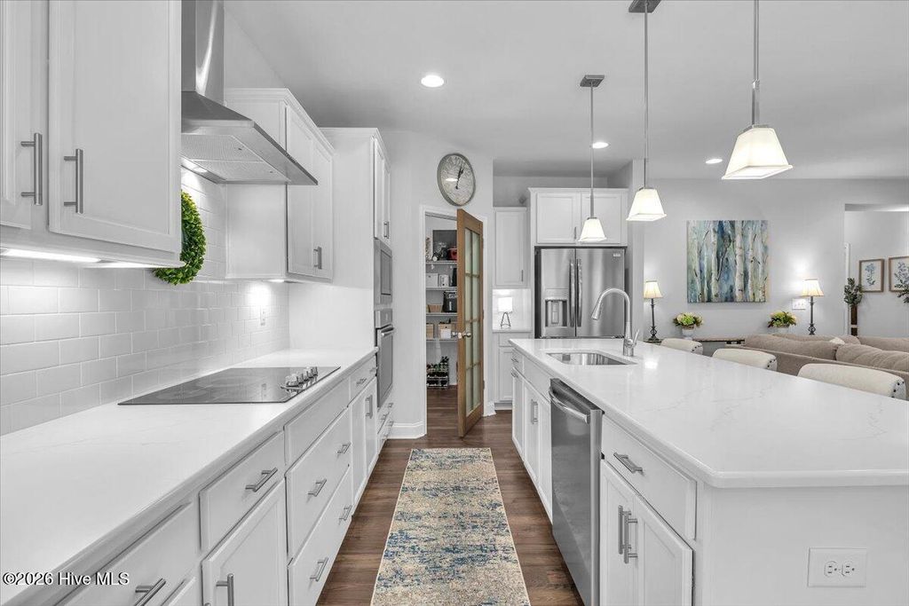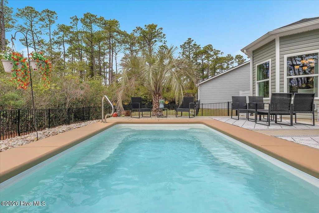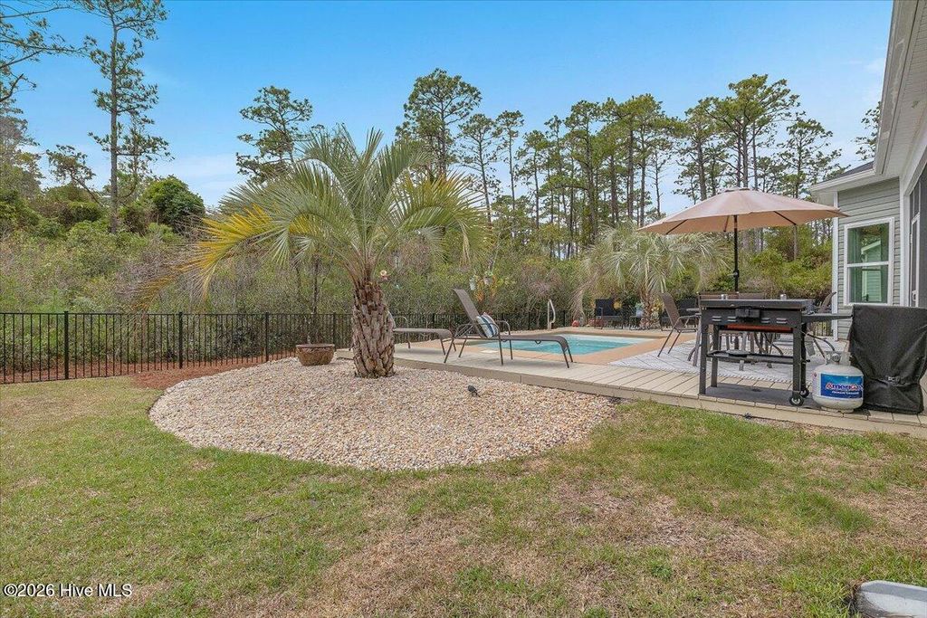 Welcome to PARADISE! This beautiful residence embodies the essence of resort-style living and elegance! Experience a vacation every day right in your own backyard! Situated on a cul-de-sac, the property has been meticulously maintained both inside and out and boasts over 2500 square feet of space! Relish a mere 15-minute drive to the beaches of Oak Island and return home to a relaxed lifestyle, cooling off in your exquisite pool. The shimmering saltwater, fiberglass, inground pool (16ft x 9.6ft) is encircled by river rock, ample decking, two mature Pindo palm trees, and a charming screened-in porch. It is simply breathtaking! The interior of this remarkable home is equally impressive! It features 3 bedrooms, an office with French doors and 3 full bathrooms. All doorways on the first floor are designed to be handicap accessible, measuring 36 inches wide. The 9-foot ceilings on the first floor highlight a large, open floor plan with a stunning kitchen that includes a massive island, a generous pantry, an outside vented fan, a convection/air fryer/steam/bake oven, and magnificent views of the backyard. The master bathroom provides a convenient zero entry shower with both a rain and mounted shower head. With a spacious bedroom, family room/loft and full bathroom on the second floor, guests will feel as if they are on vacation with ample privacy. This remarkable home will not remain on the market for long! (Hot tub in screened-in porch does not convey).