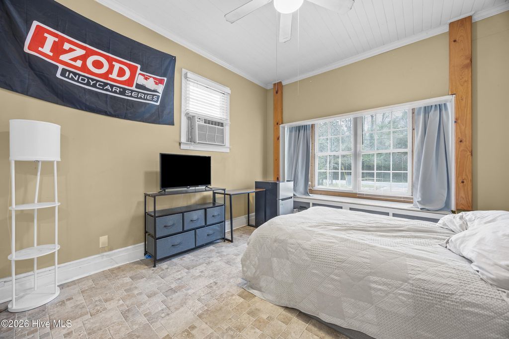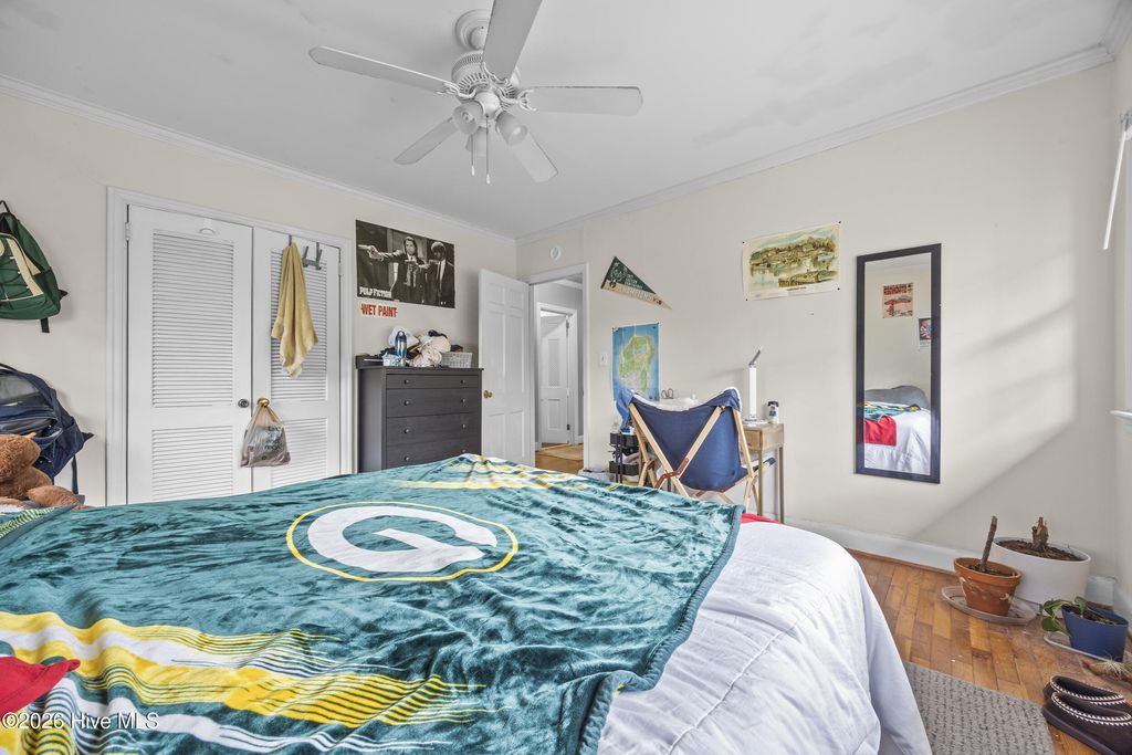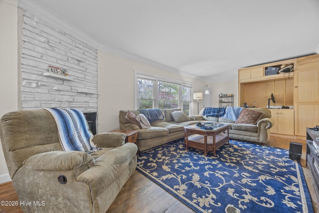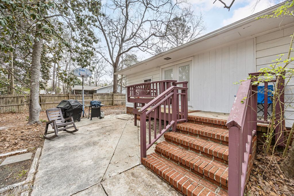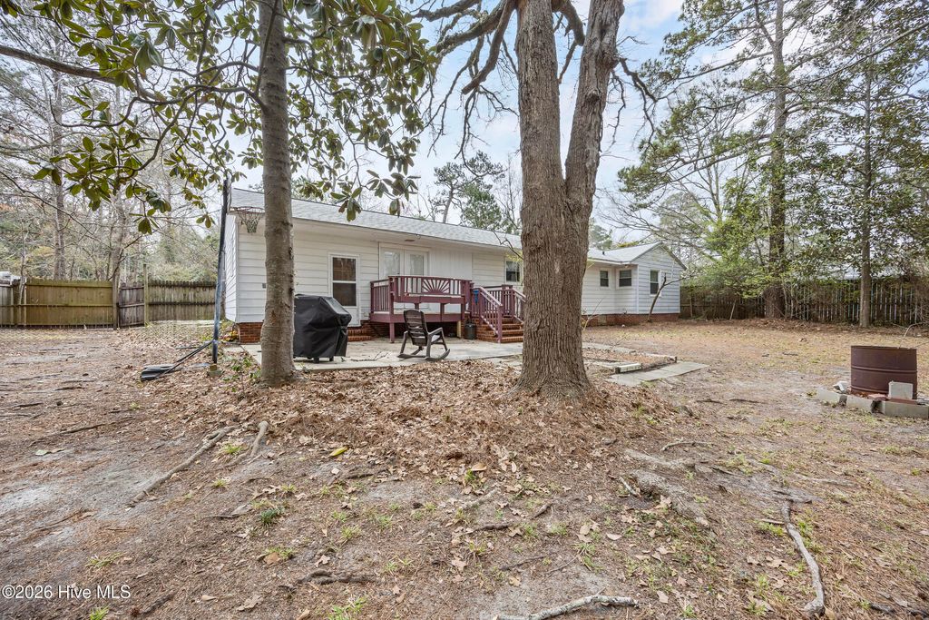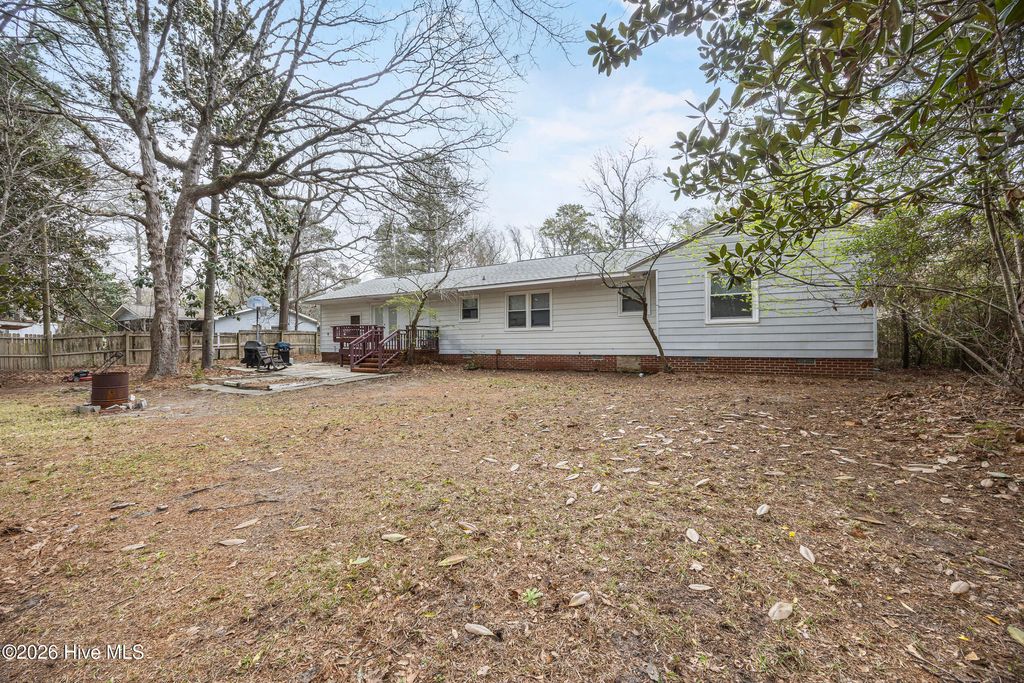 Rental alert! Don't miss this spacious 4-bedroom 2 full bath ranch home situated on a double lot with 2 front entrances! This home has great rental history and is occupied through June of '26. Location, location...Close to Cape Fear Hospital, UNCW and Wrightsville Beach! This home boasts lovely hardwood floors, 3 well sized bedrooms and closets with a full bath on one side of the home and another master suite with walk in closet and full bath on the other side. The Spacious living room has built ins that can be removed upon request and a woodburning fireplace. There's also a bright dining room area with a window into the full kitchen with remaining refrigerator. The spacious storage and laundry room is off the kitchen with washer/dryer hookup and a door to the back deck overlooking the large wooded lot. The HVAC was replaced in 2024, roof in 2022, and new living & dining room windows which quiet road noise and are still under warranty!