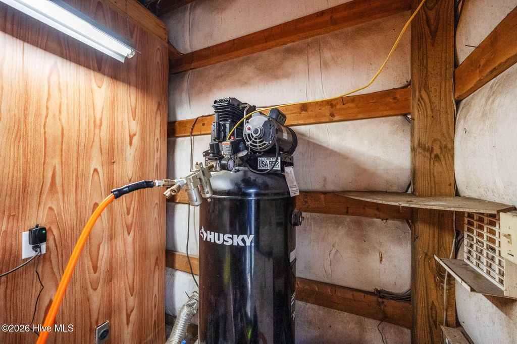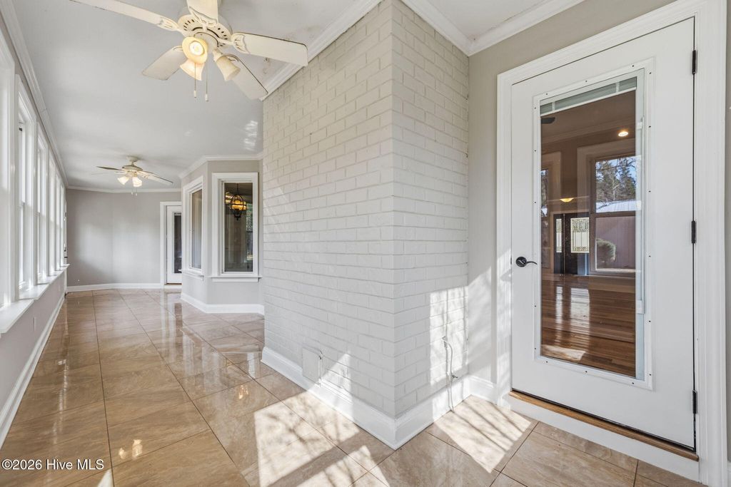 Situated on approximately 2 acres in a quiet rural setting, this property offers space, functionality, and convenient access to nearby waterways and town amenities. Located just minutes from a boat ramp on the Northeast Cape Fear River, the home is also within 10 minutes of Burgaw Elementary and Middle School, about 20 minutes to Heide Trask High School, and roughly 30 minutes to Wilmington and Jacksonville. Inside, the home features hardwood flooring throughout much of the main living areas, an open-concept layout, and a vaulted living room with skylights and a gas fireplace that fills the space with natural light. A sunroom overlooking the fenced backyard provides an additional living area to relax or entertain. The finished room over the garage offers flexibility for a guest room, office, or hobby area, and the home is serviced by a heat pump with central AC zoned between the attic/primary area and the remainder of the home. The crawl space was fully encapsulated in June 2022, and the roof was replaced in November 2022. Outside, the property includes an oversized garage capable of supporting full-size ¾-ton pickups and a detached shop designed for both work and storage. The shop features a 30-amp outlet for trailer hookups, a 60-gallon air compressor (155 PSI), its own water heater, washer and dryer hookups, and a full bathroom, and is large enough to store a 30-foot camper. Additional features include a high-flow private well capable of watering the yard and supporting household use, septic system, county-regulated drainage system, and a fully fenced backyard with a dog door already installed. This unique property offers the flexibility of rural living with room for hobbies, equipment, and outdoor recreation while remaining within easy reach of town and coastal destinations.