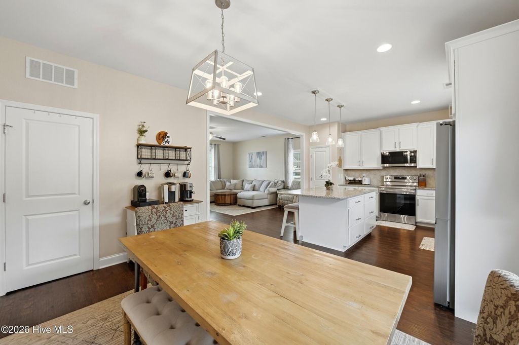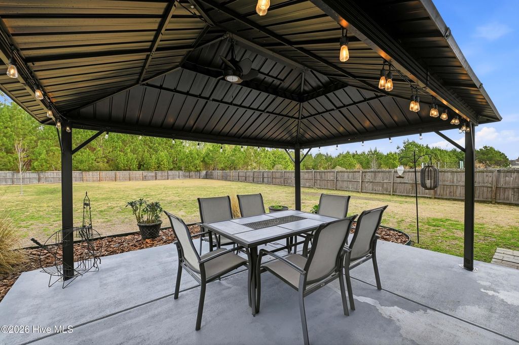 Welcome home. Some homes just feel right the moment you walk in, and this one is exactly that. Out front, a welcoming porch and mature tree-lined views set the tone before you even step inside. Step inside and you are greeted by a spacious living area that draws you in with natural light and a warm, inviting energy. The open kitchen impresses with a granite island and stainless steel appliances, with the dining area right alongside it, a setup made for real life and easy entertaining. From the dining area, step directly out onto the patio and into the backyard. The backyard truly delivers. Nearly half an acre, fully fenced, with an extended concrete patio and a gazebo built for relaxing out of the Carolina sun, there is plenty of room for weekend barbecues, cornhole, bocce and every kind of backyard memory you can imagine. Wooded views to the rear create a sense of peace and privacy that is hard to find. Upstairs you will find a spacious primary suite, generous secondary bedrooms and a versatile bonus room perfect as a home theater, playroom, home office or study. Just minutes from Camp Lejeune's main gate and all the daily conveniences of coastal NC living, this home offers the space, privacy and lifestyle you have been looking for. Schedule your private tour today.
