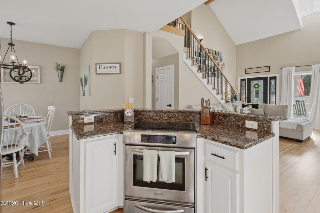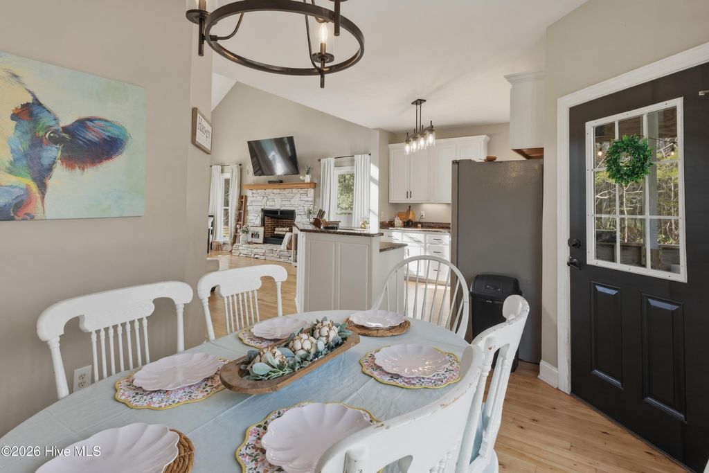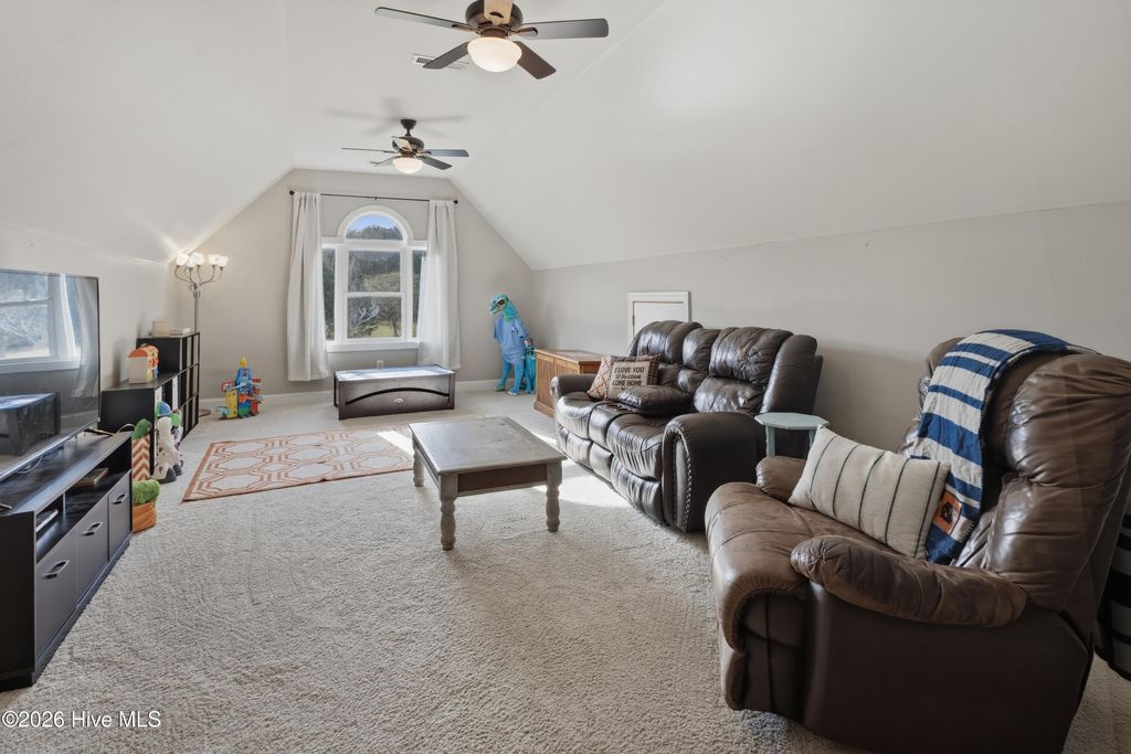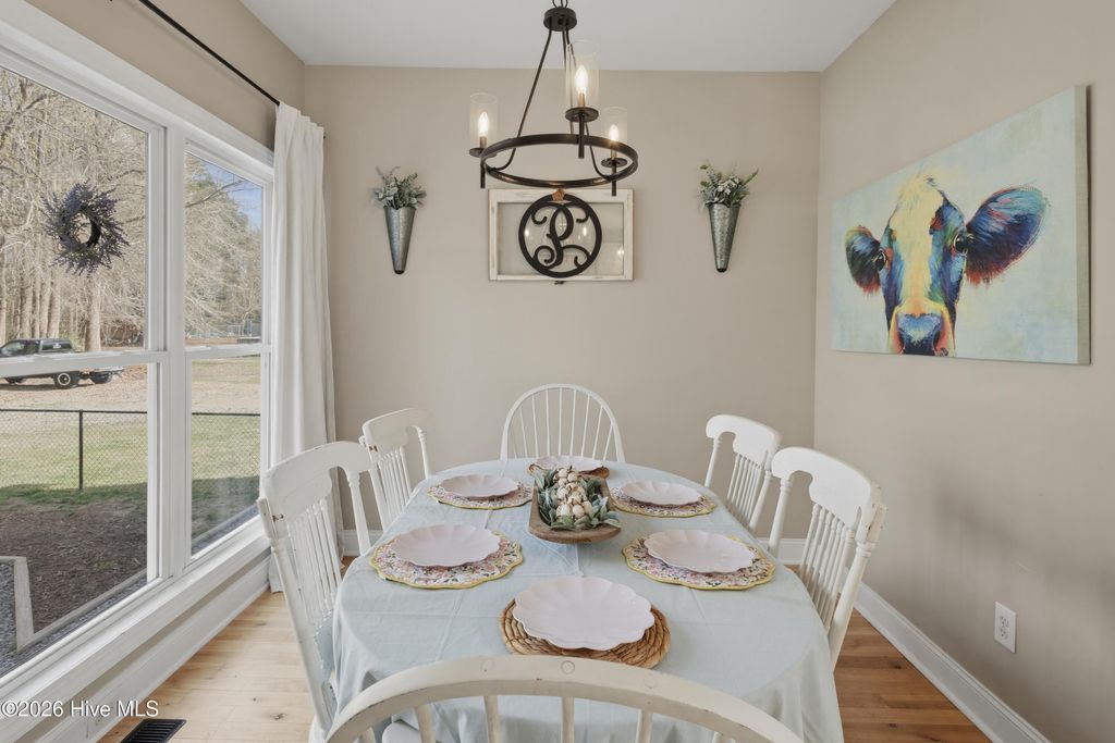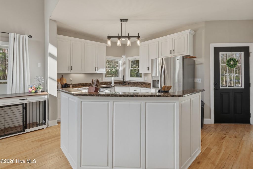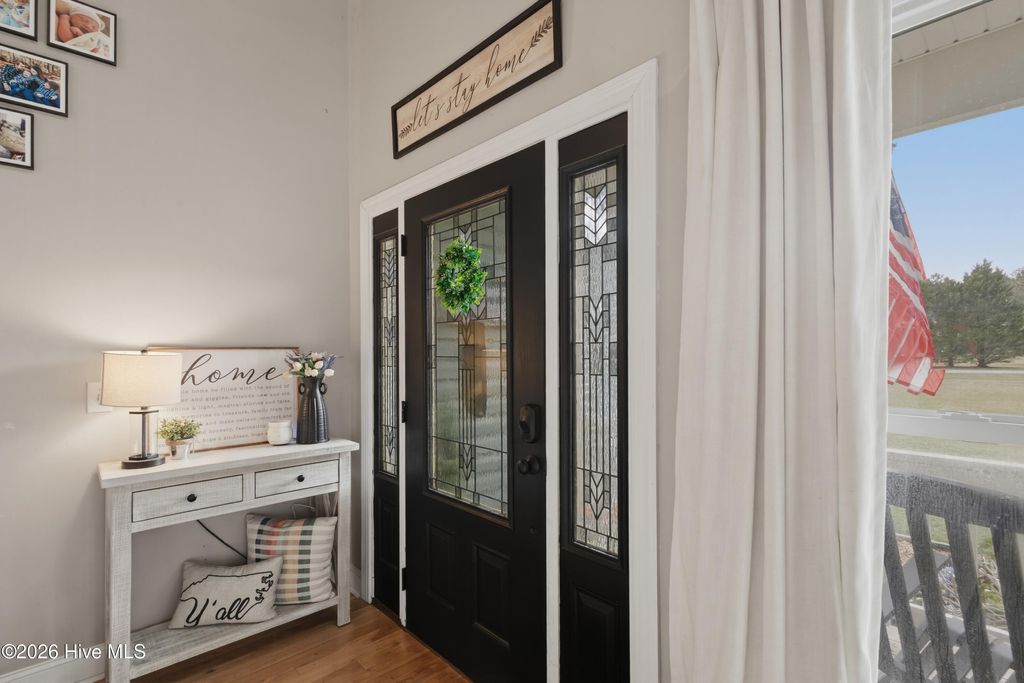 Welcome to this beautiful 3-bedroom, 2.5-bath home situated on 1.13 acres in Burgaw, NC, offering space, comfort, and a welcoming layout. A charming front porch and spacious front yard create great curb appeal as you arrive. Inside, the home features an open concept design with a stunning two-story living room that allows natural light to pour in, creating an airy and inviting atmosphere. The open staircase and upstairs landing overlook the main living area, adding to the home's spacious feel. Hardwood floors run throughout the main living area, seamlessly connecting the living room to the kitchen and dining space--perfect for everyday living and entertaining. The kitchen features white cabinetry, granite countertops, and ample workspace, while remaining open to the dining area so family and guests can easily gather together. Just off the main living space, the large primary suite provides a relaxing retreat with his-and-hers closets and a spacious en-suite bathroom featuring a jetted soaking tub and a tiled shower with dual shower heads. Upstairs, you'll find two additional bedrooms and a shared bathroom, with one bedroom offering its own direct access to the bath. The second floor also features a large open landing overlooking the living room below, along with a spacious bonus room located over the two-car garage. This versatile space already includes plumbing in place for a future mini kitchen, offering excellent potential for a guest suite, entertainment area, or multi-generational living space. The bonus room also provides convenient access to attic storage. Step outside to enjoy the screened-in back porch overlooking the fenced backyard, providing a great space to relax or entertain while taking in the peaceful surroundings. The property also includes a large pole barn at the rear, offering excellent storage or workshop space, all while sitting on over an acre of land that provides room to spread out and enjoy country living while still being conveniently located in Burgaw.