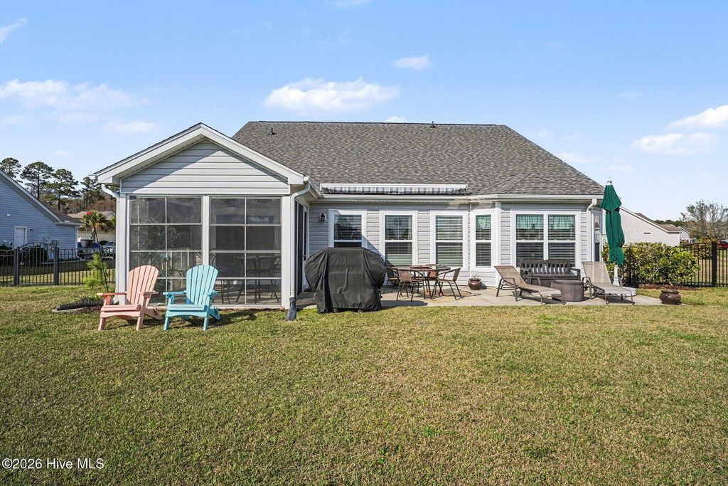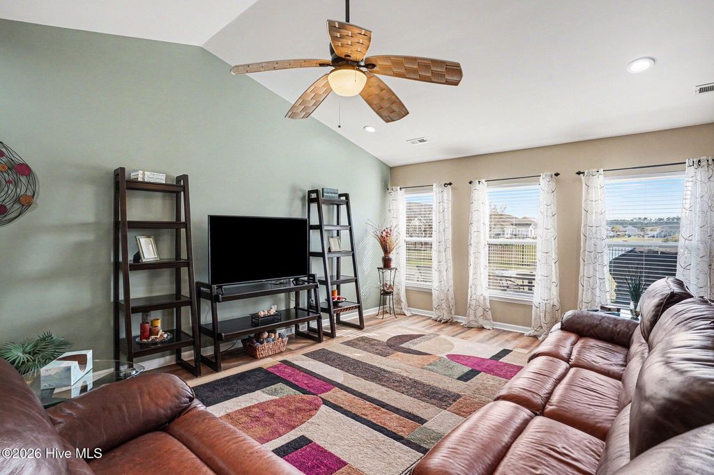 Set against tranquil community lake views, this exceptional Spring Mill Plantation residence offers the kind of lifestyle buyers chase and rarely find, peaceful mornings in the sunroom, evenings on the expansive patio under the retractable awning, and a backyard setting with room for a future hot tub already thoughtfully prepared with a dedicated outlet. From the moment you arrive, the home feels like a retreat: polished, inviting, and designed for both effortless everyday living and elegant entertaining. Inside, luxury meets practicality with LVP flooring throughout and a new roof that adds immediate confidence to the home's move in ready appeal. The floor plan is as functional as it is beautiful, with nearly all bedrooms on the main level for convenience and flexibility. A spacious formal dining room creates a refined setting for holiday gatherings and dinner parties, while the eat in kitchen offers a more relaxed place to gather, complete with a breakfast bar, pantry, and an easy flow into the main living spaces. The primary suite is a true private sanctuary, thoughtfully separated from the guest bedrooms and designed for comfort at every turn. This spacious retreat features an updated spa inspired bathroom with a large tiled shower, soaking tub, double vanity, and an oversized walk in closet that makes everyday living feel indulgent. On the opposite side of the home, the front two guest bedrooms share a well placed full bath, creating an efficient layout that offers privacy and practicality for family or visitors. A spacious laundry room with a storage closet adds even more functionality to the thoughtful design. Upstairs, a private guest suite delivers exceptional versatility, with its own bedroom, bathroom, and bonus area, ideal for long-term guests, a media room, home office, or multigenerational living. Outdoors, the lifestyle continues. The enclosed sunroom extends your living space year round, while the large extended back patio invites outdoor dining, quiet evenings, and effortless entertaining with a serene lake backdrop. The 2 car garage is equally well considered, featuring a retractable screen door for added comfort and utility. Beyond the property itself, Spring Mill Plantation offers the amenities buyers love, including a community center, pool, and sidewalks throughout the neighborhood, perfect for meeting neighbors and enjoying an active, connected lifestyle. This is more than a home; it is a beautifully balanced blend of comfort, elegance, and easy living. Schedule your private showing and experience the view, the layout, and the lifestyle for yourself.