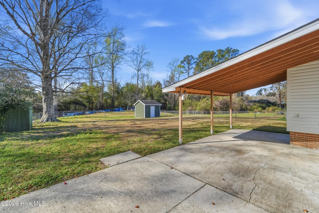 Welcome home to this charming 3-bedroom, 2-bath property tucked away on a quiet dead-end street! Inside, you'll find fresh paint and durable LVP flooring throughout, creating a clean and modern feel. The home features a spacious living area and a formal dining room--perfect for hosting family dinners or entertaining guests. Step outside to enjoy the covered patio overlooking a fully fenced backyard, ideal for pets, play, or relaxing evenings. The backyard also includes a fantastic shed with a solid cement floor, providing excellent storage or workspace potential. A convenient carport offers covered parking and additional protection from the elements. Located just minutes from shopping and restaurants, this home combines comfort, convenience, and privacy in one great package. Schedule your showing today!