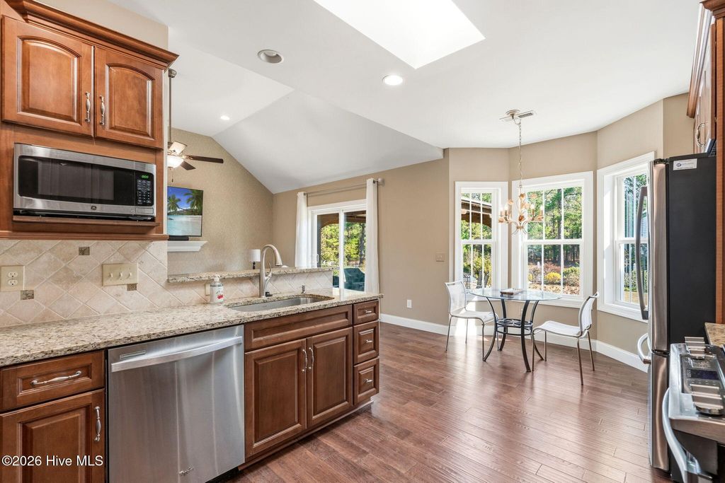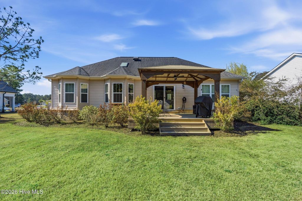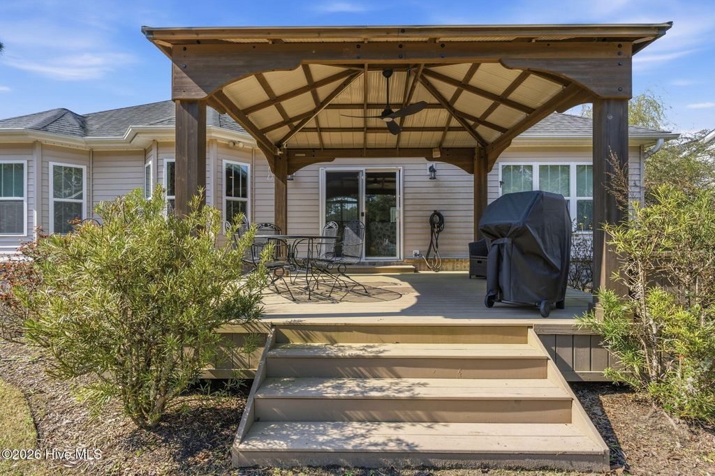 As you arrive to this custom built home, you're greeted by lush landscaping with a pond/fountain view in front. The open concept floor plan has high ceilings and lots of natural light. The gourmet kitchen offers gas range, stainless steel appliances and granite countertops. The dining area has views of the pond and the breakfast area offers views of the large lot. The outdoor deck is covered with a beautiful gazebo and a great place to enjoy all the plantings and perennials. This home has so many extras and a must see to appreciate. Brunswick Plantation amenities include indoor and outdoor pools, fitness center, tennis/pickleball courts, walking/biking trails, onsite restaurant and gated with 24 hour security.
