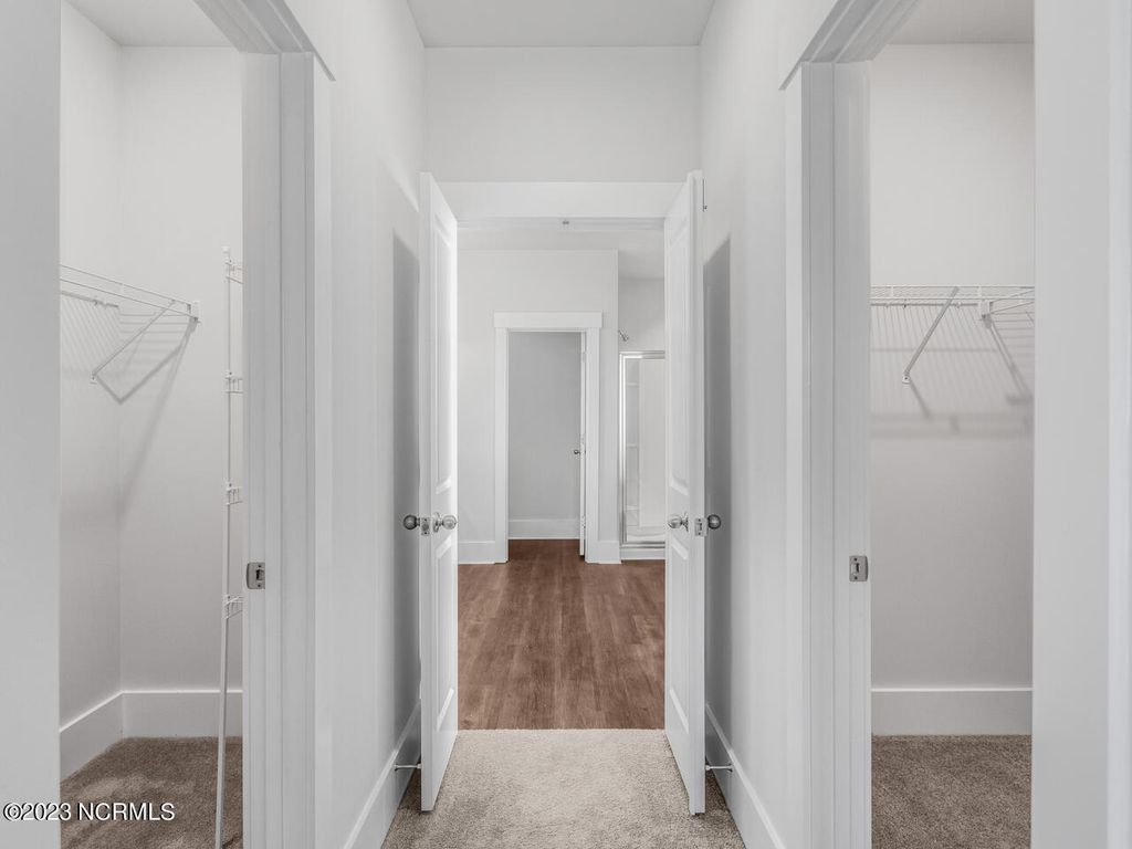 The Litchfield plan is a perfect home for relaxation and entertaining with a very open floor plan, 11.5 foot high ceiling, and a large gourmet kitchen with 42'' cabinets and granite, walk-in pantry, and stainless-steel appliances in kitchen. Luxury vinyl plank flooring is included throughout primary living areas, giving you a wood-like look with the durability to handle all your beach days. The owner's suite features a step-in 5-foot shower and dual vanity. Spend the end of your days on the oversized covered porch that has plenty of room for relaxing and backs up to a pond. The home comes equipped with an included smart home system with a 7'' touch screen that controls your front door digital lock, front porch light, z-wave thermostat and video doorbell. The system is also controlled via voice command and an included phone app for remote use. This beautiful community has a clubhouse, pool, playgrounds, fitness, pickle ball, tennis courts. dog parks and sidewalks. Close to shopping, restaurants, downtown Wilmington and area beaches, yet in a beautiful country setting. Est completion Fall 2024.