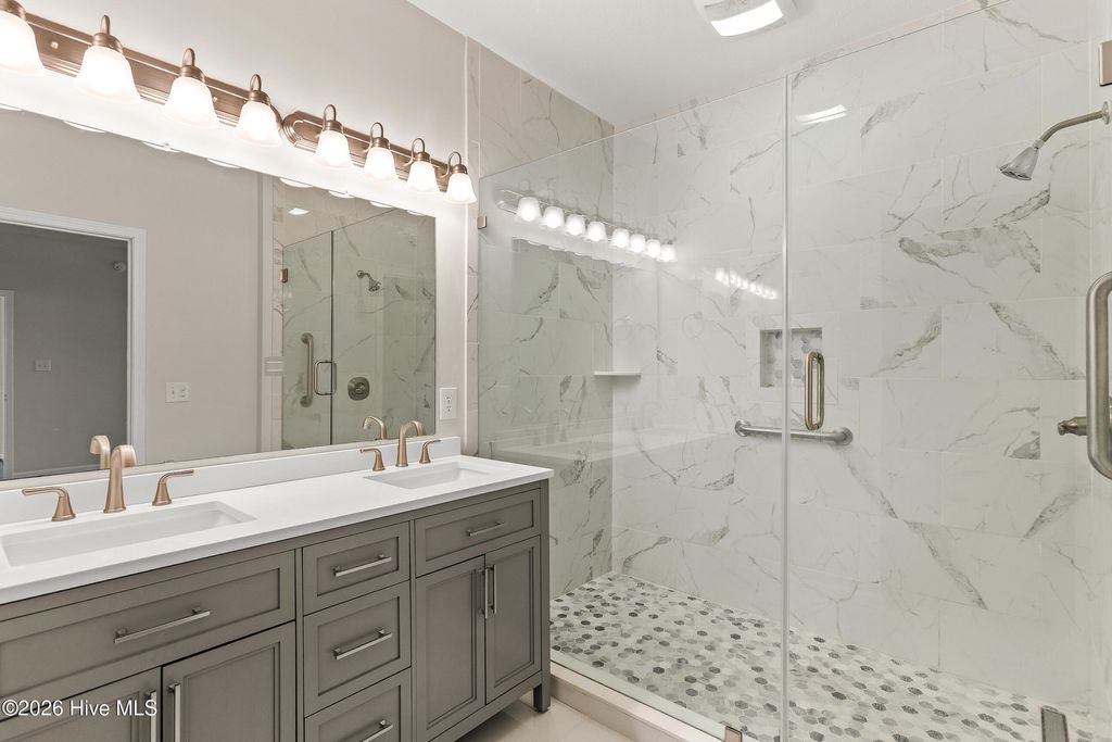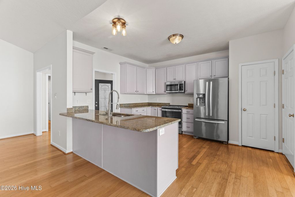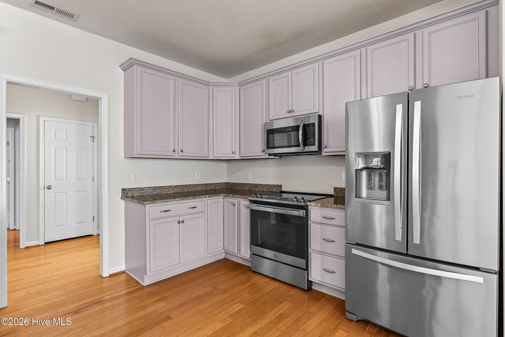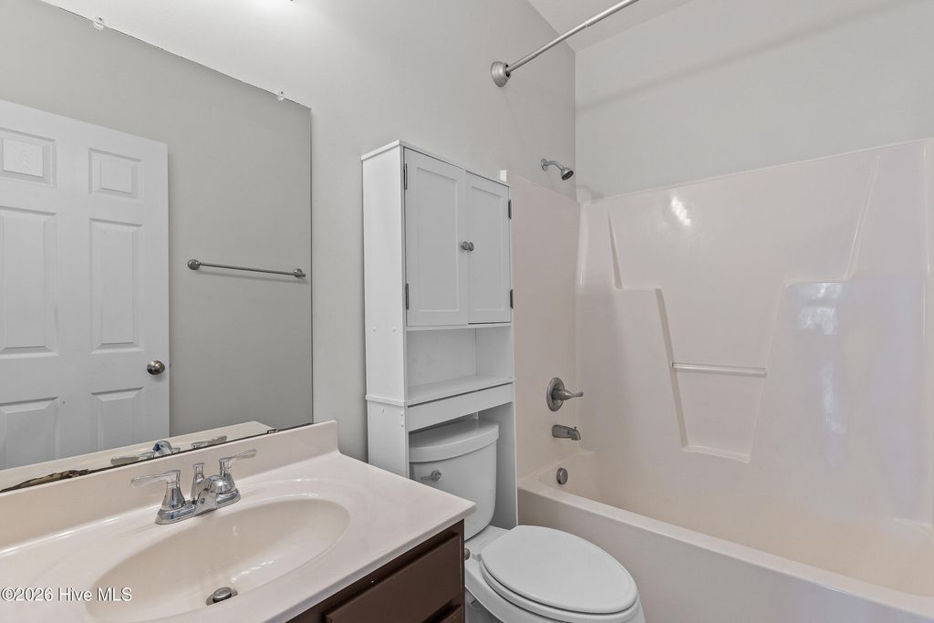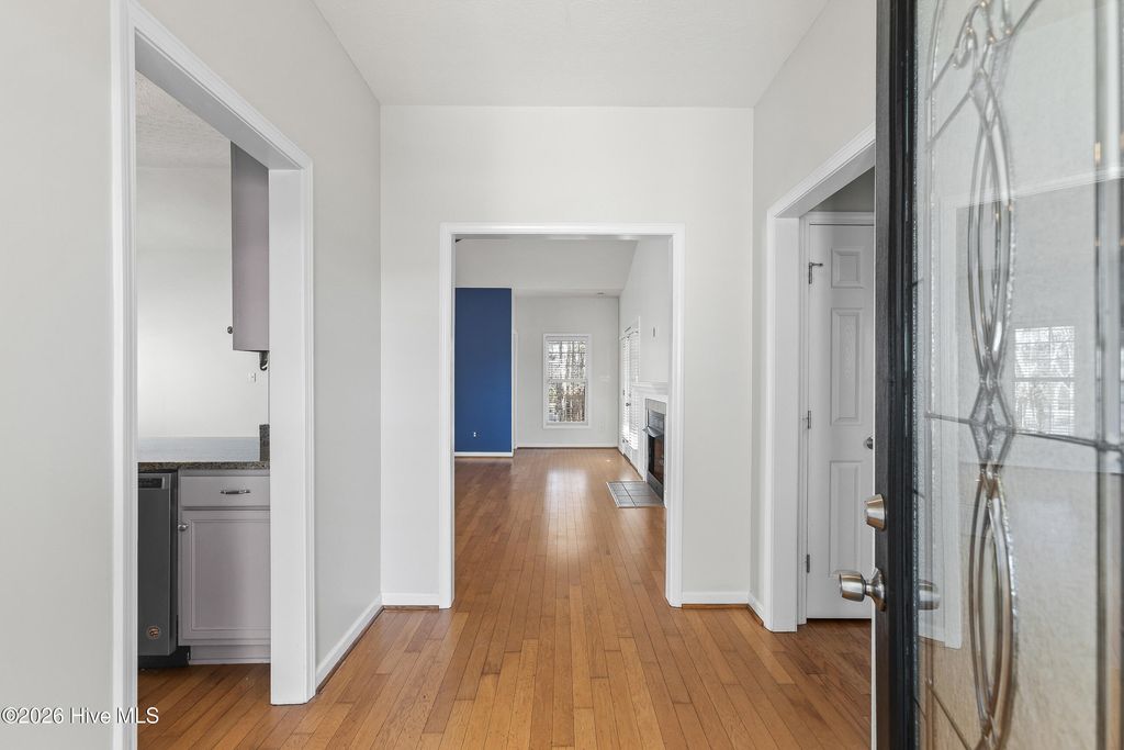 Just in time for Spring! Welcome home to this beautiful well maintained home in an established neighborhood. You are close to shopping, dining, bases, schools and great entertainment options and of course don't forget those pristine beaches of NC close by. When you walk onto your covered front porch and into your home welcomed by the beautiful hardwood floors throughout the home. Off the entrance are 2 nice size bedrooms with a full bathroom in between for your convenience. The main living area and kitchen are open to the house with a well equipped kitchen with granite countertops, stainless steel appliances. Off the kitchen is the laundry room and a two-car garage with 12-foot ceilings and attic storage. In the main living area you have soaring vaulted ceilings and a cozy and a gas fire place as the center piece of the room. Off the main living are is your primary suite feels like a private retreat a generous size room with a walk in closet. The ensuite is updated with a beautiful tiled walk-in shower and quartz vanities feels like your own private spa oasis. French doors lead you outside to a spacious deck that is screened in so you can enjoy those beautiful NC days & nights outside without those pesky bugs. You will not be disappointed with this beautiful home with a private backyard. Added bonus the HVAC was replaced in 2025. Crawlspace has adehumidifier added in 2025. Don't miss out on this great home in a beautiful subdivision Call your local agent for a private tour before this one is gone.
