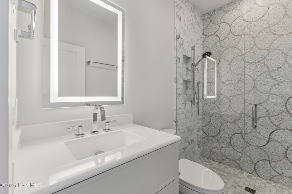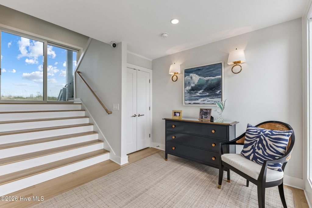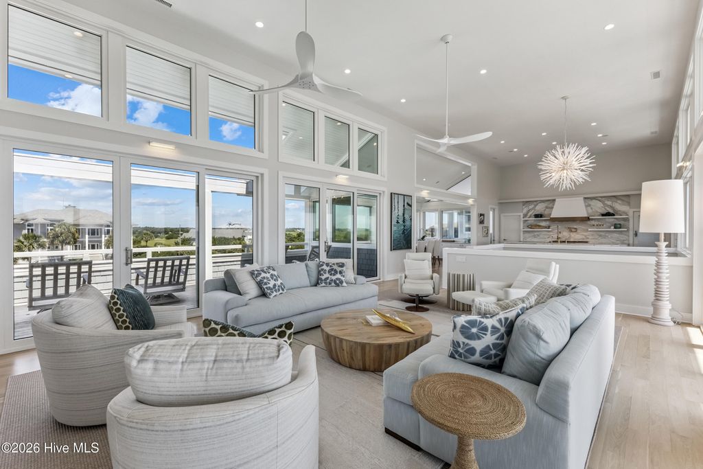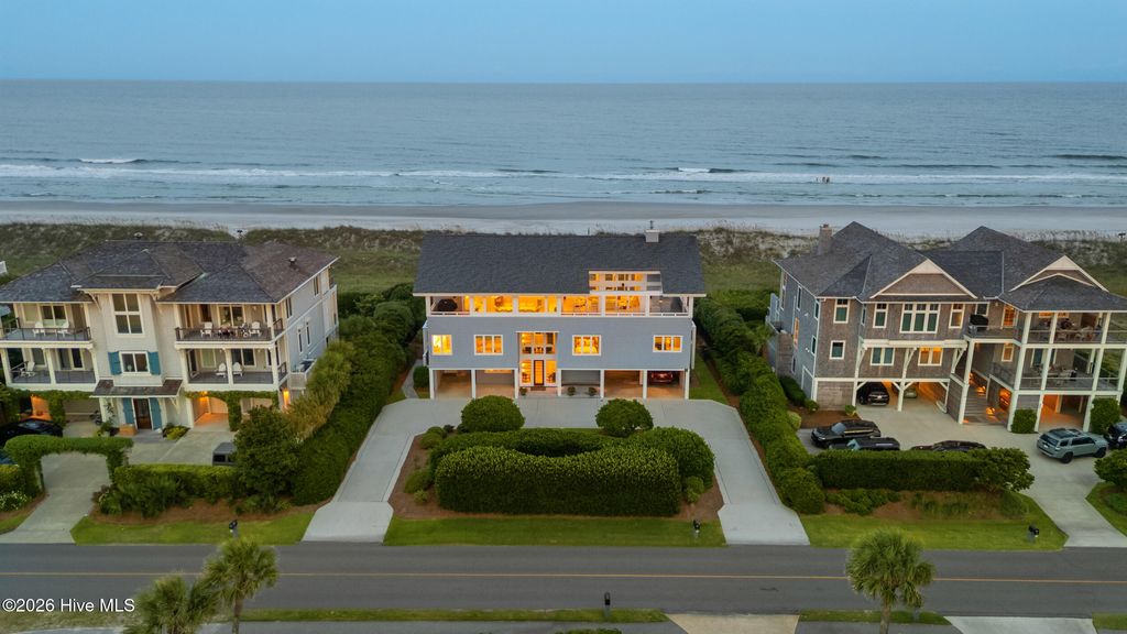 Come experience panoramic views of both the Atlantic Ocean and the sound from this exceptional coastal residence on Figure Eight Island, ideally positioned to capture sweeping water vistas and an abundance of beach. From the upper decks, enjoy breathtaking sunrises over the ocean and sunsets over the sound. The home's thoughtful design allows the living areas and many bedrooms to fully embrace the scenery, with walkout access to enjoy the beach views and nearly every room capturing vistas of either the ocean or the sound, creating an effortless connection to the surrounding coastal beauty. Located on Figure Eight Island, a private island community known for its exclusivity and tranquility, this home offers a rare opportunity to escape the pace of everyday life and retreat to a relaxed, private coastal sanctuary while still being just minutes from Wilmington. No expense was spared in the home's complete renovation, featuring a stunning kitchen appointed with imported Italian marble, state-of-the-art appliances, and a beautifully redesigned fireplace. All bathrooms have been meticulously renovated, including the addition of a new bathroom, and new white oak flooring runs seamlessly throughout the home. The residence has been further enhanced with hurricane-grade windows and sliding glass doors, a whole-home generator, and an updated elevator, combining modern comfort with peace of mind. Outdoors, extensive and thoughtfully designed landscaping frames the property, while a private walkway leads directly to the beach, inviting peaceful shoreline strolls where dolphins are often seen just offshore. A circular driveway provides ample parking, completing the ease and elegance of this remarkable island retreat. Let nature and the rhythm of the coast inspire you from this luxurious Figure Eight Island residence, where extraordinary views, refined design, and the serenity of private island living come together in perfect harmony. Sold partially furnished, Listing agent to provide exclusions.