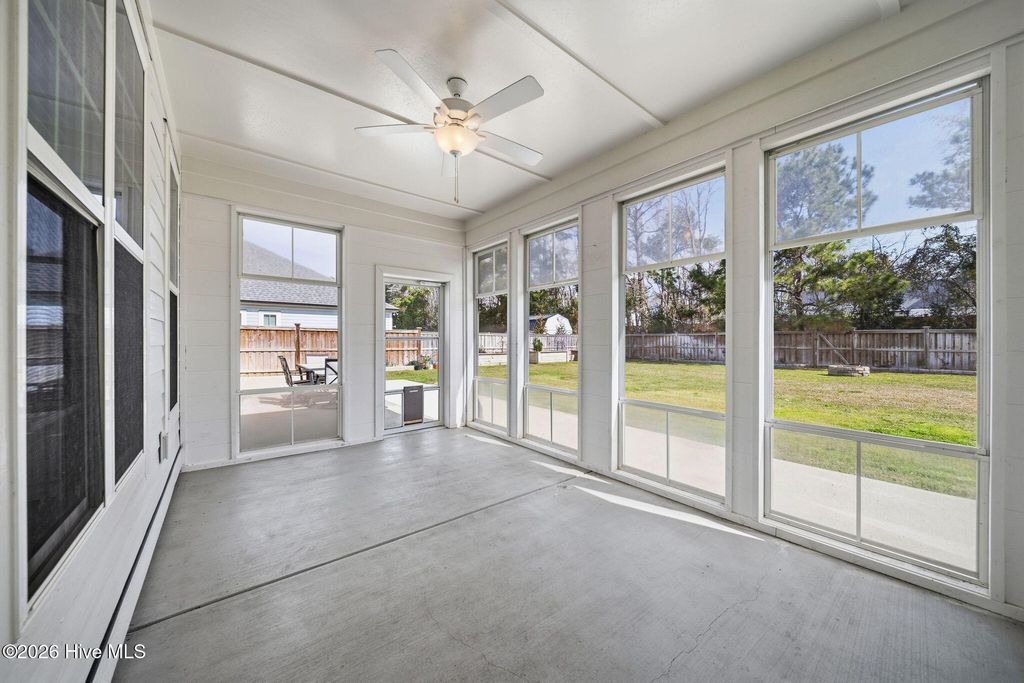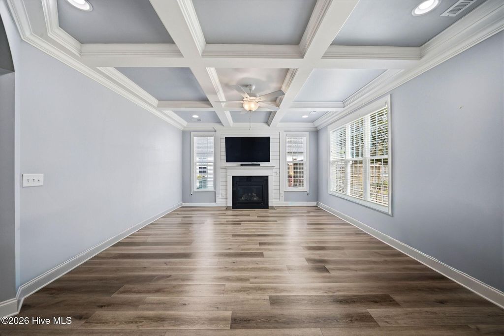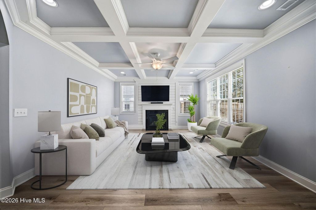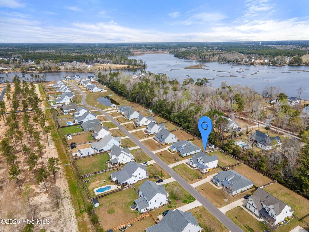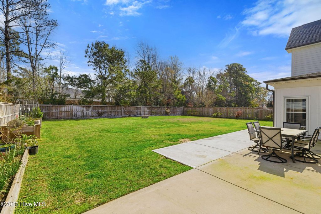 Welcome to 166 Camden Trail -- the only Blue Ridge plan by American Homesmith in Camden Community featuring a rare side-load garage, delivering exceptional curb appeal and a heightened sense of privacy -- a rare find in this community. This beautifully maintained modern coastal farmhouse is move-in ready with a completed pre-listing inspection, all repairs made, freshly painted throughout, and full disclosure on file -- a level of seller transparency rarely seen in today's market. Nestled in Camden Community on Virginia Creek in sought-after Hampstead, NC, this home sits between Wilmington and Jacksonville, just steps from the public boat ramp, minutes from the Intracoastal Waterway, and less than 10 minutes to the sugar sand beaches of Surf City and Topsail Island. Zoned for the highly rated Topsail School District. Inside, every detail has been thoughtfully considered. The grand two-story foyer with formal dining room sets the tone from the moment you enter. The open-concept main living area showcases a stunning coffered ceiling family room with gas log fireplace and shiplap surround, flowing seamlessly into the breakfast area and sitting room. The chef's kitchen features timeless white cabinetry, quartz countertops, tile backsplash, a farmhouse sink, large center island, and stainless steel appliances including a propane gas range -- designed for both everyday living and entertaining at any scale. Fine architectural details including tray ceilings, coffered ceilings, wainscoting, and two-story foyer elevate this home well above comparable resales and new construction at this price point. All four bedrooms and laundry are located on the upper level -- a thoughtful layout offering privacy and separation from main living areas. The owner's suite features a tray ceiling, dual vanity, soaking tub, tiled walk-in shower, and an oversized walk-in closet with custom wood shelving that connects directly to the laundry room. All three secondary bedrooms include their own walk-in closets and share a full bath. Outdoor living is equally impressive. A large covered wrap-around front porch welcomes you home and is perfect for morning coffee or evening conversations. The rear covered porch and patio overlook a fully sodded, privacy-fenced, and irrigated backyard with an additional concrete patio pad -- ideal for grilling and entertaining. Owner improvements include epoxy-finished garage floors, enhanced outdoor living space, and raised garden beds adding both function and beauty. The neighborhood is lined with gorgeous mature crepe myrtles leading to the community dock and waterfront access on Virginia Creek -- offering kayaking, paddleboarding, and quick access to Sloop Point Marina and the public boat ramp. Whether you are a military professional seeking an easy commute to Camp Lejeune or MCAS New River, a remote worker craving a coastal lifestyle, or a family seeking top-rated schools and waterfront amenities -- this home checks every box. Pre-listing inspection completed | Repairs made | Full disclosure in MLS documents | Seller working with a relocation service -- see Documents for additional information.