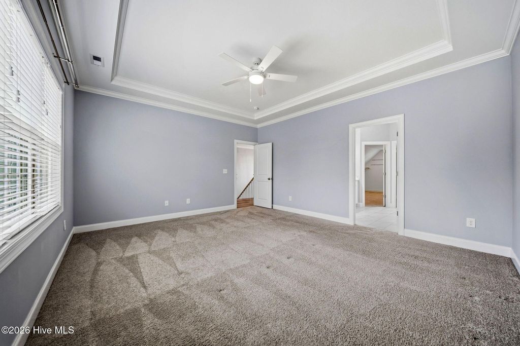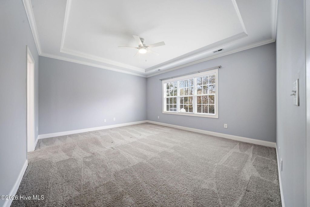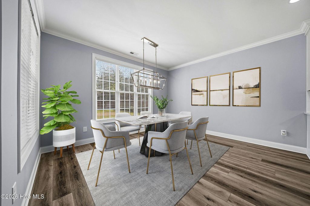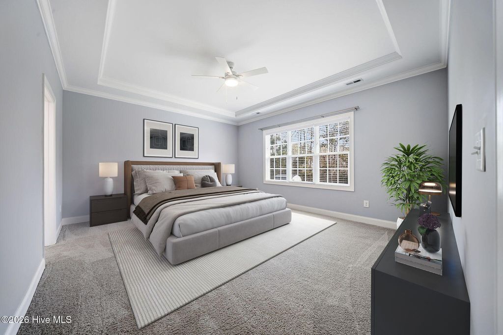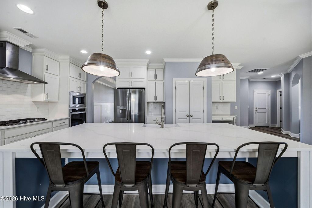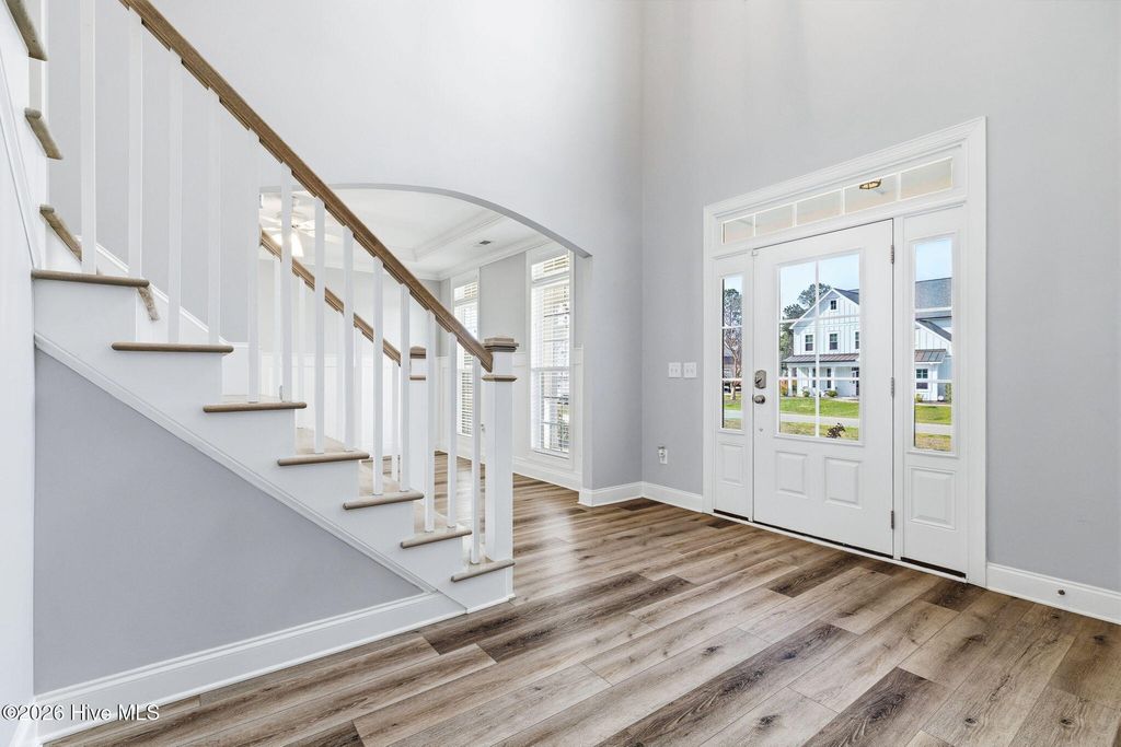 Welcome to 166 Camden Trail -- the only Blue Ridge plan by American Homesmith in Camden Community featuring a rare side-load garage, delivering exceptional curb appeal and a heightened sense of privacy -- a rare find in this community. This beautifully maintained modern coastal farmhouse is move-in ready with a completed pre-listing inspection, all repairs made, freshly painted throughout, and full disclosure on file -- a level of seller transparency rarely seen in today's market. Nestled in Camden Community on Virginia Creek in sought-after Hampstead, NC, this home sits between Wilmington and Jacksonville, just steps from the public boat ramp, minutes from the Intracoastal Waterway, and less than 10 minutes to the sugar sand beaches of Surf City and Topsail Island. Zoned for the highly rated Topsail School District. Inside, every detail has been thoughtfully considered. The grand two-story foyer with formal dining room sets the tone from the moment you enter. The open-concept main living area showcases a stunning coffered ceiling family room with gas log fireplace and shiplap surround, flowing seamlessly into the breakfast area and sitting room. The chef's kitchen features timeless white cabinetry, quartz countertops, tile backsplash, a farmhouse sink, large center island, and stainless steel appliances including a propane gas range -- designed for both everyday living and entertaining at any scale. Fine architectural details including tray ceilings, coffered ceilings, wainscoting, and two-story foyer elevate this home well above comparable resales and new construction at this price point. All four bedrooms and laundry are located on the upper level -- a thoughtful layout offering privacy and separation from main living areas. The owner's suite features a tray ceiling, dual vanity, soaking tub, tiled walk-in shower, and an oversized walk-in closet with custom wood shelving that connects directly to the laundry room. All three secondary bedrooms include their own walk-in closets and share a full bath. Outdoor living is equally impressive. A large covered wrap-around front porch welcomes you home and is perfect for morning coffee or evening conversations. The rear covered porch and patio overlook a fully sodded, privacy-fenced, and irrigated backyard with an additional concrete patio pad -- ideal for grilling and entertaining. Owner improvements include epoxy-finished garage floors, enhanced outdoor living space, and raised garden beds adding both function and beauty. The neighborhood is lined with gorgeous mature crepe myrtles leading to the community dock and waterfront access on Virginia Creek -- offering kayaking, paddleboarding, and quick access to Sloop Point Marina and the public boat ramp. Whether you are a military professional seeking an easy commute to Camp Lejeune or MCAS New River, a remote worker craving a coastal lifestyle, or a family seeking top-rated schools and waterfront amenities -- this home checks every box. Pre-listing inspection completed | Repairs made | Full disclosure in MLS documents | Seller working with a relocation service -- see Documents for additional information.