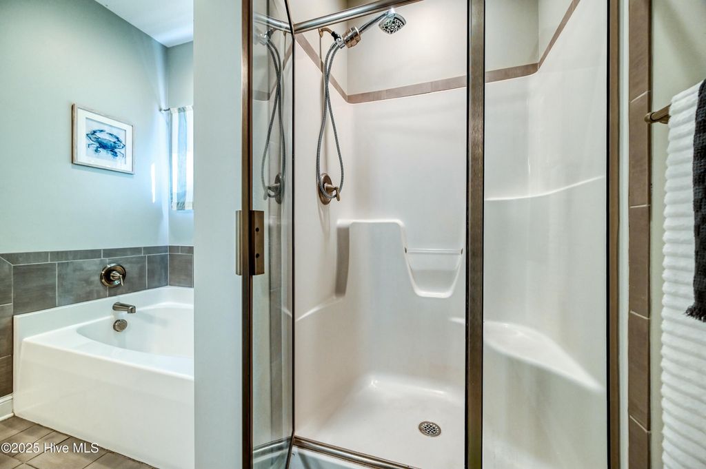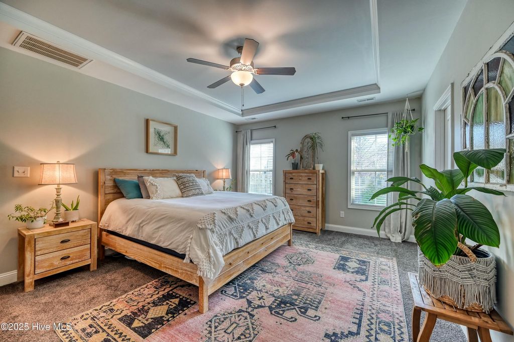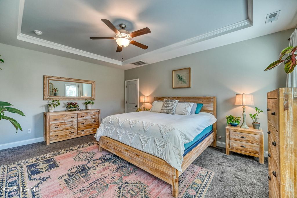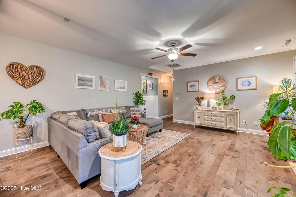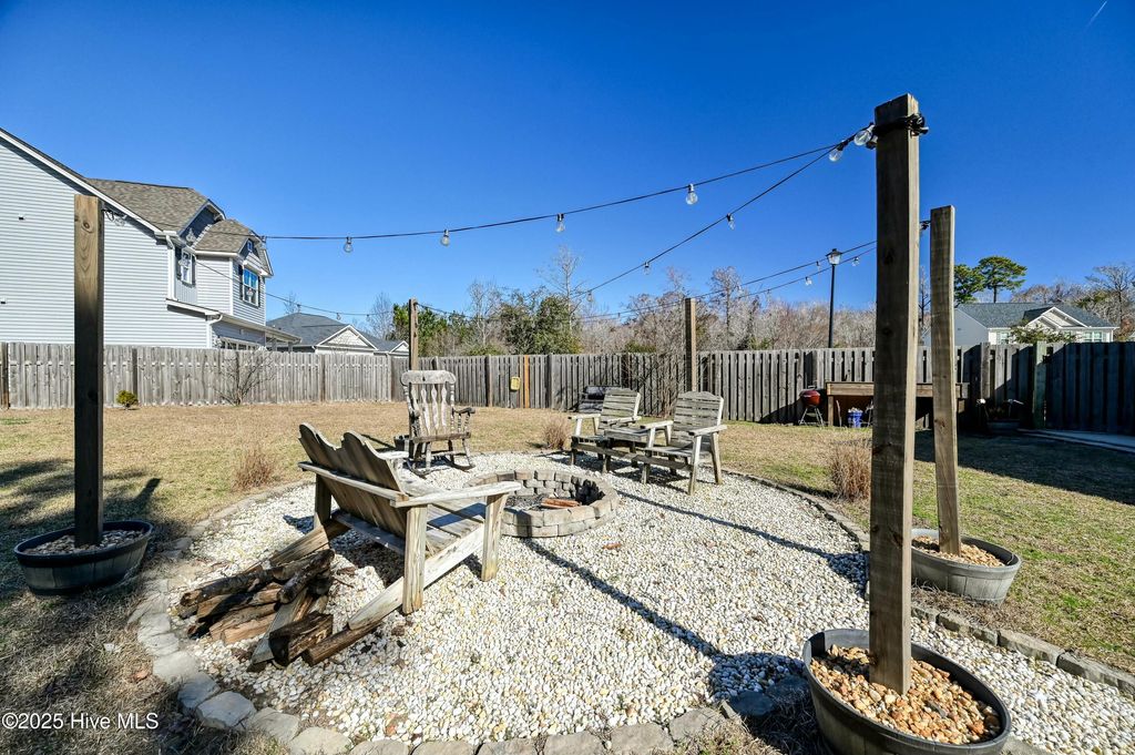 Embrace Coastal Living in this Spacious Family Home! Just minutes from sun-kissed beaches, imagine biking to the local parks, savoring local cuisine, and enjoying vibrant entertainment. This stunning 5-bedroom, 3-bath home offers an open-concept design, perfect for modern living. It features a downstairs master bedroom with additional downstairs bedrooms. Upstairs you will find two more bedrooms with an additional multi-use flex space as well. Whip up culinary masterpieces in the kitchen, featuring sleek granite countertops, SS appliances, and a large island. Situated on a sprawling half-acre lot in a quiet cul-de-sac with a private backyard oasis backing onto serene woods within the award-winning Topsail school district. Enjoy the added benefits of a handy shed, cozy back porch, fire pit, and two yearly seasonal parking passes for Surf City Island. One of the largest lots in the subdivision, This is more than a house; it's a lifestyle!