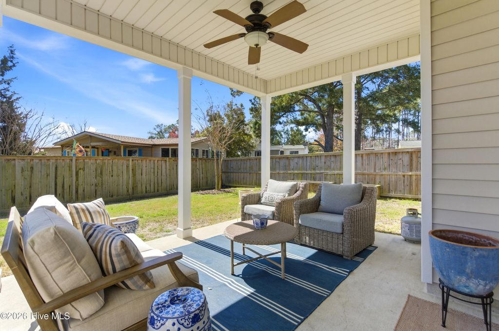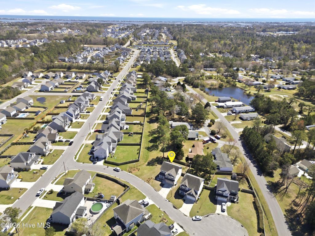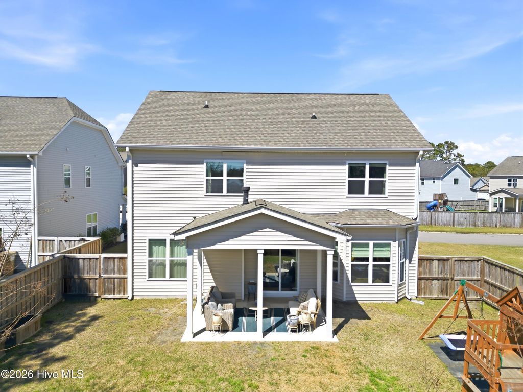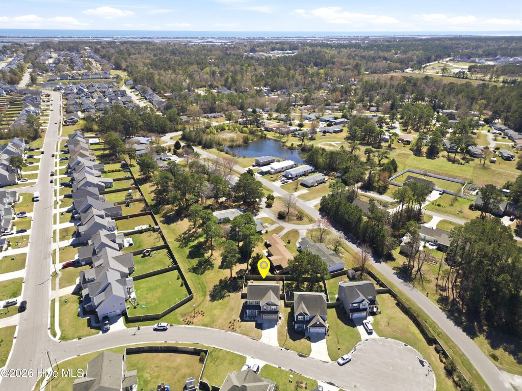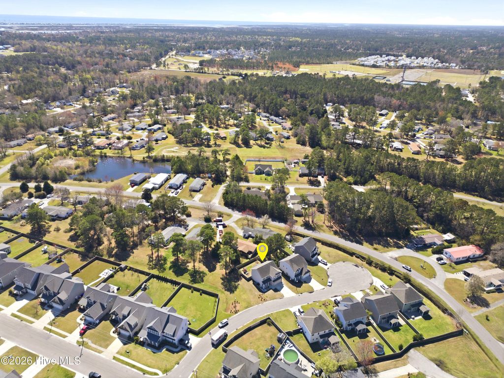 Welcome to 47 Peoples Court in the sought-after Wyndwater community of Hampstead. Built in 2018 and tucked on a cul-de-sac, this 3 bedroom, 2.5 bath home offers 2,147 square feet of comfortable living with the layout today's buyers want, open, functional, and full of natural light. The main level features a spacious living area with a gas log fireplace, a formal dining room for gatherings, and a breakfast nook that flows into the kitchen with granite countertops and plenty of workspace. Upstairs you'll find the primary suite with a trey ceiling, a large walk-in closet, and an en-suite bath with a garden tub and separate shower. Two additional bedrooms, a bonus room, and convenient laundry complete the second floor. Outside, enjoy a fenced backyard plus covered front and rear porches, ideal for morning coffee or relaxing at the end of the day. An attached 2 car garage adds everyday convenience. An added bonus, the HOA maintains the area to the left of the home, providing extra breathing room and a well-kept feel. Wyndwater is known for its neighborhood pool, sidewalks, and a welcoming community vibe, all just minutes from Hampstead's shopping, dining, and everyday essentials, plus an easy drive to Wilmington and area beaches. This is a great opportunity to enjoy a well maintained home in one of Hampstead's most popular neighborhoods.