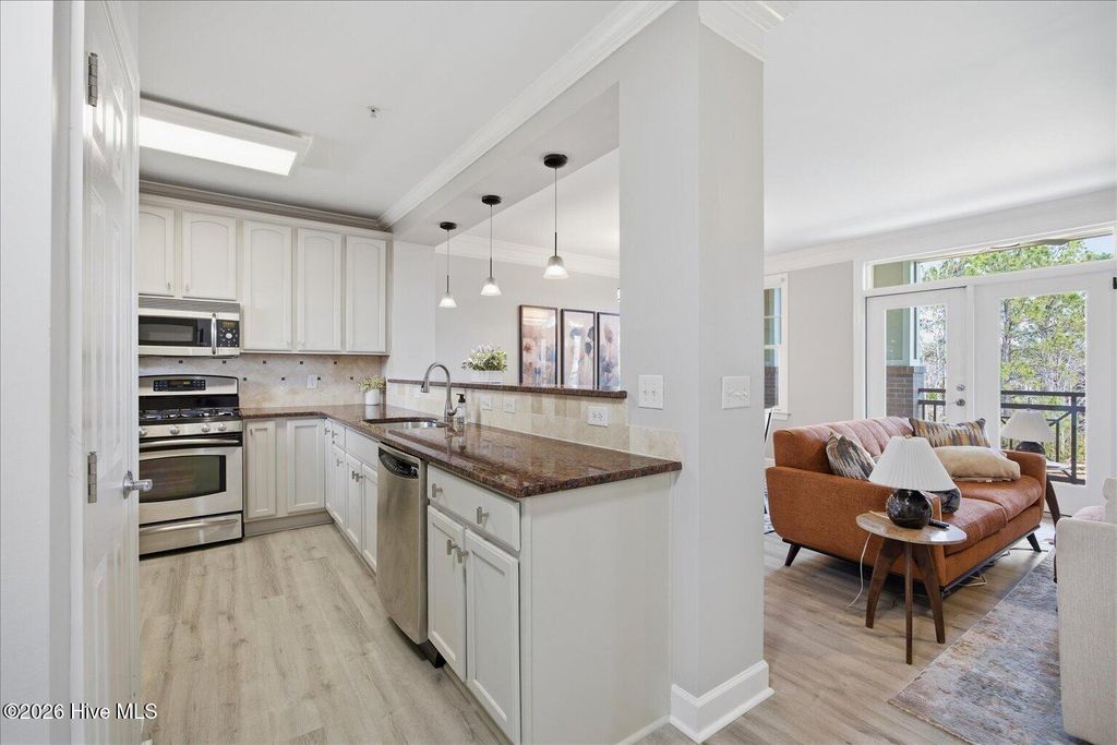 RARE and sought after waterfront unit with grand balcony and water views at Mayfaire. Home is surrounded by nature while within walking distance to Mayfaire with its 90+ shops and restaurants. The full garage is the cherry on top along with amenities of pool, tennis, etc. Just minutes from Wrightsville Beach and the Cross City Trail. The Village at Mayfaire is the most sought after condo in Wilmington with its unique location so close to Wrightsville Beach. Exceptional interior design and color selections and very well maintained and an excellent long term investment with its location and convenience which avoids the traffic of Wilmington. Turnkey for you!