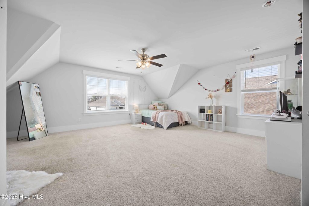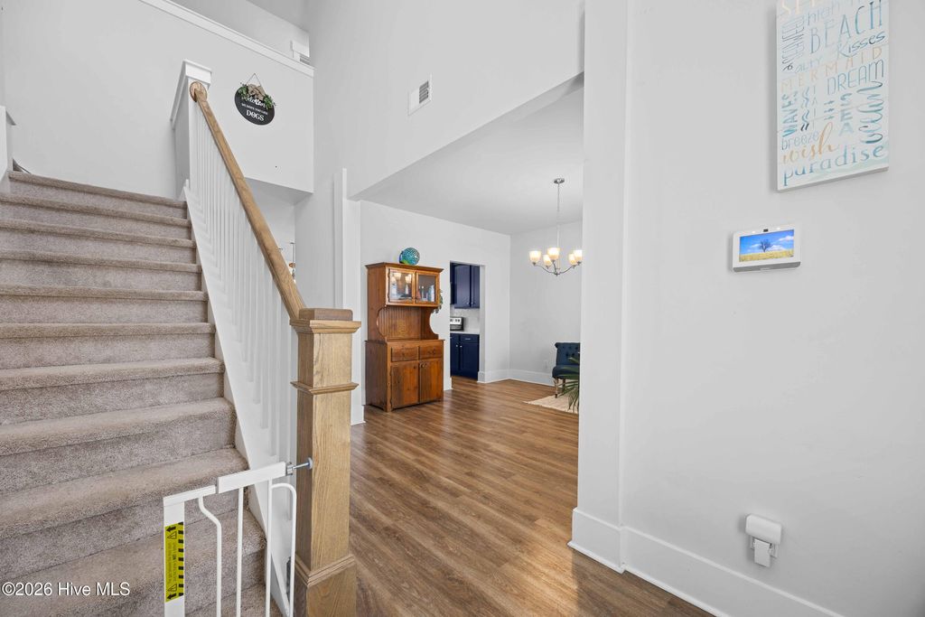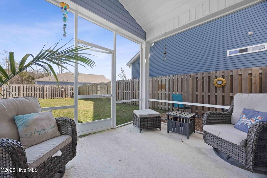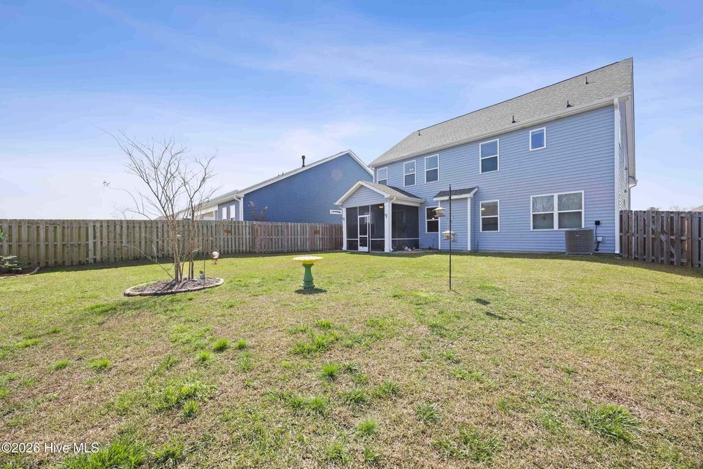 Welcome to Waterside, one of Surf City's most desirable coastal communities! Ideally located within walking distance or a short golf cart ride to Surf City beaches, local restaurants, shopping, and all that Topsail Island has to offer. Situated in the highly sought-after Topsail school district, this home offers the perfect blend of convenience, lifestyle, and location. The Forrester floor plan, offers an open-concept layout designed for both everyday living and effortless entertaining. The gourmet kitchen is the heart of the home, complete with a large granite island, 36'' staggered cabinetry with crown molding, tile backsplash, pantry, and stainless steel appliances. The kitchen flows seamlessly into the main living area, creating an inviting space filled with natural light. Luxury Vinyl Plank flooring runs throughout the main living areas, offering both style and durability. A separate formal dining room provides the perfect setting for gatherings, while a main-level bedroom and full bathroom offer flexibility for guests or multi-generational living. Upstairs, you will find four additional bedrooms, including an oversized bonus-style room and a spacious primary suite. The owner's suite features a vaulted ceiling, dual vanity, garden tub, and a separate walk-in shower, creating a comfortable and private retreat. Step outside to enjoy the screened-in porch overlooking a beautifully manicured, fenced backyard--ideal for relaxing or entertaining outdoors. Whether you are searching for a primary residence, second home, or investment opportunity, this property offers exceptional value in a prime coastal location.