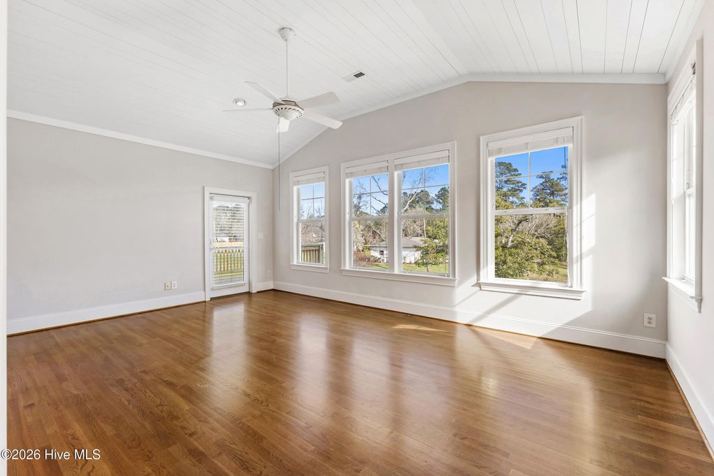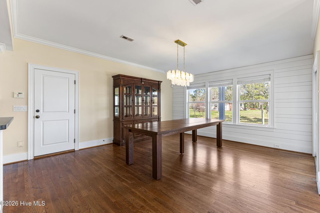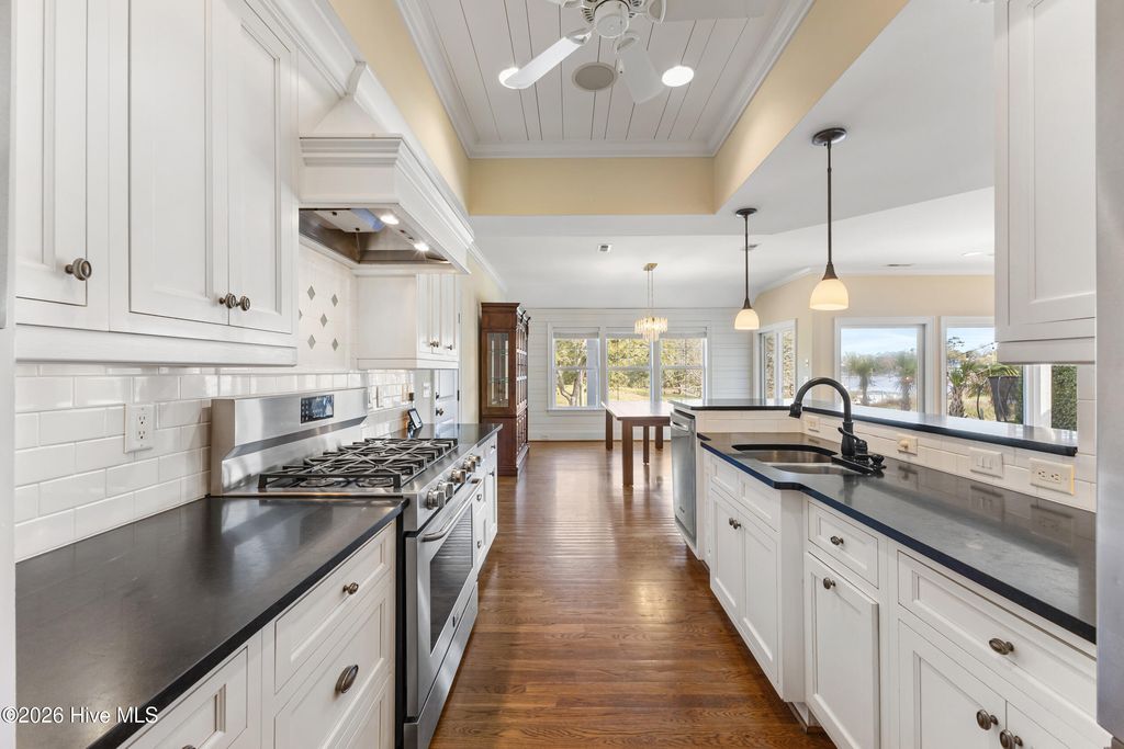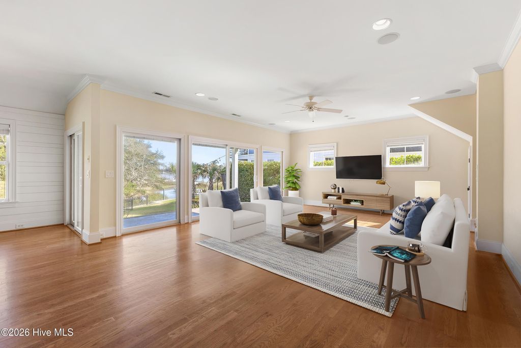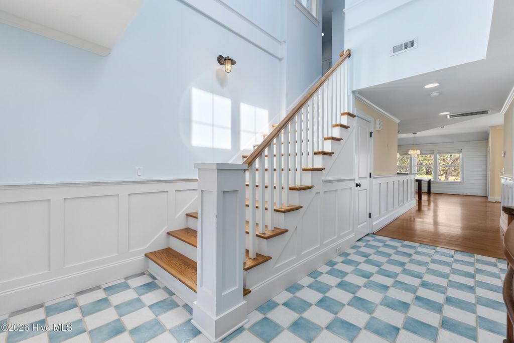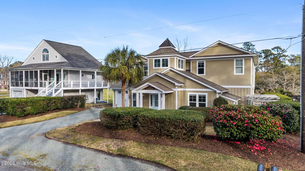 This custom-built two-story home with Futch Creek views, built by Tony Ivey, captures the feel of a timeless coastal cottage, with tidal creek access to the Intracoastal Waterway for boating, kayaking, and paddle boarding right from your backyard. Step inside to a charming blue and white tile foyer, where an impressive 18-foot shiplap ceiling creates a light, airy welcome and sets the tone for the home's relaxed coastal style. Designed to take full advantage of its setting, nearly every room offers peaceful water views. The private second-story deck off the primary suite (with new boards and railing) is the perfect place to start your morning or unwind at the end of the day. The primary suite comes complete with a fabulous walk in closet and spacious bath. The floor plan is both functional and flexible, with front and rear staircases, a main-level bedroom or office option, and two additional bedrooms plus an office upstairs, including the primary suite, which is privately accessed via the secondary staircase. Solid wood flooring runs throughout, complemented by high quality finishes. The kitchen blends style and function with Hollingsworth inset cabinetry, granite countertops, a large walk-in pantry, and a 40'' gas range. A wall of sliding glass doors opens the living room to a covered porch, creating effortless indoor-outdoor living and multiple spaces to take in the water. A two-car garage is complemented by a spacious attached workshop, offering plenty of room for storage, hobbies, or a functional workspace. Outside, a garden shed and a beautiful arbor lead you down to the creek, where a new seawall and floating dock enhance both usability and peace of mind. The setting feels private and tucked away, with no HOA, while still being conveniently located. Enjoy the benefits of a Wilmington address within the coveted Topsail school district. HL Smith Road is located just off Scotts Hill Loop, only a short distance to the everyday conveniences of Porters Neck.
