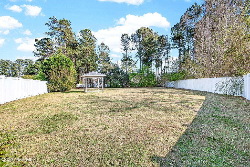 Nestled in the highly sought-after Creekside neighborhood of Burgaw, this charming home was built by the original builder and thoughtfully upgraded with Hardie Board siding, cedar shakes and board and batten accents for timeless curb appeal along with an irrigation system. Designed for comfort and convenience, this single-level floor plan offers 3 bedrooms, 2 bathrooms, and a dedicated office or study, all freshly painted to create a bright, welcoming atmosphere. The exterior and driveway have also been freshly pressure washed, giving the entire property a crisp, move-in-ready feel. Step outside to enjoy the spacious 0.66-acre lot, originally three separate parcels, providing ample room to relax or garden. A charming gazebo offers the perfect spot to read, unwind, or entertain surrounded by nature. You'll love the walkable location -- sidewalks lead straight into downtown Burgaw, where you can explore local shops, dining, and community events (Blueberry Festival!!). Additional features include a new refrigerator, washer and dryer, and new smoke/CO₂ detectors, making this home turn-key and ready for its next owner.