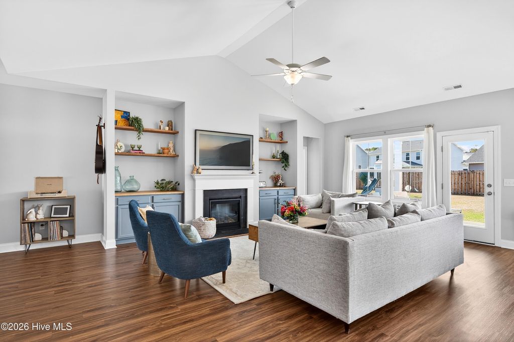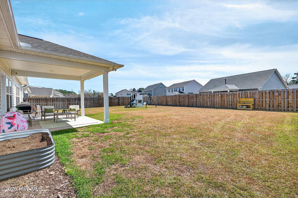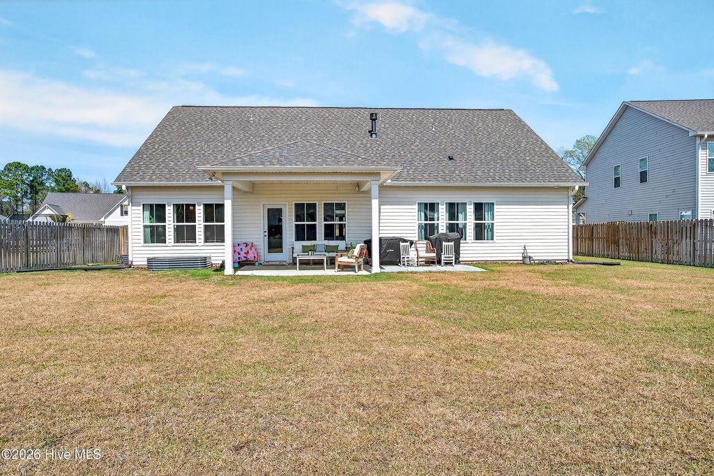 Welcome to 42 E Maritt Street in the desirable Hampstead area--where coastal charm meets thoughtful design. This spacious 4-bedroom, 3-bath Carolina-style home offers an open-concept layout with a light, airy feel and stylish finishes throughout. The main living area features vaulted ceilings, a cozy fireplace, and custom built-ins accented by modern floating shelves--creating the perfect blend of comfort and character. The kitchen is a true focal point, complete with a large island, beautiful vertical subway tile backsplash with subtle texture, and seamless flow into the living and dining spaces--ideal for entertaining. Designed with a split floorplan, the private primary suite is tucked away at the back of the home and offers a peaceful retreat with a spacious walk-in shower and an oversized walk-in closet. Two secondary bedrooms on the main level feature charming chair rail detailing, while upstairs, a fourth bedroom with a full en-suite bath provides the perfect flex space for guests, a home office, or bonus room. Additional potential awaits with the unfinished walk-in attic--ready to be transformed into additional heated living space if desired. Step outside to enjoy a fully fenced backyard, complete with a covered porch and extended grilling patio with pavers and gravel--perfect for relaxing or hosting. The playset can convey or be removed based on buyer preference. Located in a welcoming community that offers a pool, clubhouse, and neighborhood playground, this home provides the perfect blend of lifestyle and convenience in a sought-after coastal location.