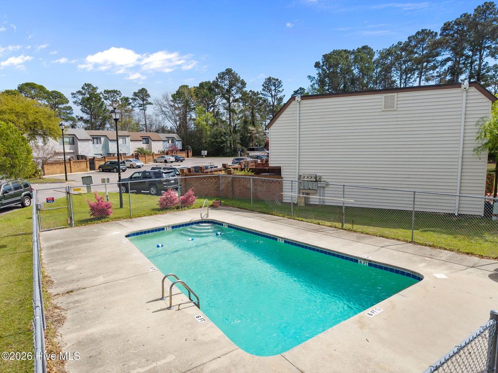Opportunity meets location in this 2-story end unit condo in the heart of Wilmington, with a new HVAC and new appliances! Offering great bones and tons of potential, this home is ready for your personal touch to truly shine. Enjoy added privacy with a gated, fenced courtyard and private entrance, plus the convenience of assigned parking right out front. Community amenities include a pool and tennis court, perfect for relaxing or staying active. Inside, the main level features a welcoming foyer, a dining area that flows into the kitchen with bar seating, and a spacious living room with sliding glass doors leading to a covered patio and backyard--ideal for indoor-outdoor living. A half bath downstairs adds convenience for guests. Upstairs, you'll find two bedrooms and a full shared bath, along with a conveniently located laundry area. One bedroom boasts its own private deck overlooking a peaceful wooded area--your own quiet retreat. Centrally located, you're just minutes from shopping and dining, and approximately 15 minutes to both Downtown Wilmington and Wrightsville Beach. Whether you're looking for an investment, a starter home, or a project to make your own, this property is full of potential in a prime location!
