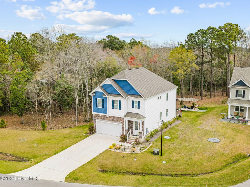 Tucked away at the end of a quiet cul-de-sac in one of the area's most sought-after neighborhoods, this spacious, lightly lived in two-story home offers a special blend of privacy, nature, and modern comfort. Set on an extra-large, wooded homesite, the property feels like a peaceful retreat where trees and abundant wildlife create a calming, natural backdrop. Inside, you'll find open, thoughtfully designed living space, including 4 bedrooms and 3 full baths, with one bedroom on the first floor. The open-concept main level is perfect for living and gathering, while the expansive upstairs loft provides flexible space for a second living area, office, or playroom. The spacious primary suite is complete with a large walk-in closet and an oversized shower. Beyond the home, the community encompasses a coastal lifestyle with a private dock, scenic trail, and a pool with a shaded sun deck--perfect for enjoying warm coastal days. If you've been searching for a home that offers space and serenity, without sacrificing neighborhood amenities, this one needs to be on your list to see!