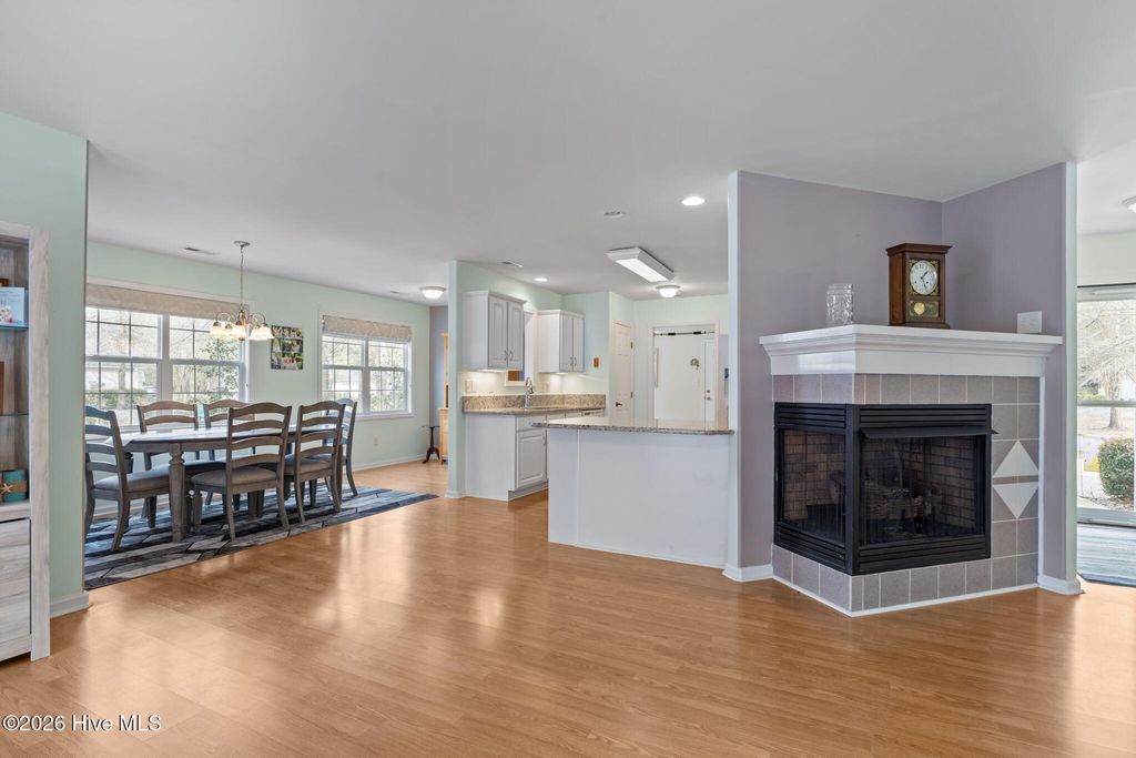 Welcome to easy coastal living in the highly sought-after community of The Villages at Swansboro. Perfectly positioned on an elevated corner homesite, this detached condo offers the ideal blend of comfort, convenience, and low-maintenance living tailored for a relaxed retirement lifestyle. This thoughtfully designed one-level home features 2 bedrooms, 2 baths, and a versatile flex room--perfect for a home office, hobby space, or guest overflow--along with an attached one-car garage for added ease and security. The split-bedroom floor plan ensures privacy, with bedrooms flowing seamlessly toward the heart of the home where you'll find a spacious and inviting living area complete with a cozy gas log fireplace, open dining area, and a well-appointed kitchen designed for both everyday living and entertaining. Enjoy abundant granite countertop space, a convenient kitchen bar, and not one, but two pantries--making it easy to prepare and host everything from casual meals to holiday gatherings. Take advantage of the community's charming atmosphere, where sidewalks line both sides of Village Drive, complete with benches for relaxing strolls and friendly conversations with neighbors. Ideally located, you're just minutes from shopping, dining, healthcare facilities, and all the charm and waterfront appeal of historic downtown Swansboro. Whether you're downsizing or simply looking to embrace a carefree coastal lifestyle, this home offers comfort, convenience, and community all in one.
