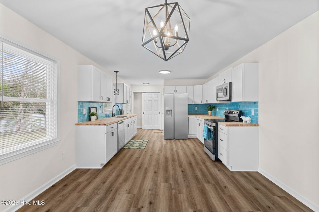 Welcome to your new home located at 408 Carole dr, in Jacksonville NC! This remodeled 3 bedroom, 2 bath, 4 car attached garage home has had a full remodel. The kitchen has brand new cabinets, butcher block countertops, and stainless steel appliances. The garage has brand new garage doors, and walls finished with all the peg board. The bathrooms are all brand new. LVP flooring in the living space, and new carpet in the bedrooms. All the interior doors are new, new duct work for the hvac, all new interior doors, and the crawl space has had all the floor joists replaced/repaired. All the work has been permitted and inspected !!