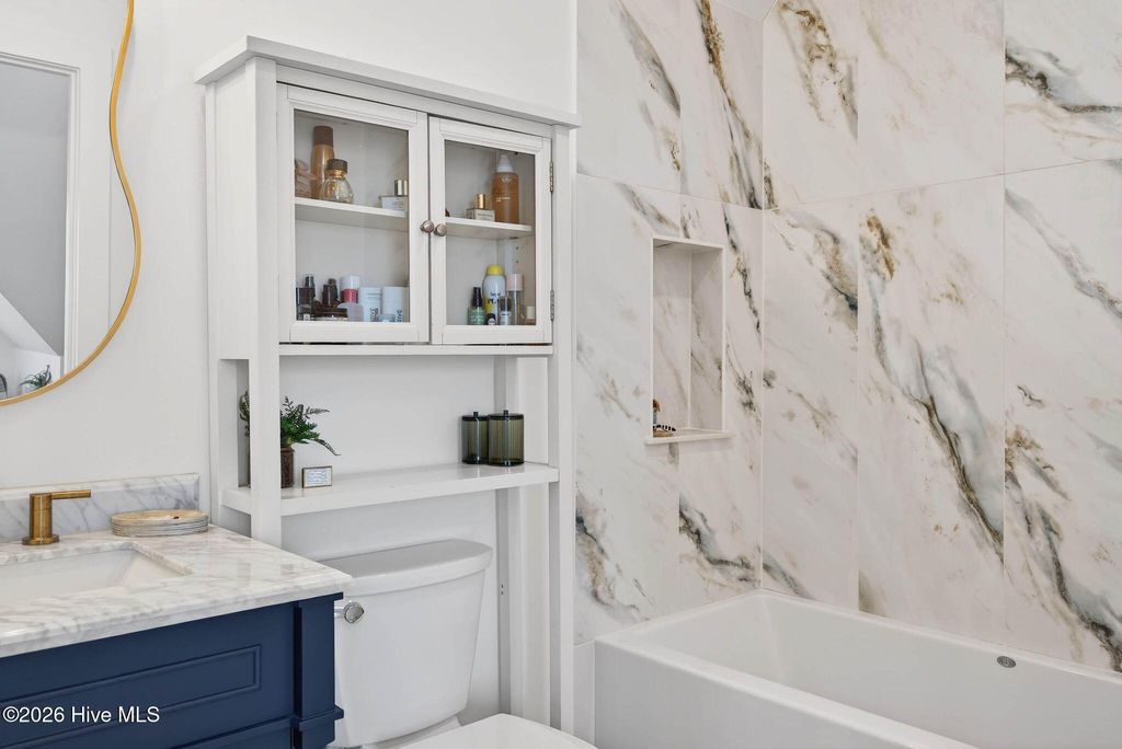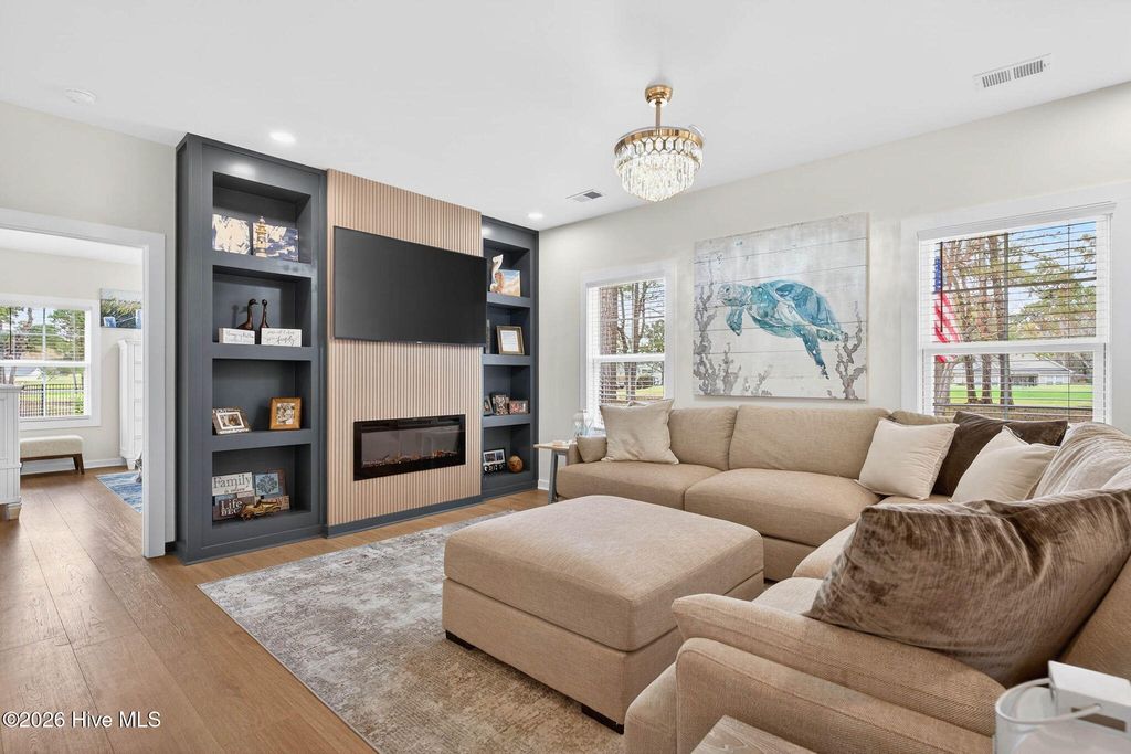 Check off all your Boxes with this New Craftsman Winner and its breathtaking Pond & Golf Course Views in a Gated Community! Architecturally designed for you to live a great life offering upgraded weatherproof grained flooring throughout, 9' ceilings, a stunning white kitchen, a master ensuite you'll love, a little modern Bling in the light fixtures & fans, a full guest suite or man cave upstairs, a deep oversized garage and an outdoor living space that will lure you outside for 8 months of the year. Enjoy Coastal Living in a home that was just completed in Sept 2025 which equals 'No Stress' & 'No Repairs for Years'. Quality begins with its solid 8' mahogany entrance door, bringing you into an abundance of light and spaciousness. The Living Area is anchored by an accent wall boasting a horizontal fireplace with built-ins. Its open Kitchen is a chef's delight with soft close cabinetry graced by quartz counters, an induction cooktop range vented by a stainless hood, a Samsung appliance package & an exquisite bi-fold pantry door. Sleep deeply in the 16' x 14' Master Bedroom and enjoy its Bath featuring a tasteful accent wall, a double vanity with undermount rectangular sinks and a neutral counter, brushed brass fixtures & decor and a 5 ft deep tiled shower with glass door. A guest room with a jack 'n jill bath sits on the other side of the house, along with an elongated laundry room with cabinetry storage. Upstairs is a major attraction to the home's features! Throw the kids or grandkids up there & you won't hear them. Or create the Man Cave or Craft Room you've always wanted! Stunning angles, full bathroom and a secondary space for a gym, hobbies or storage. Now let's talk about Carolina living: a 52' expansive concrete patio beckons you to sit and savor the serenity of the pond's shimmering water. Watch the coastal birds that visit daily, enjoy watching the golfers tee-off with no neighbors on top of you, just a blissful quiet, or entertain family & friends in a backyard that you'll be proud of. Already fenced for your dog. The garage is sure to please as its 25' depth allows for the parking of your vintage car. Top notch curb appeal with its dramatic navy siding and the golf course front & back in the favorable X zone, not requiring flood insurance. Gated & manned golf community with an old oak & pine canopy, located on the Intracoastal Waterway, where you'll always have a breeze. Outstanding swimming pool less than a block away, tennis/pickleball and multiple social clubs. 10 minutes west to a pristine island Beach, shopping, groceries, banks, medical and more. This (1) of a Kind Custom Beauty in a great neighborhood is perfectly located midway between Myrtle Beach & Wilmington!