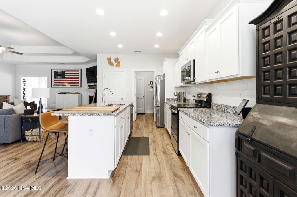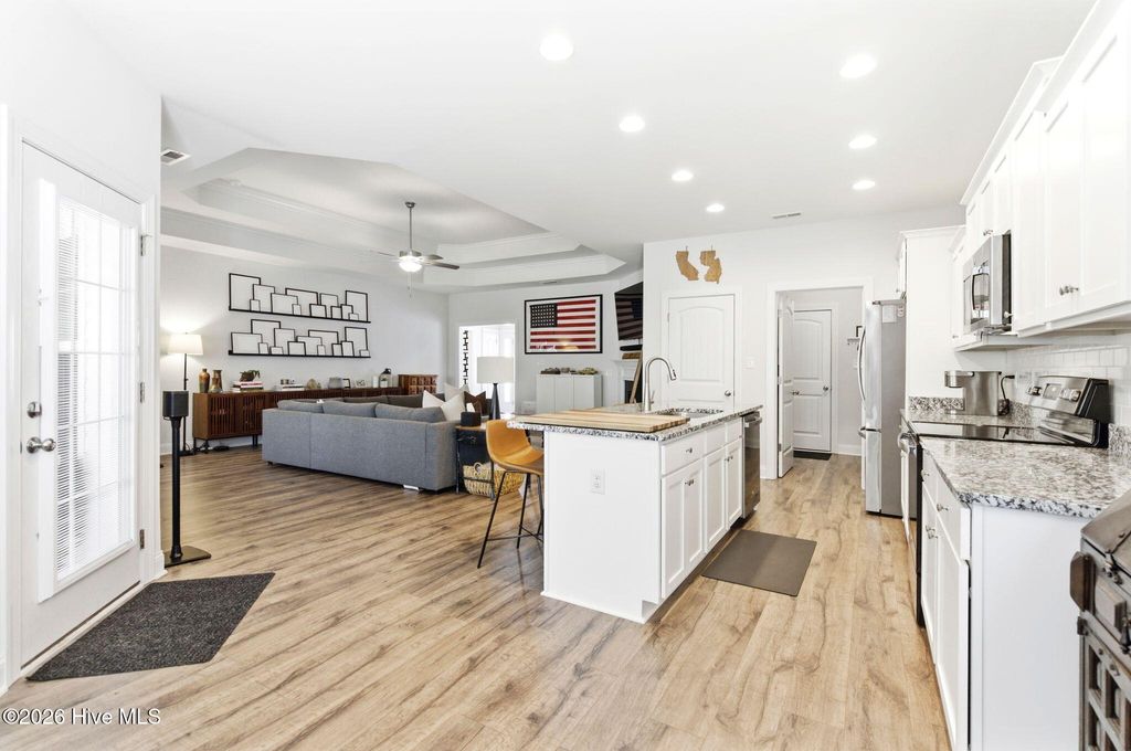 Welcome to 234 Lookout Lane! This beautifully maintained 3-bedroom, 2-bath single-story home is tucked away on a quiet cul-de-sac. Step onto the welcoming covered porch and into a thoughtfully designed interior featuring open concept living on one side and all the bedrooms privately situated on the other. The living area is ideal for both everyday living and entertaining, highlighted by a tray ceiling and cozy corner fireplace that flows seamlessly into the kitchen and dining space. Enjoy effortless indoor-outdoor living with direct access from both the dining area and primary suite to the covered back porch, overlooking a fully fenced backyard--ideal for relaxing evenings or weekend entertaining. The primary suite is tucked away at the rear of the home for added privacy and features a tray ceiling, spacious walk-in closet, and an ensuite complete with dual vanities, a soaking tub, and a separate shower. Two additional bedrooms are located just off the foyer, offering comfort and flexibility for family, guests, or a home office. Additional highlights include a functional laundry/mudroom just off the garage with extra storage, and a garage equipped with a 240V outlet for electric or hybrid vehicles, plus a dedicated outlet for fitness equipment. Conveniently located just minutes from the back gate of Camp Lejeune and Stone Bay, and less than 20 minutes to the beaches of Topsail Island. Enjoy easy access to shopping, dining, and entertainment in Jacksonville and Surf City, with Wilmington about an hour away. This move-in ready home offers the lifestyle you have been looking for--schedule your private showing today!. For information about our preferred lender and the incentives you may qualify for, please ask your agent to review the agent comments for additional details.