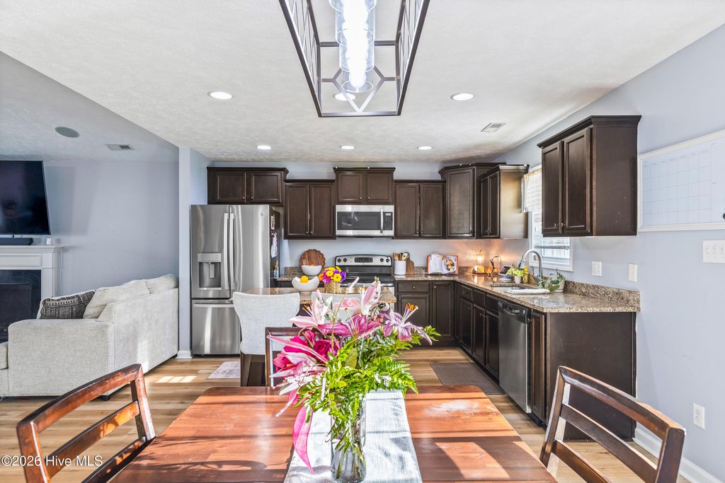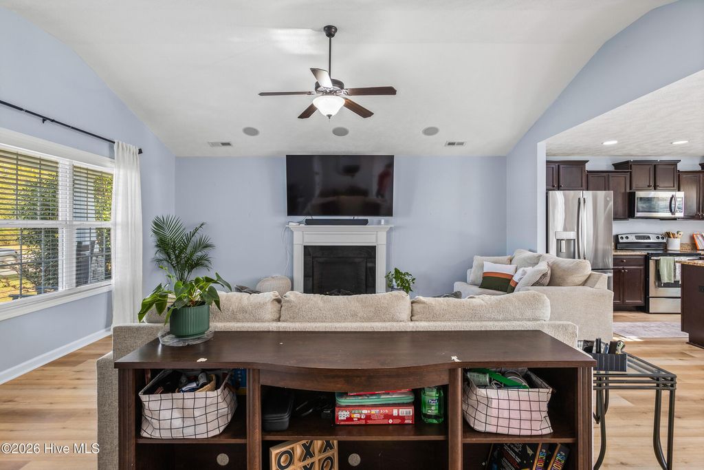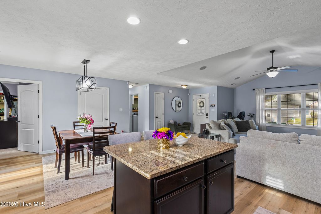 Welcome to 217 Merin Height Rd, an immaculately maintained home in Carolina Plantations that began as the neighborhood's model home! Step inside to a well thought out open concept living space with vaulted ceilings. The kitchen dons a functional island topped with granite countertops and overlooks the private fenced in backyard (no neighbors behind you!). Off of the eat in dining area, you'll find the spacious master bedroom featuring a tray ceiling and lots of closet space, while down the hall you'll find 2 extra rooms, a full bathroom and a true laundry room with extra storage cabinets. As the neighborhood's original model home, you'll enjoy extra upgrades such as built in speakers in the living room, granite countertops in the kitchen and recessed lighting in the extra bedrooms! Other updates you'll enjoy are the new LVP flooring throughout the living area and hallway, front bedroom carpet replaced in 2025 and other bedroom carpets replaced in 2020. The moment you pull up to this house, you'll be ready to make it your home. Close to military bases, schools, and shopping with NO city taxes, it's the kind of home that just makes sense. Contact your Realtor to see it today!
