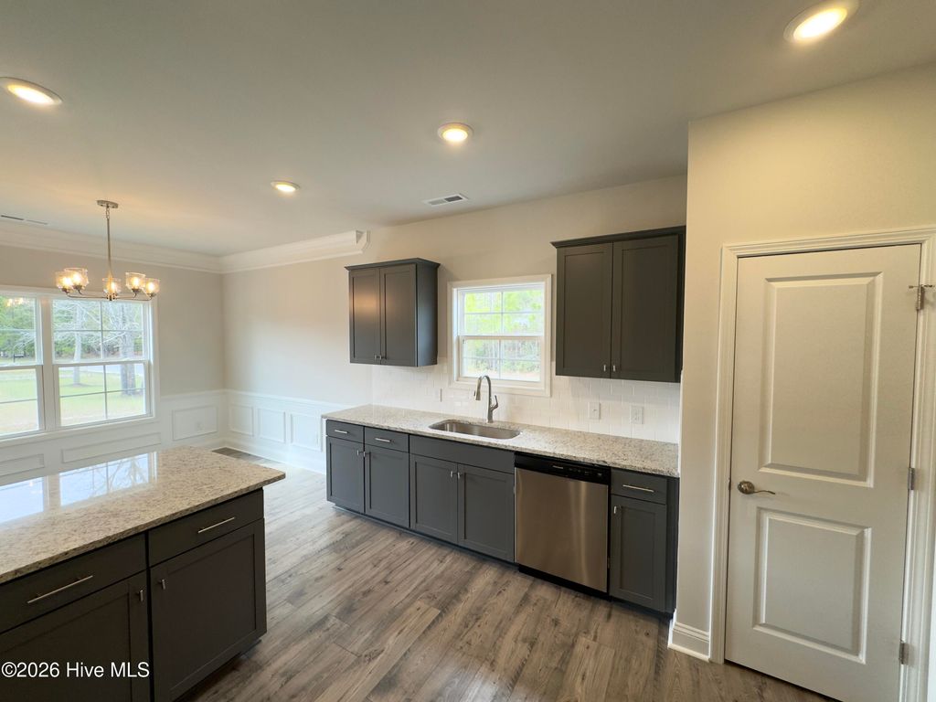 *MOVE IN READY* Welcome to Rutledge! This one-story new construction home features 3 bedrooms and 2 bathrooms. Located on a spacious corner lot across the street from one of our neighborhood ponds! Beautiful kitchen with soft close cabinetry. Living Room features an electric fireplace leading out to a covered back porch. Neighborhood amenities include a community pool, basketball court, pickleball ball courts, and a pond with walking path. Closing cost incentives available with use of preferred lender and attorney.