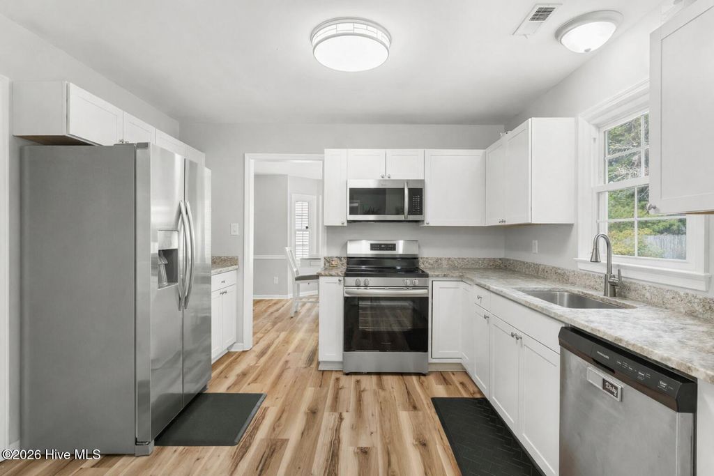 Welcome to 106 Horseshoe Bend in Jacksonville, NC -- a beautifully maintained home offering the perfect blend of comfort, space, and convenience. Nestled in a quiet setting, this property features a spacious layout with generous living areas, ideal for both everyday living and entertaining. NO HOA and NO CIty TAXES The home boasts a well-appointed kitchen with ample cabinet and counter space, flowing seamlessly into the dining and living areas. The bedrooms are comfortably sized, including a primary suite designed for relaxation. Step outside to enjoy a large yard with plenty of room to unwind, host gatherings, or create your own outdoor oasis. Whether you're a first-time buyer, investor, or looking to relocate near Camp Lejeune, this home checks all the boxes. Conveniently located just minutes from shopping, dining, schools, and military bases, this property offers both tranquility and accessibility. Schedule your showing today and see all that this home has to offer!