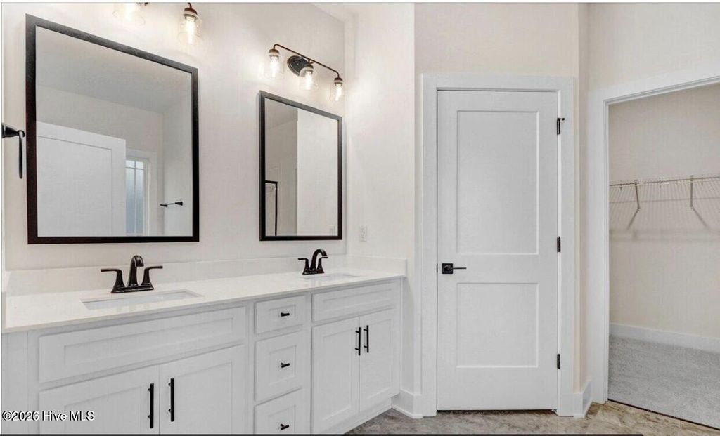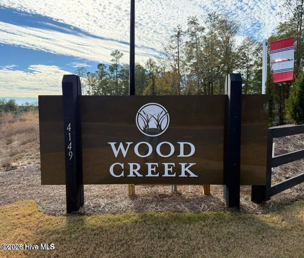 Welcome to Wood Creek Landing, Leland's newest community--where style, comfort, and value come together. Located just 15 minutes from downtown Wilmington! This beautifully crafted 3-bedroom, 2-bath new construction home offers 1,826 sqft of thoughtfully designed living space with a bright, open-concept layout. Enjoy scratch- and water-resistant laminate wood flooring throughout the main living areas, plush carpeting in the bedrooms, and durable vinyl flooring in the bathrooms and laundry room. Interior details shine with an electric fireplace, coffered dining room ceiling, wainscoting, crown molding, craftsman-style trim, and modern black fixtures and hardware throughout. The kitchen is a standout, featuring white cabinetry, white quartz countertops, a light gray ceramic tile backsplash, stainless steel appliances, and a spacious single-basin sink--perfect for both everyday living and entertaining. The owner's suite is a relaxing retreat with a tray ceiling, crown molding, a walk-in closet, and a large walk-in shower. Step outside to enjoy the back patio--ideal for quiet evenings or hosting guests. Conveniently located near Hwy 17 and I 140, this home offers quick access to Wilmington, shopping, parks, and beautiful area beaches. ESTIMATED COMPLETION JUNE 2026. Only a $1,000 builder deposit required. Photos are representative.