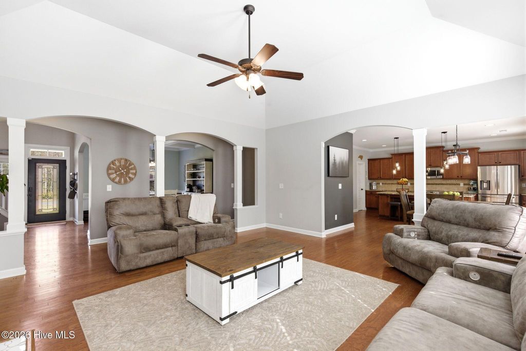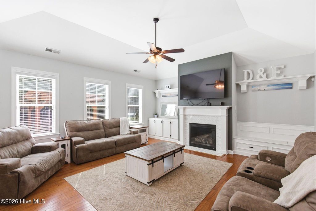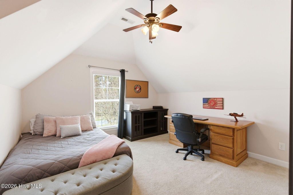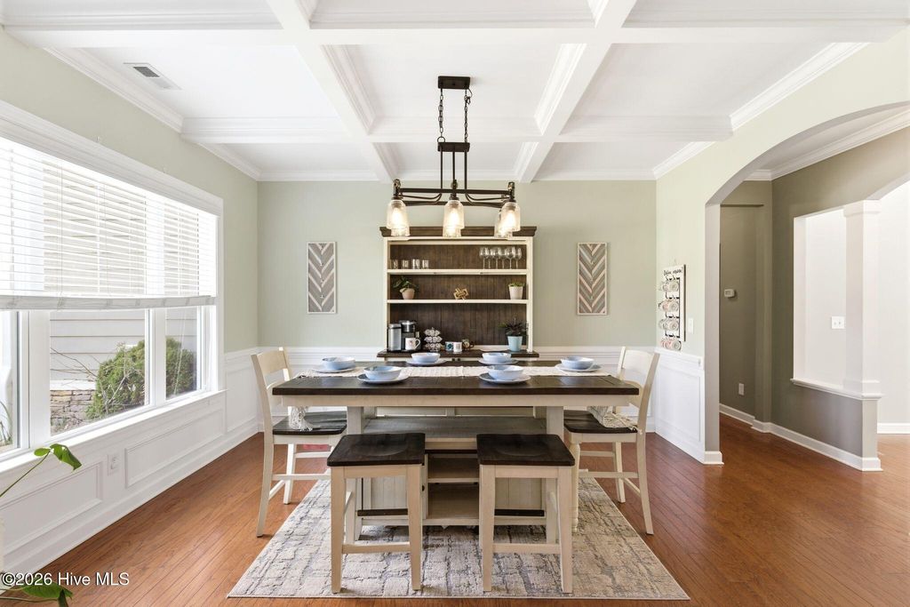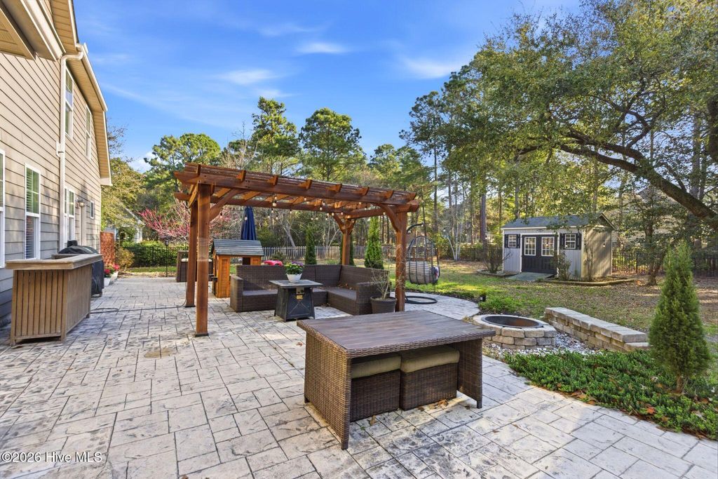 Welcome to 268 Mimosa Drive! This gorgeous, 4-bedroom, 3.5-bath home is in the highly desirable Mimosa Bay community. This well-maintained home is nestled on almost a half-acre lot, next door to the butterfly sanctuary and right down the street from the community boat launch. As you approach the covered front porch, you'll be greeted by beautiful stone accents and a tranquil koi pond that creates stunning curb appeal. Step inside to a grand two-story foyer, with a formal dining room featuring a coffered ceiling perfect for hosting gatherings. The living room offers a cozy gas fireplace surrounded by custom built-ins, creating a warm and inviting space. The dream kitchen is complete with a large island, stainless steel appliances, granite countertops, and a walk-in pantry, ideal for both everyday living and entertaining. The primary suite features an ensuite bathroom with dual vanities, a garden tub, separate shower, and a large walk-in closet. A beautiful expansive patio runs the length of the home and is easily accessed from the kitchen and primary suite. The main floor also features a half bath and laundry room. Upstairs, you'll find three additional bedrooms, two full bathrooms, and a versatile bonus room that offers endless possibilities. A large storage room at the end of the hall adds even more functionality. Enjoy outdoor living and entertaining in your fenced in back yard, complete with a 10X14 workshop/shed, raised planters for gardening and a pergola to unwind in the shade. Amenity rich Mimosa Bay features a community pool, tennis courts, club house, and boat ramp. Situated minutes to Stone Bay, the back gate of Camp LeJeune, the beautiful beaches of Topsail Island and a short drive to shopping and dining in Surf City, Jacksonville, and Wilmington. Don't miss this beautiful home, schedule your private showing today! For information about our preferred lender and the incentives you may qualify for, please ask your agent to review the agent comments for additional details.
