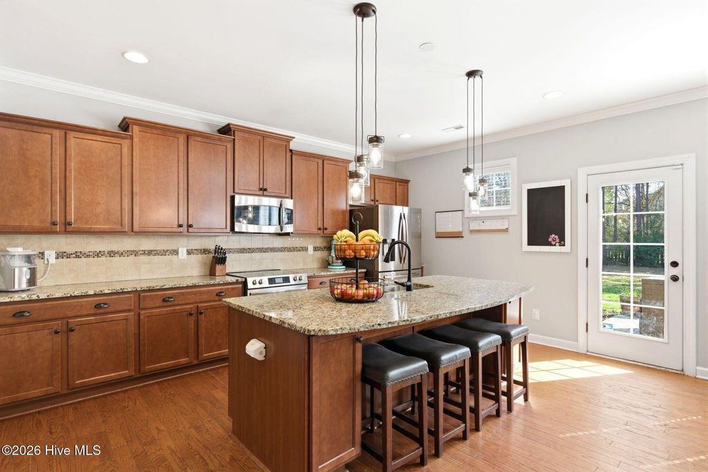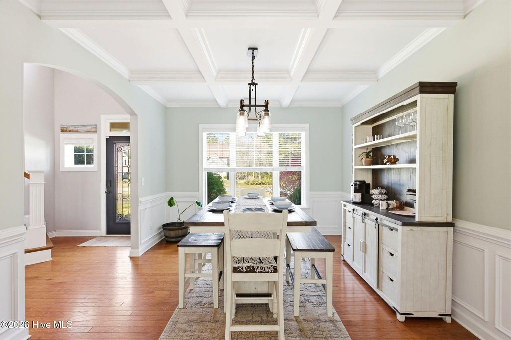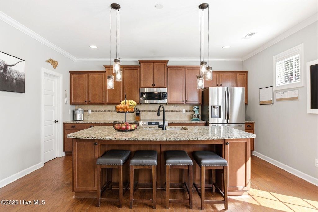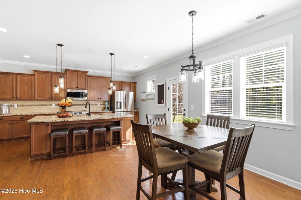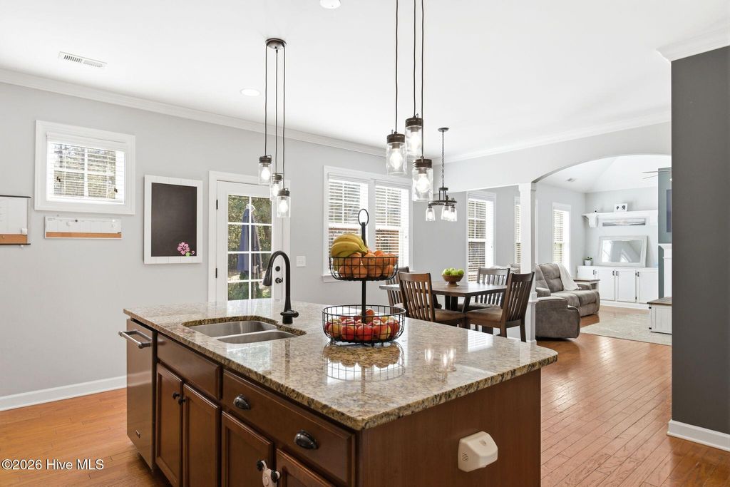 Welcome to 268 Mimosa Drive! This gorgeous, 4-bedroom, 3.5-bath home is in the highly desirable Mimosa Bay community. This well-maintained home is nestled on almost a half-acre lot, next door to the butterfly sanctuary and right down the street from the community boat launch. As you approach the covered front porch, you'll be greeted by beautiful stone accents and a tranquil koi pond that creates stunning curb appeal. Step inside to a grand two-story foyer, with a formal dining room featuring a coffered ceiling perfect for hosting gatherings. The living room offers a cozy gas fireplace surrounded by custom built-ins, creating a warm and inviting space. The dream kitchen is complete with a large island, stainless steel appliances, granite countertops, and a walk-in pantry, ideal for both everyday living and entertaining. The primary suite features an ensuite bathroom with dual vanities, a garden tub, separate shower, and a large walk-in closet. A beautiful expansive patio runs the length of the home and is easily accessed from the kitchen and primary suite. The main floor also features a half bath and laundry room. Upstairs, you'll find three additional bedrooms, two full bathrooms, and a versatile bonus room that offers endless possibilities. A large storage room at the end of the hall adds even more functionality. Enjoy outdoor living and entertaining in your fenced in back yard, complete with a 10X14 workshop/shed, raised planters for gardening and a pergola to unwind in the shade. Amenity rich Mimosa Bay features a community pool, tennis courts, club house, and boat ramp. Situated minutes to Stone Bay, the back gate of Camp LeJeune, the beautiful beaches of Topsail Island and a short drive to shopping and dining in Surf City, Jacksonville, and Wilmington. Don't miss this beautiful home, schedule your private showing today! For information about our preferred lender and the incentives you may qualify for, please ask your agent to review the agent comments for additional details.