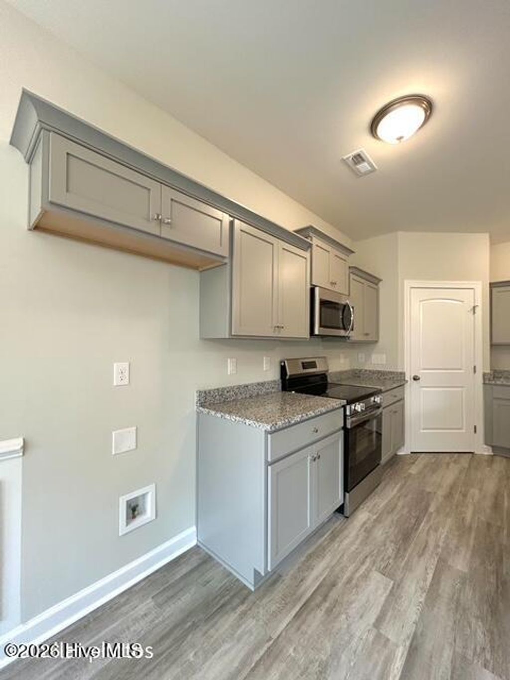 This single story three bedroom, two bath house is just what you have been searching for. In a highly sought out neighborhood with close proximity to the base, this beauty is perfect! The main area is open and breezy, with the primary suite on one end of the house and additional bedrooms located on the other side. You'll have peaceful tranquility! The primary has a large closet, huge bathroom, and over looks the back yard which also features a covered porch! **The builder reserves the right to modify, substitute, or discontinue any materials, products, finishes, or other selections at any time without prior notice to the buyer. Such changes may be necessary due to availability issues, supply chain disruptions, product discontinuations, or other unforeseen circumstances. While the builder will make reasonable efforts to maintain the originally selected items, substitutions may be made at the builder's discretion** Buyer to verify schools